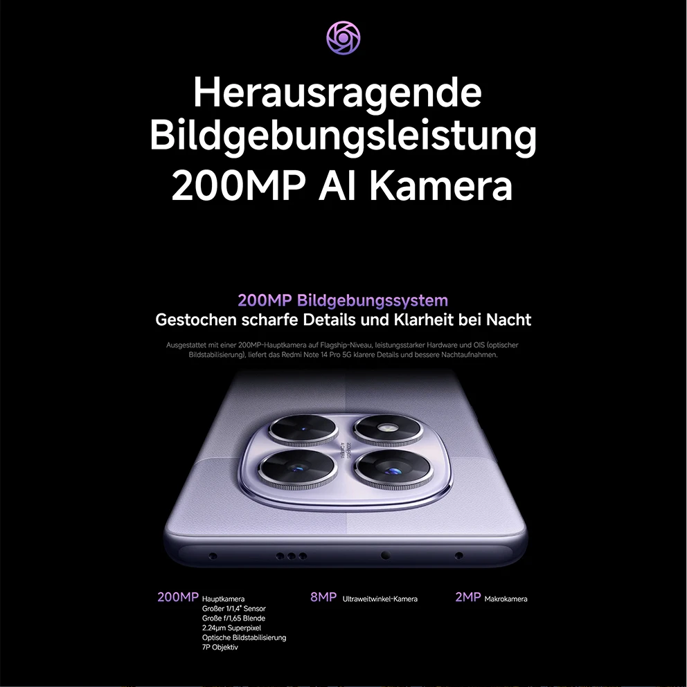 Global Version Redmi Note 14 Pro 5G MediaTek Dimensity 7300-Ultra NFC 200MP Camera 1.5K 120Hz AMOLED Display 5110mAh Battery