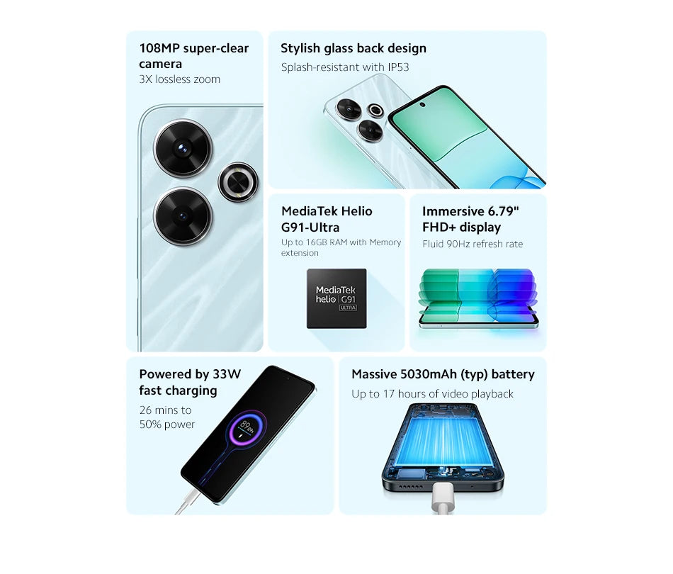 Global Version Xiaomi Redmi 13 Smartphone 108MP super clear camera MediaTek Helio G91 Ultra 33W fast charging 5030mAh battery