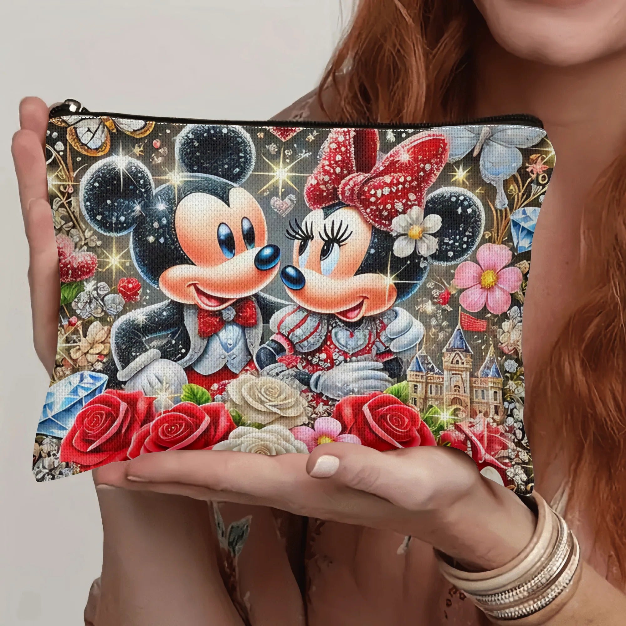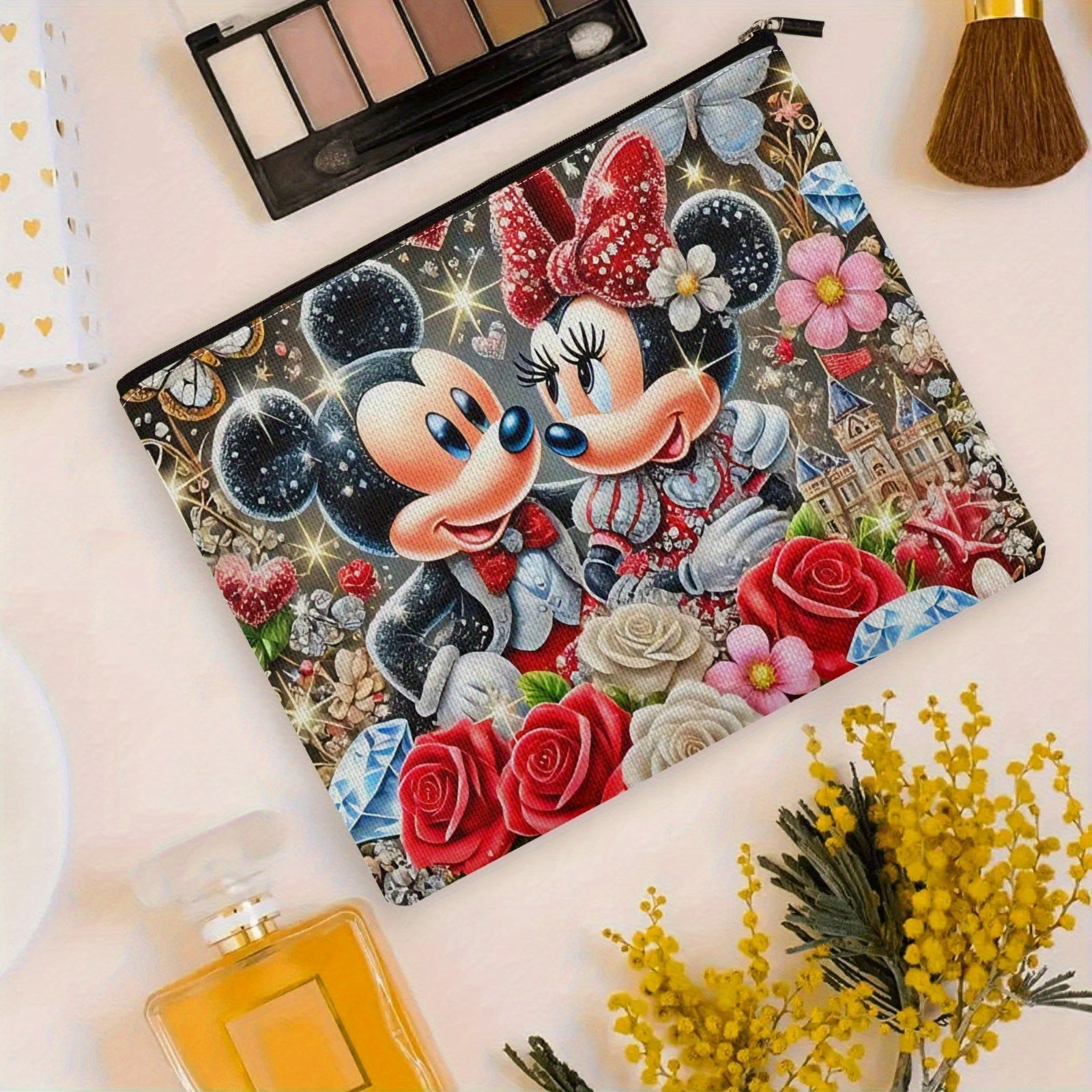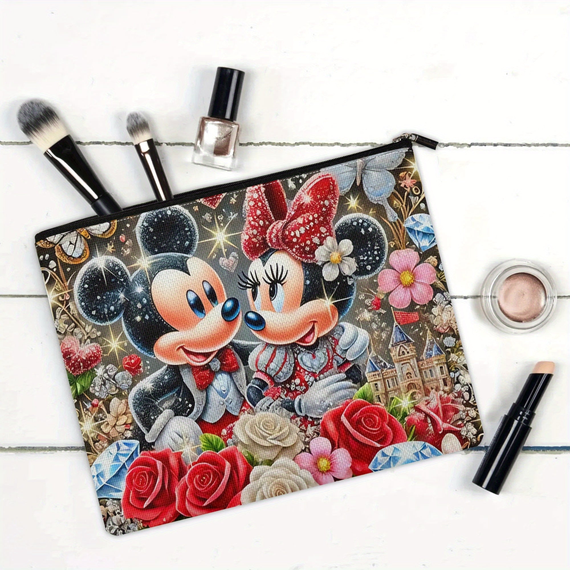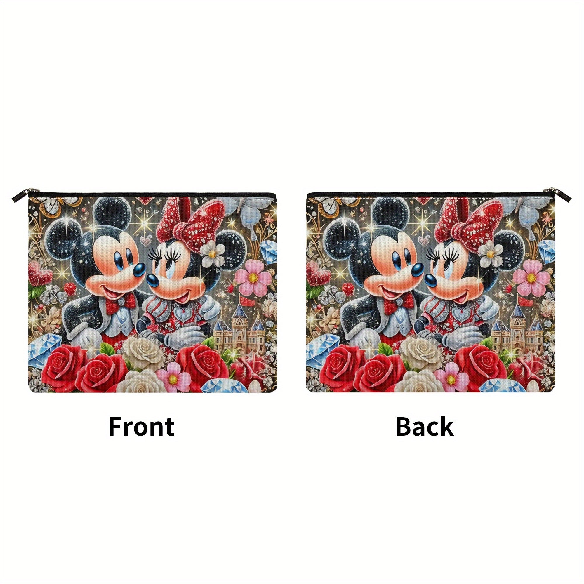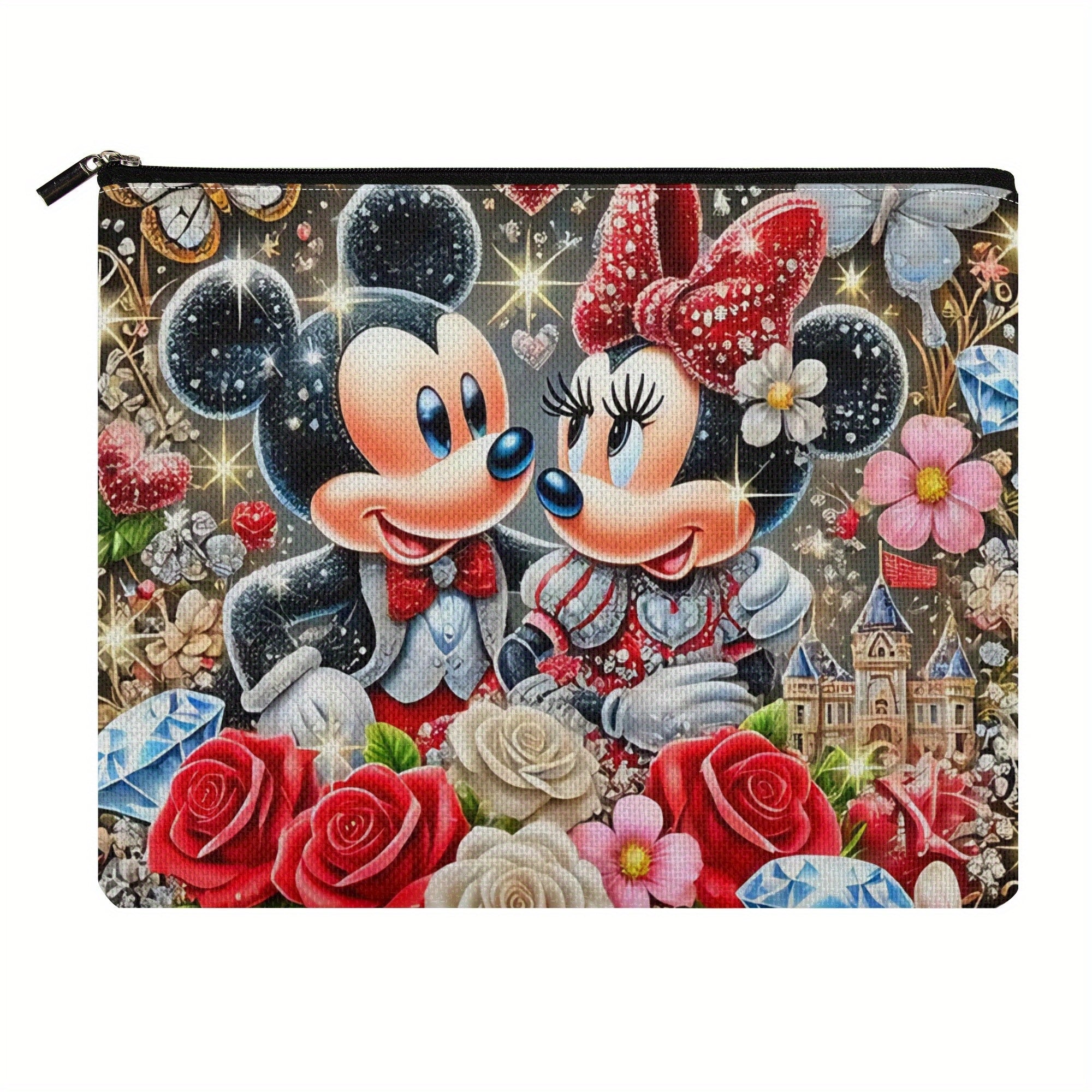 Grande capacità di borsa da trucco con personaggio dei cartoni animati - Carino Mickey e Minnie con cerniera sicura, borsa di stoccaggio multi-funzionale e duratura per viaggi e uso quotidiano, borsa da viaggio per cosmetici | Design giocoso | Illustrazio