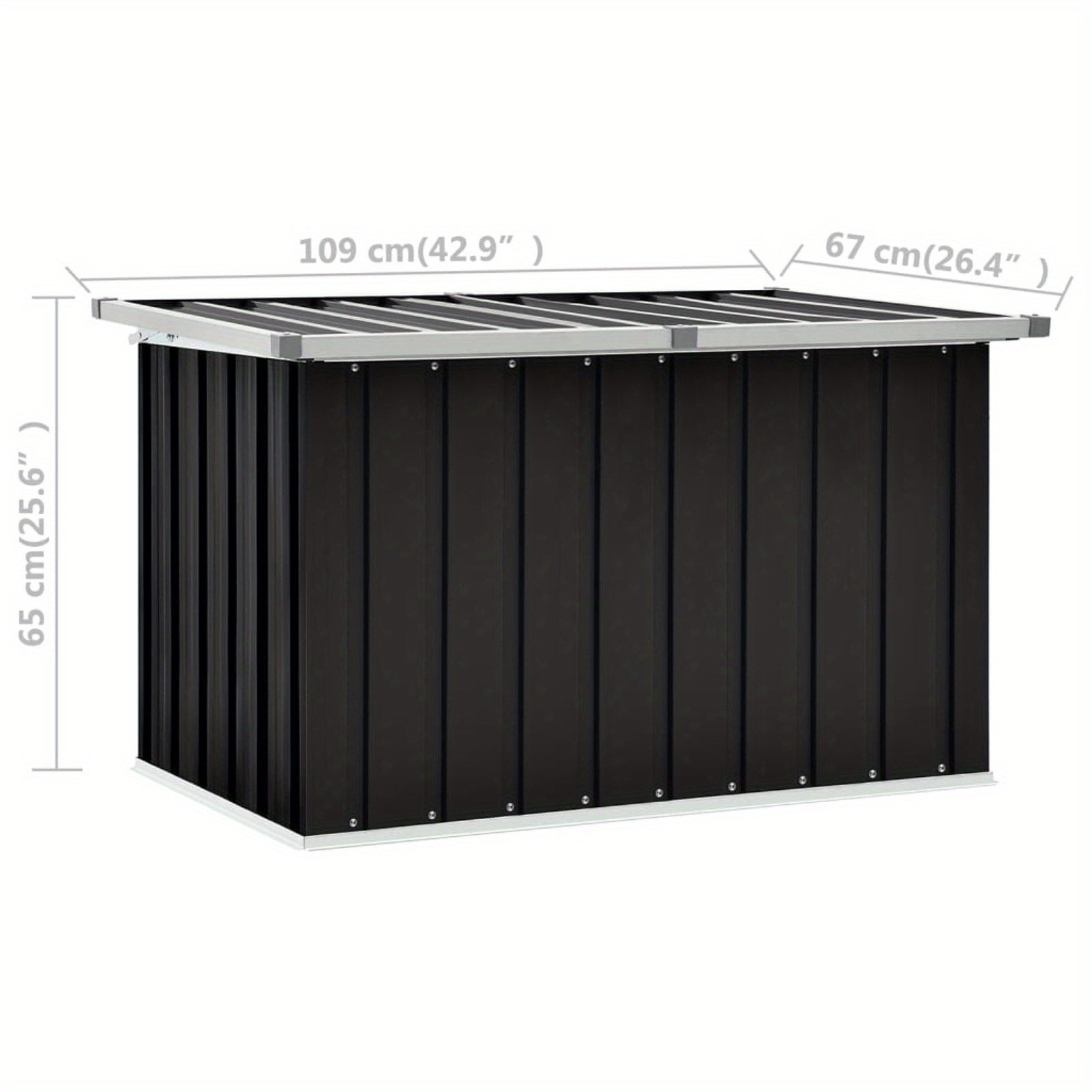 Grande Scatola di Stoccaggio da Giardino Antracite - 109.22cm x 66.04cm x 63.5cm Organizzatore Interno/Esterno per Attrezzi, Forniture Piscina, Cuscini da Patio, Cuscini e Coperte - Contenitore di Stoccaggio Multifunzione Resistente con Telaio in Metallo