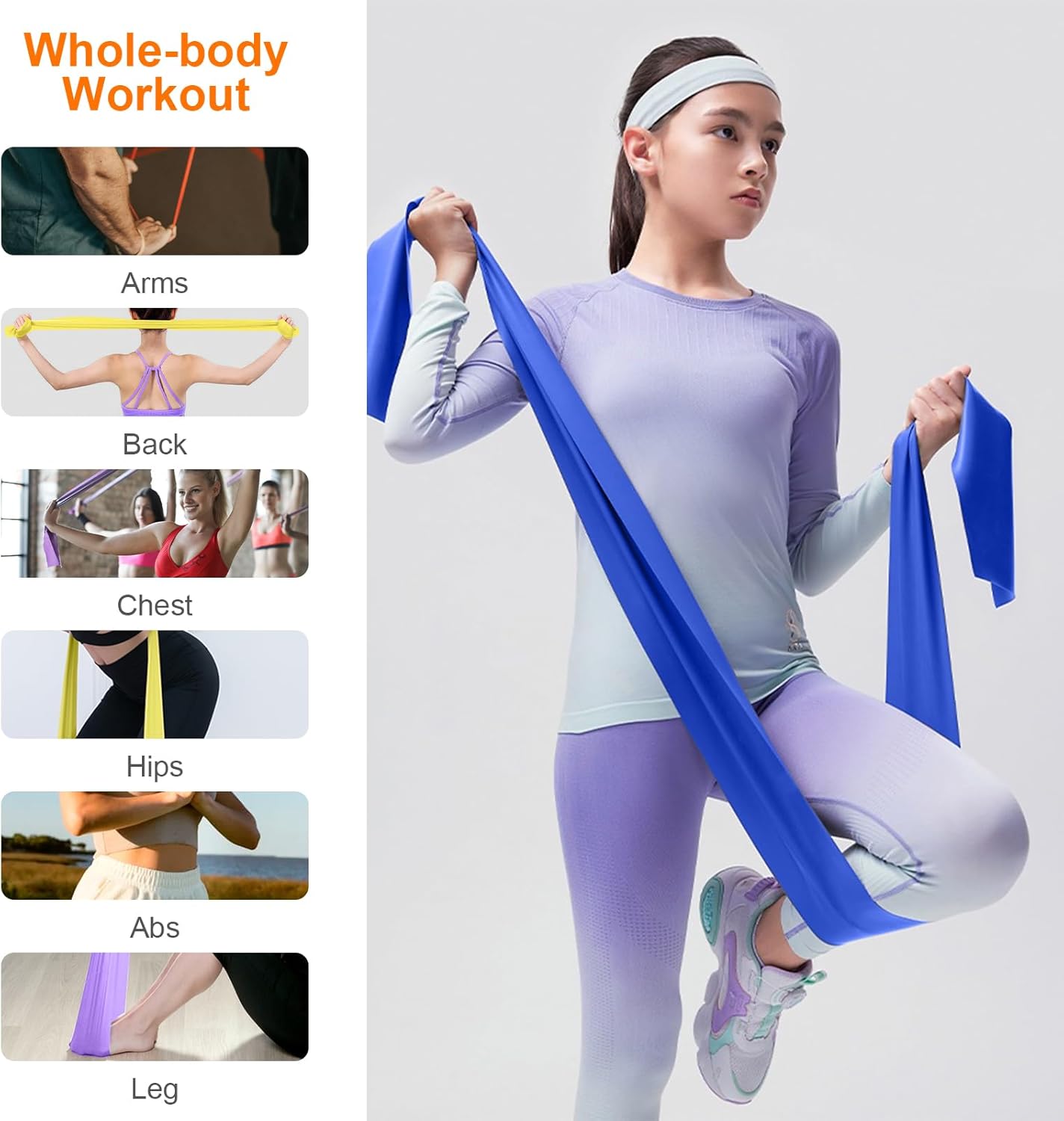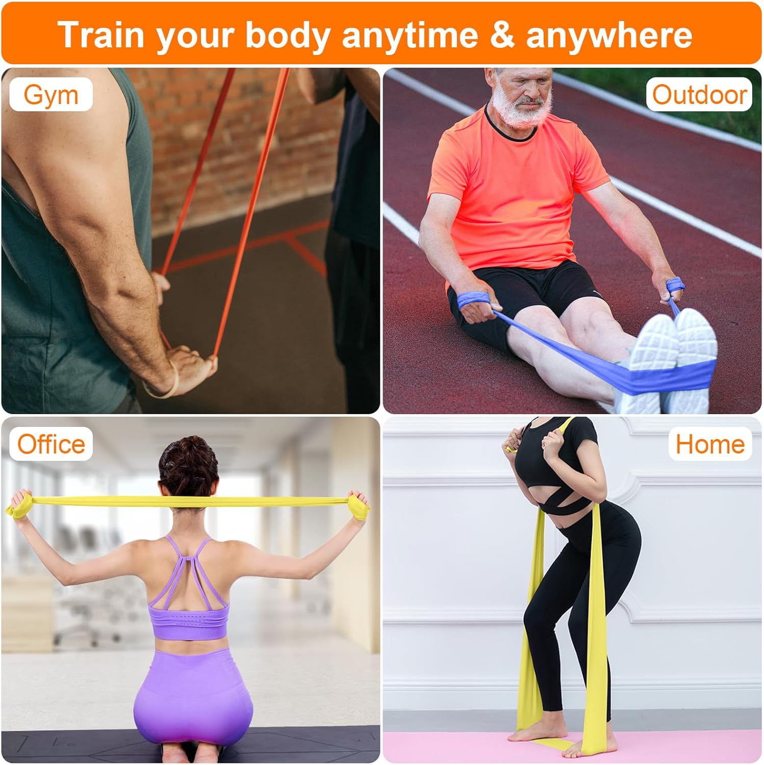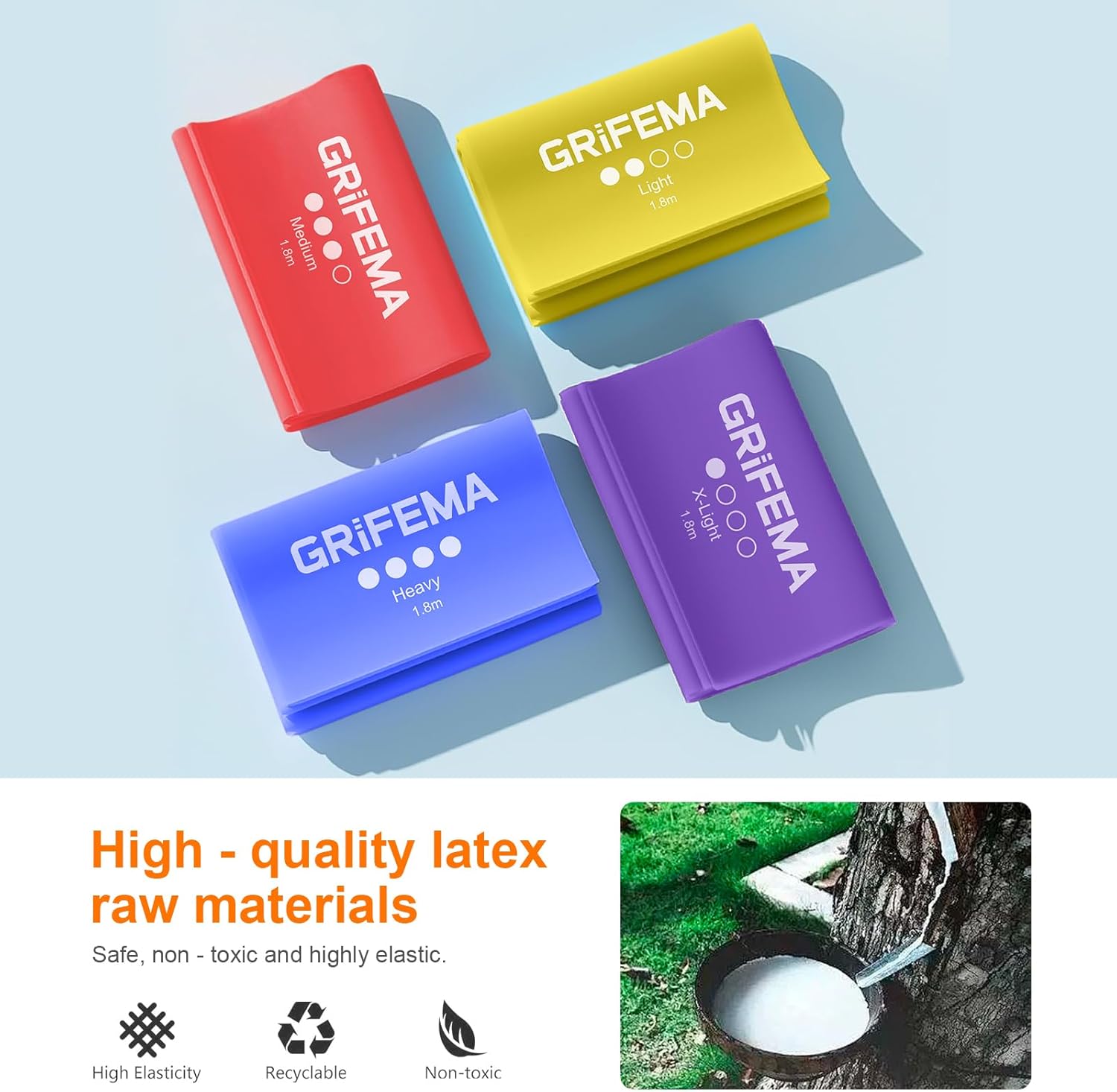 GRIFEMA GA5002 Fasce elastiche fitness [set da 4] 1,8 m, fasce elastiche con 4 livelli di resistenza per allenamento della forza, yoga, pilates