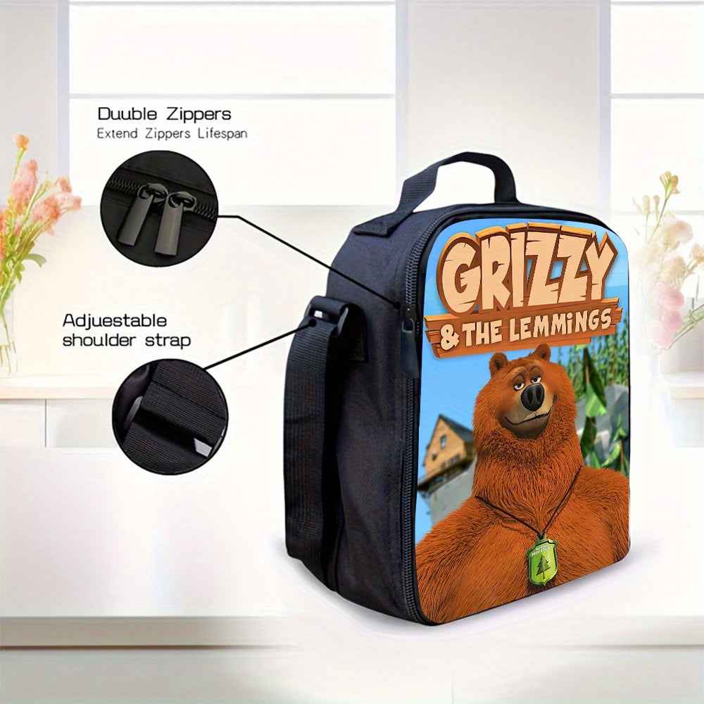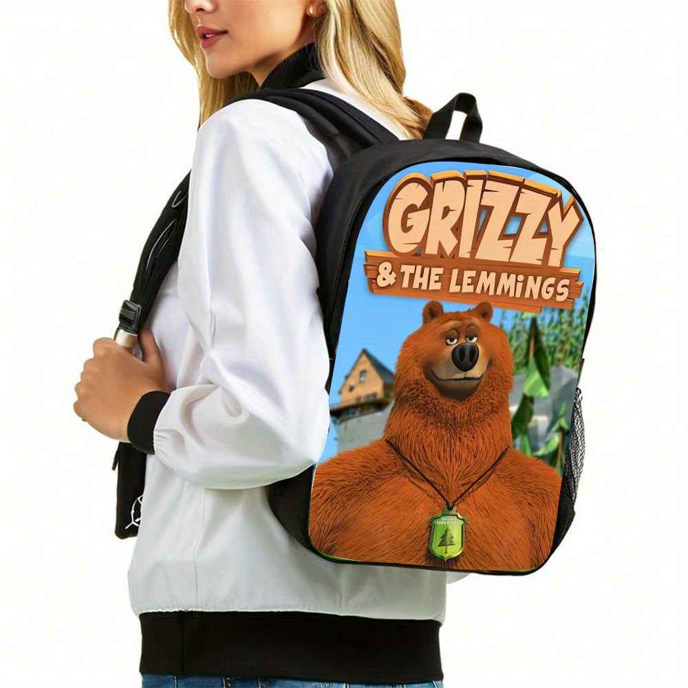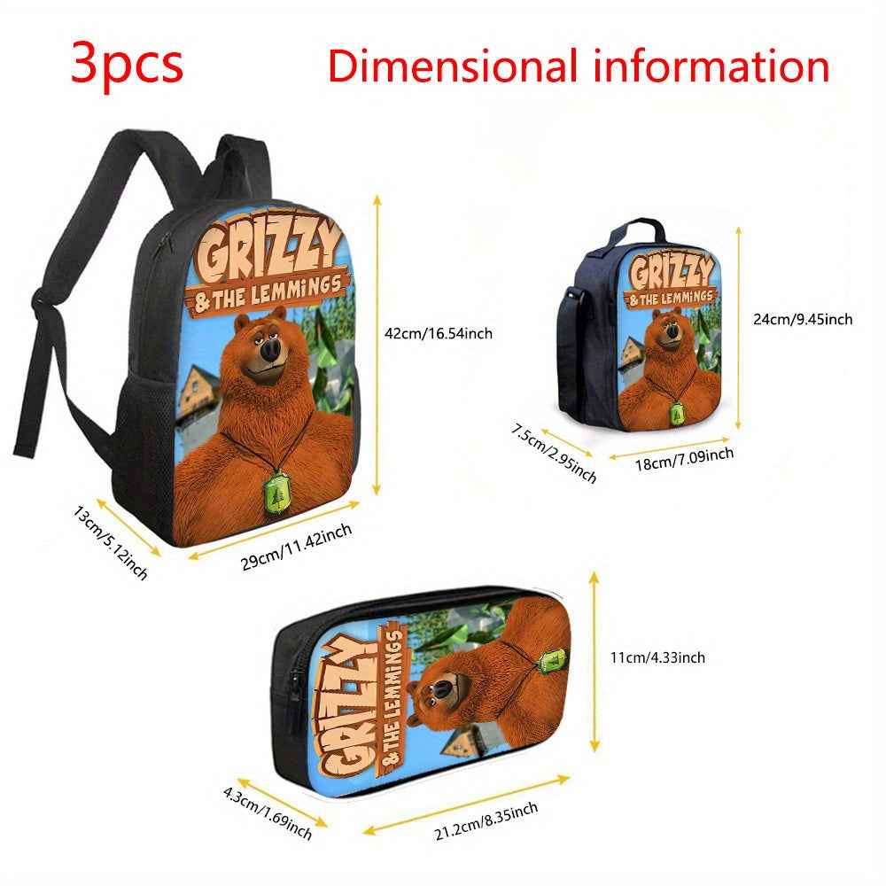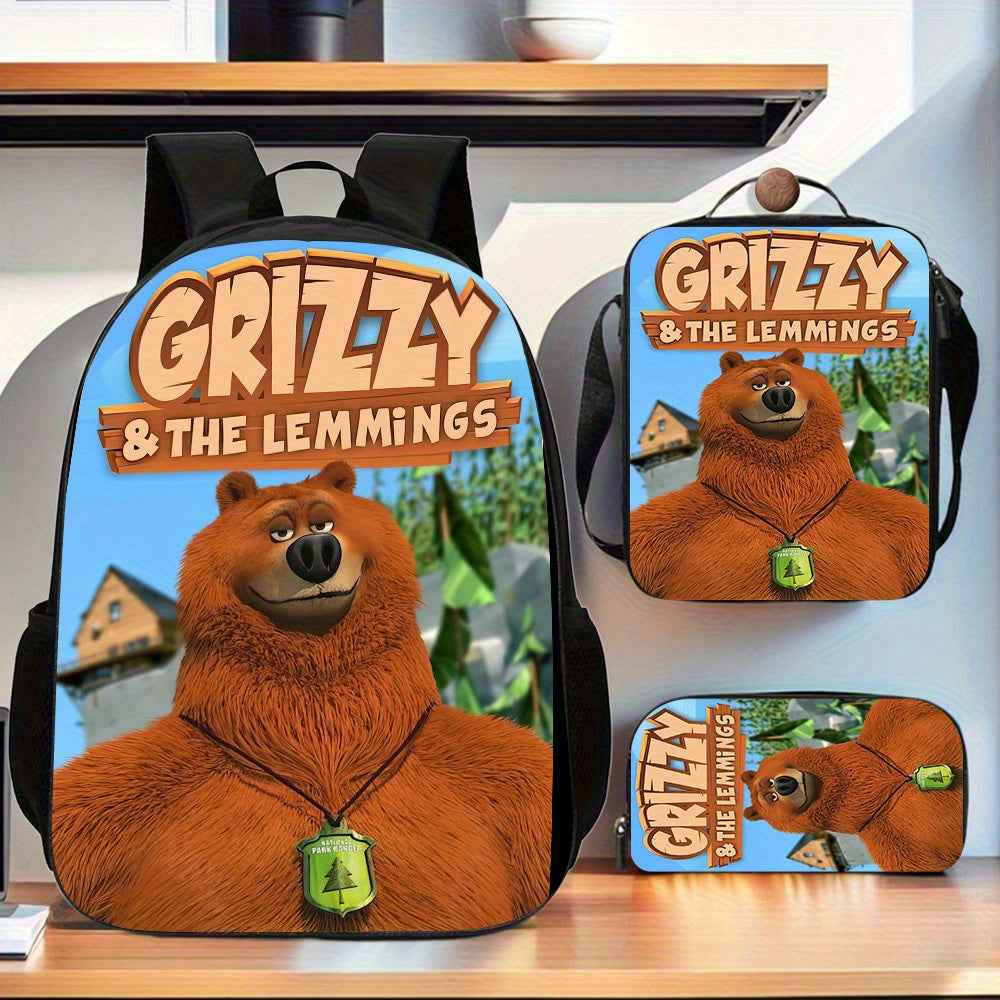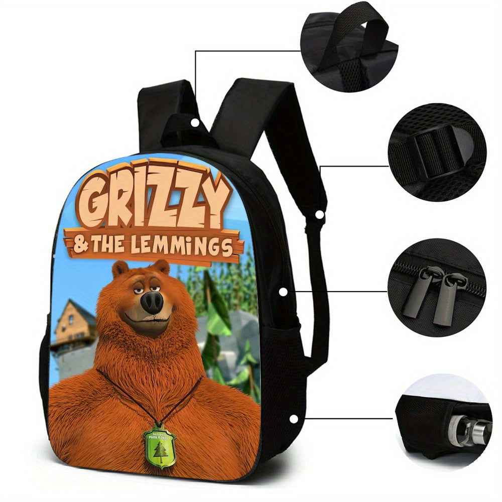 Grizzy e i Lemmings Set di 3 Pezzi Zaino alla Moda, Borsa Pranzo e Astuccio con Spalline Regolabili e Borsetta a Zip Grande Capacità, Completo Ideale per Scuola e Viaggi