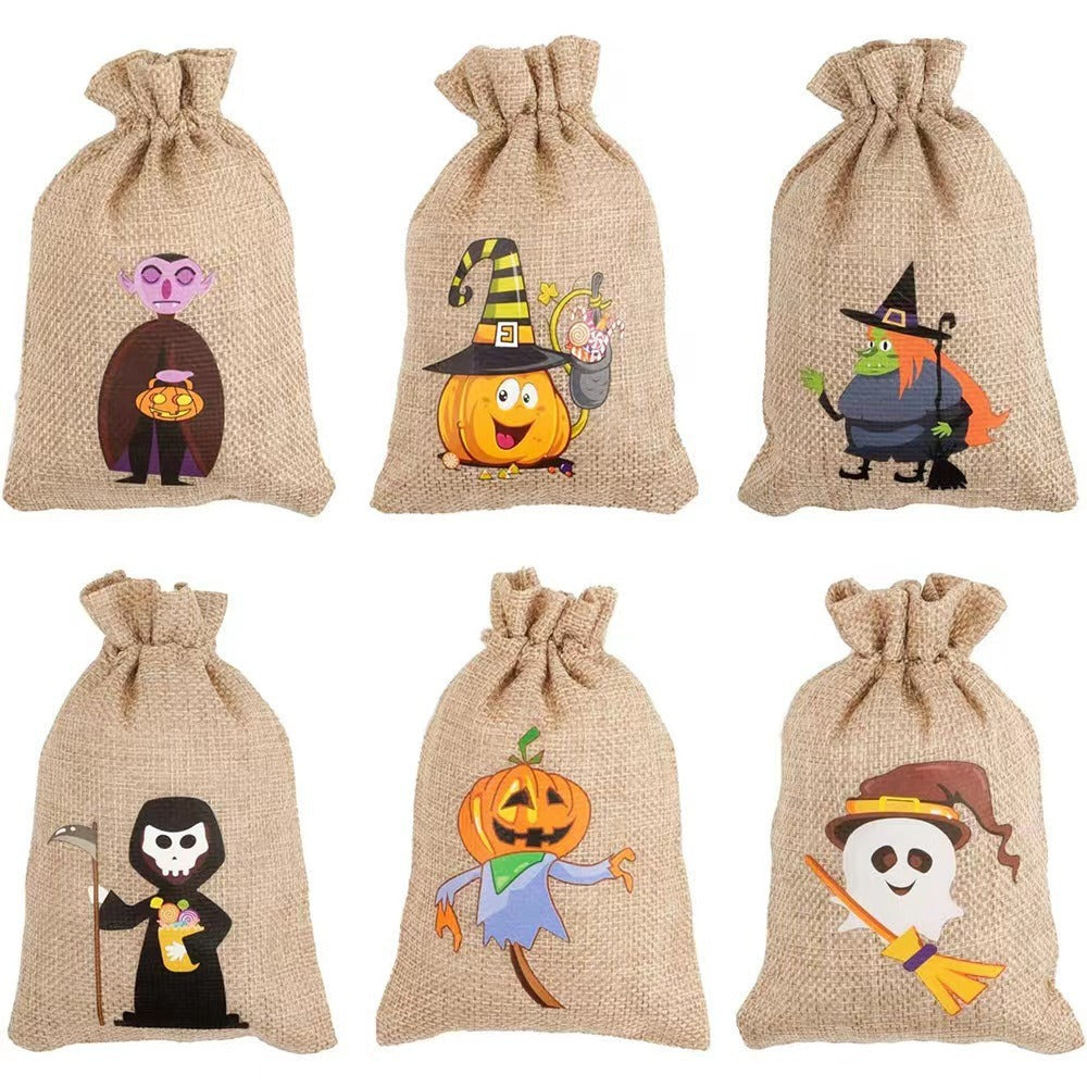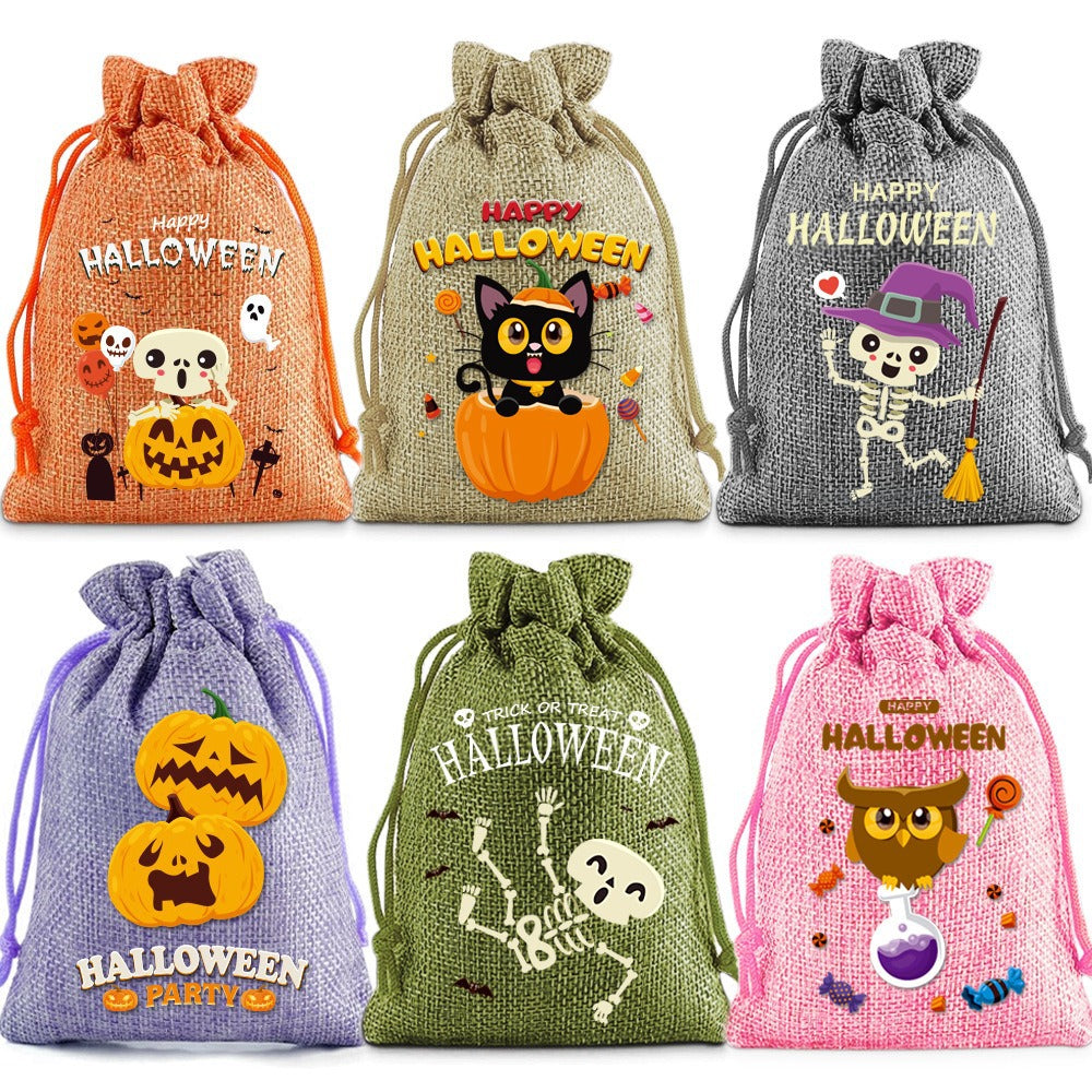 Halloween Luminous Colorful Linen Gift Drawstring Bag