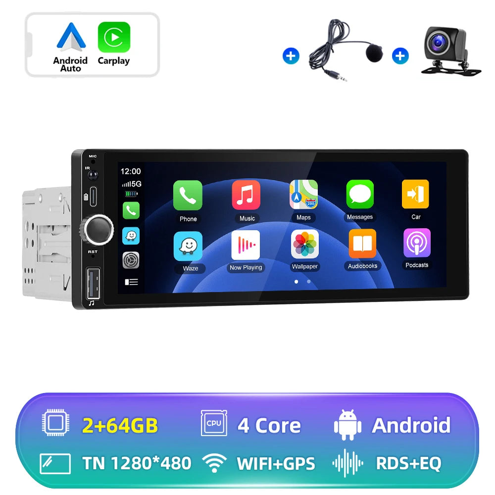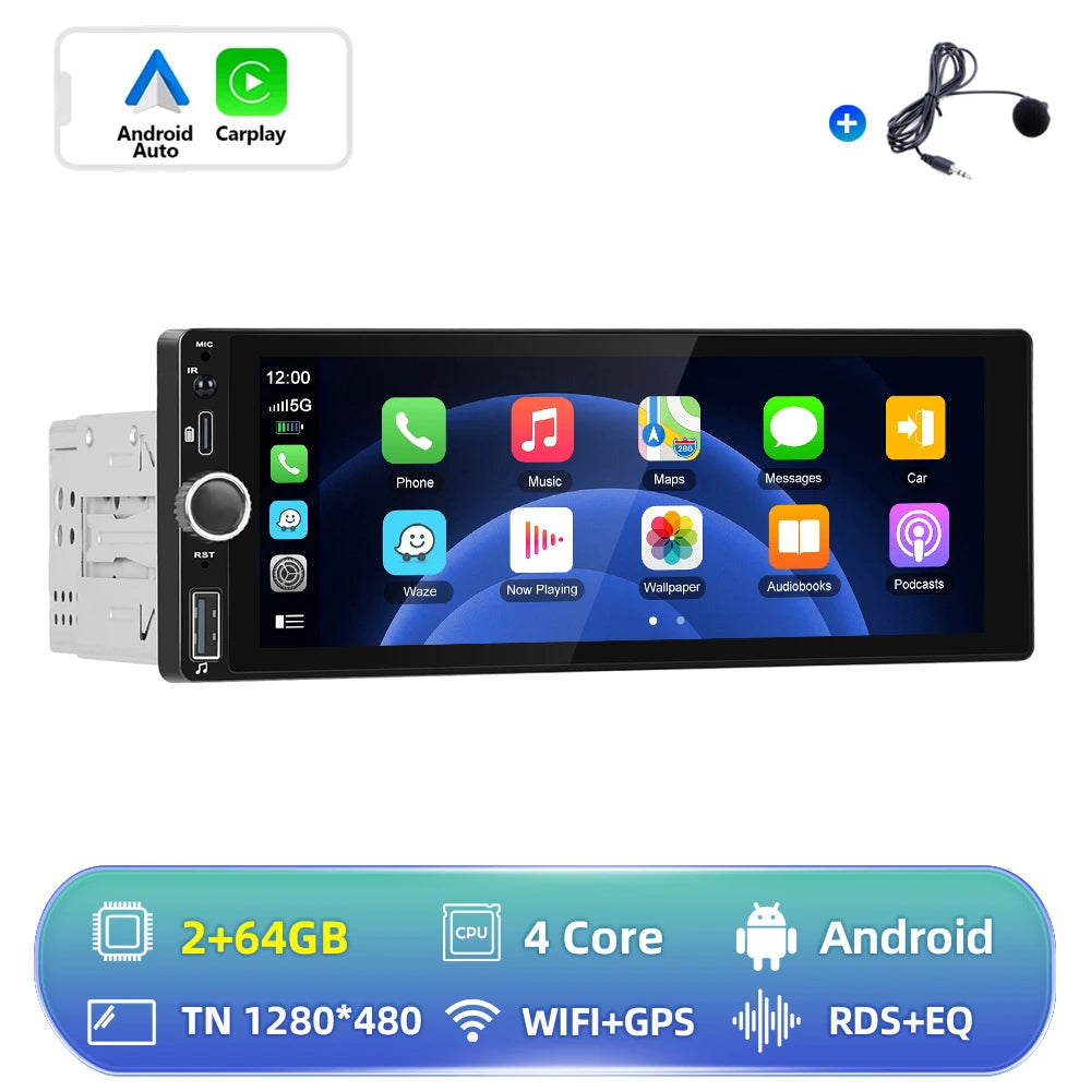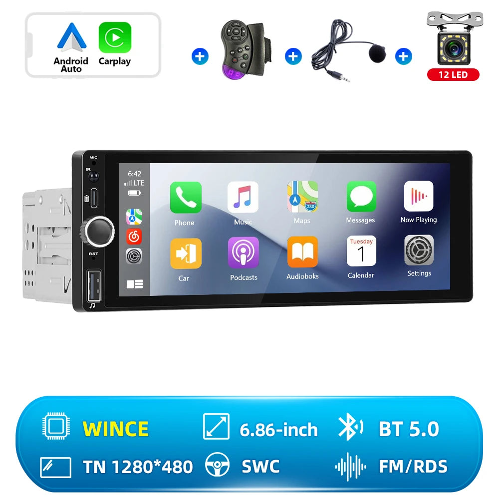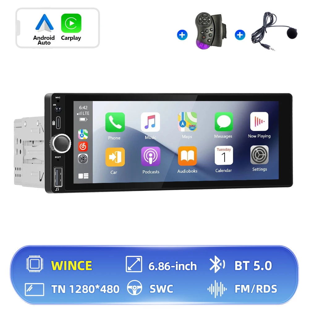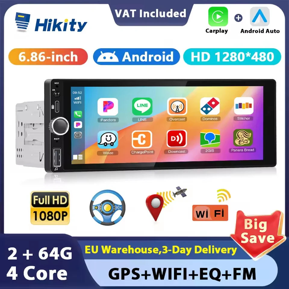 Hikity 1 Din Android Car Radio Multimedia Player Autoradio CarPlay 6.86 inch Car Stereo Player for VW Nissan Toyota Honda KIA