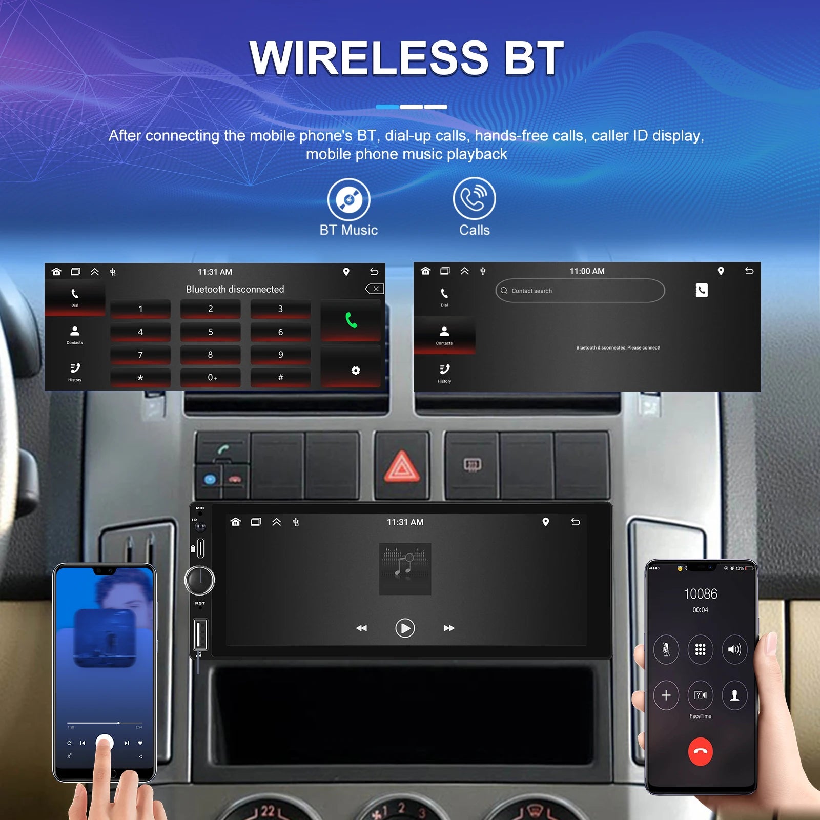 ● Built-in Bluetooth function, can connect with mobile phone, and support hands-free calling, phone book download.