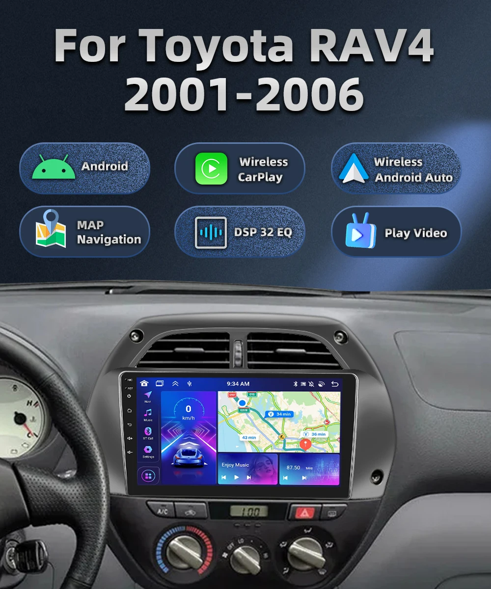 Hikity Wireless CarPlay Android Auto Car Radio For Toyota RAV4 2001-2006 BT Multimedia Player GPS WiFi Head Unit 2din autoradio