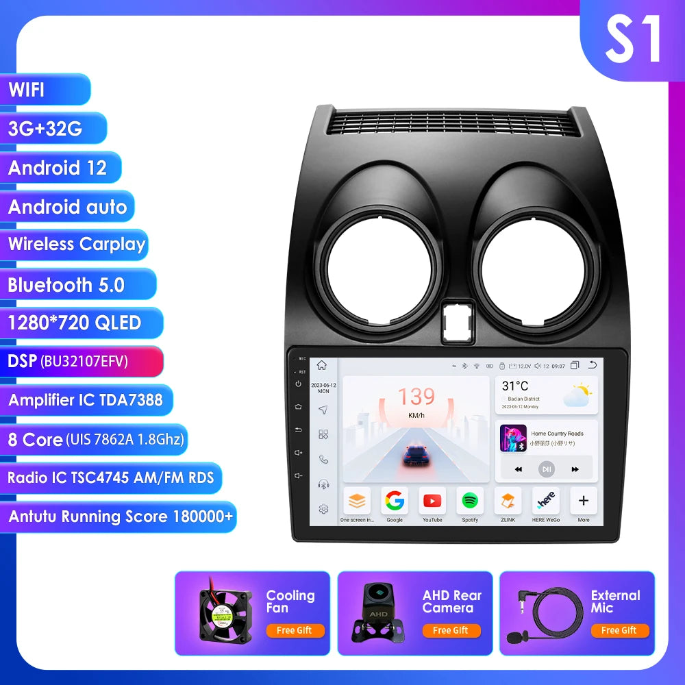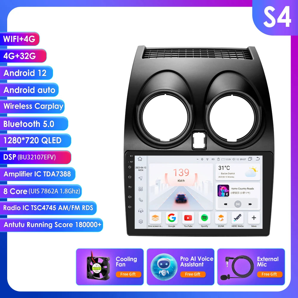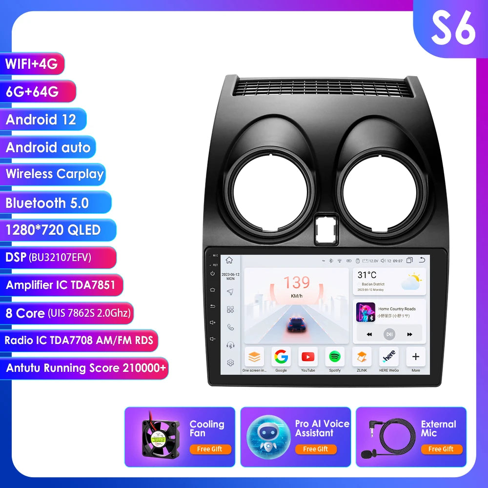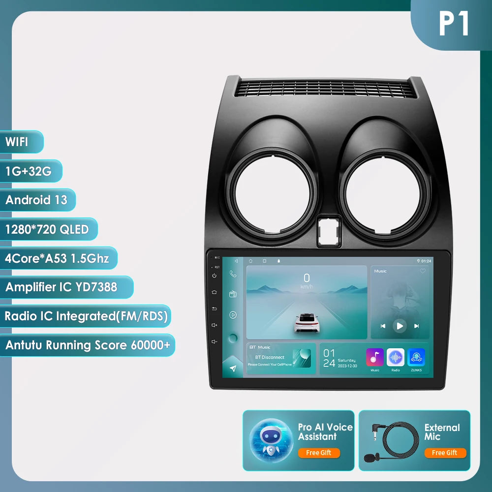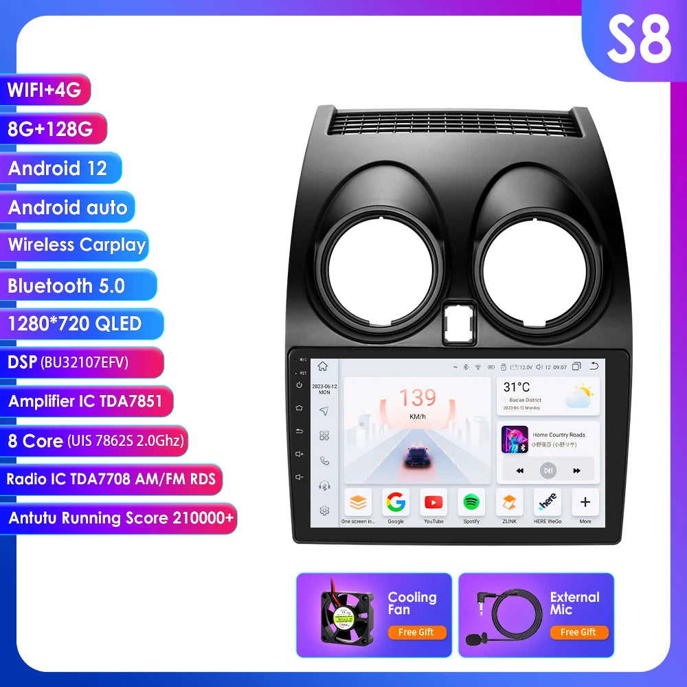 Hizpo 8G+128 AI Voice Car Radio Android Auto Multimedia For Nissan Qashqai J10 2006 2007 2008-2013 Carplay 4G 2din GPS autoradio