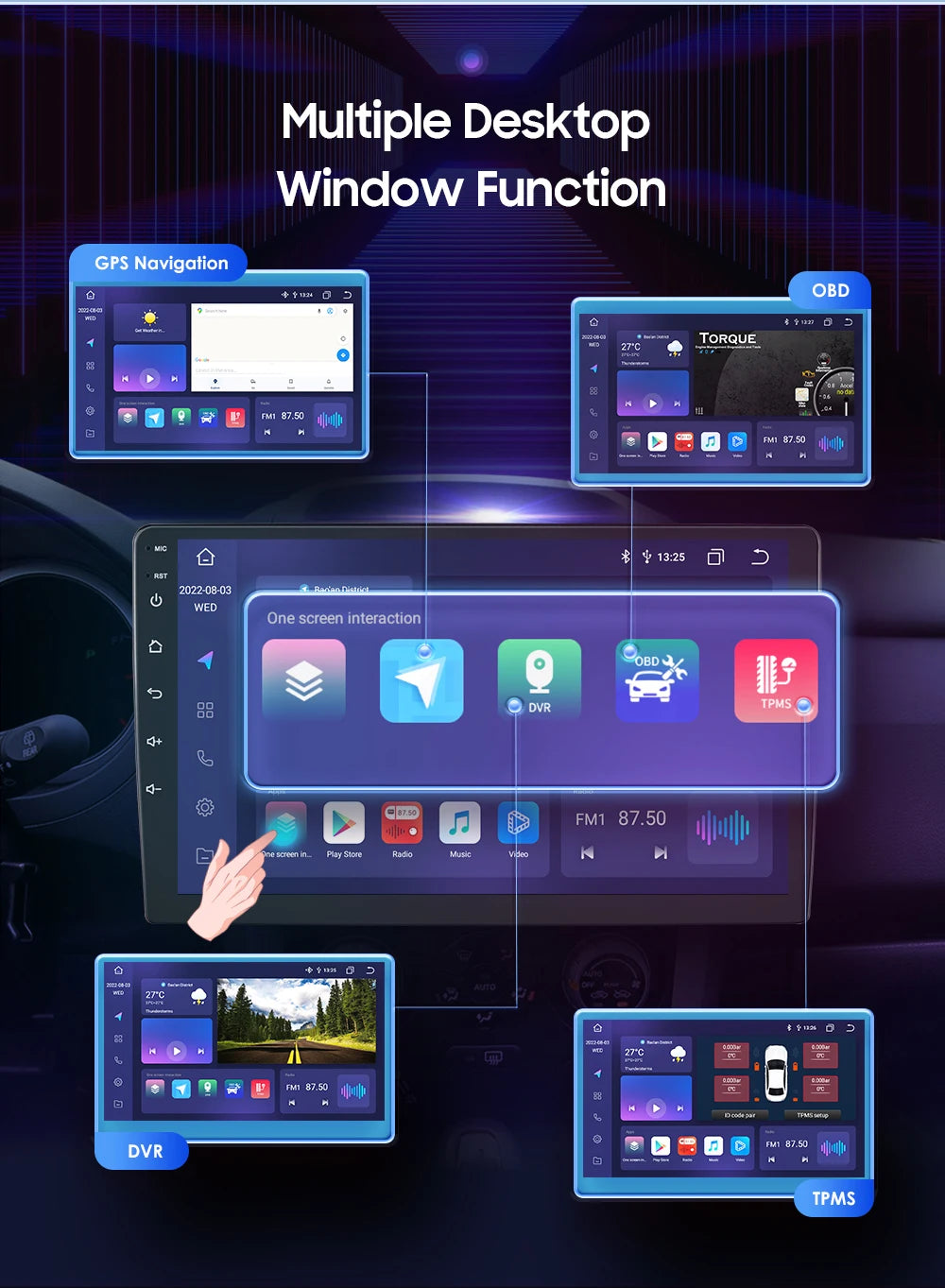 Weather Display ( Can contact us for the active code for free to active it)Multiple Desktop Window Function (For example: GPS ,OBDII , DVR , TPMS etc. )Navigation , Weather Display , Split Screen , Bluetooth phone, Radio functions ,One key to enter the secondary page, Customizable application add, delete, move.Support Torque Pro ( OBD2 & Car ) : You can connect a PJ-908 Bluetooth OBD2 Scanner Tool to use this function. Note: this PJ-908 Bluetooth OBD2 scanner Tool is not included,you can contact us to buy it together.
