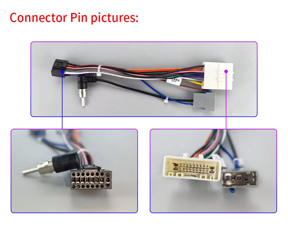 (Notice: if the connector pin to install with the car wires' cable is not the same as them which needs to contact the after-sale service to order special wire for installing)