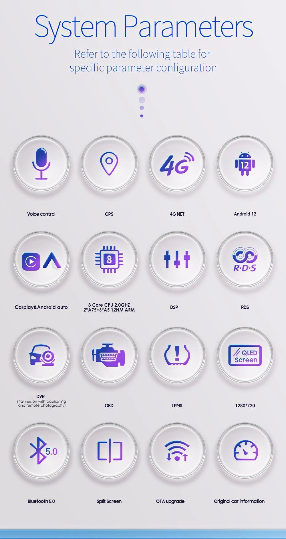 Special Features: Built-In Speaker/Microphone,wifi function,Support steering wheel control,Support 4G Network,Support Can-Bus,Built-in GPS,Mobile Phone,MP3 players,Voice control,dsp,CarPlay,android auto,Reversing Input,Split Screen