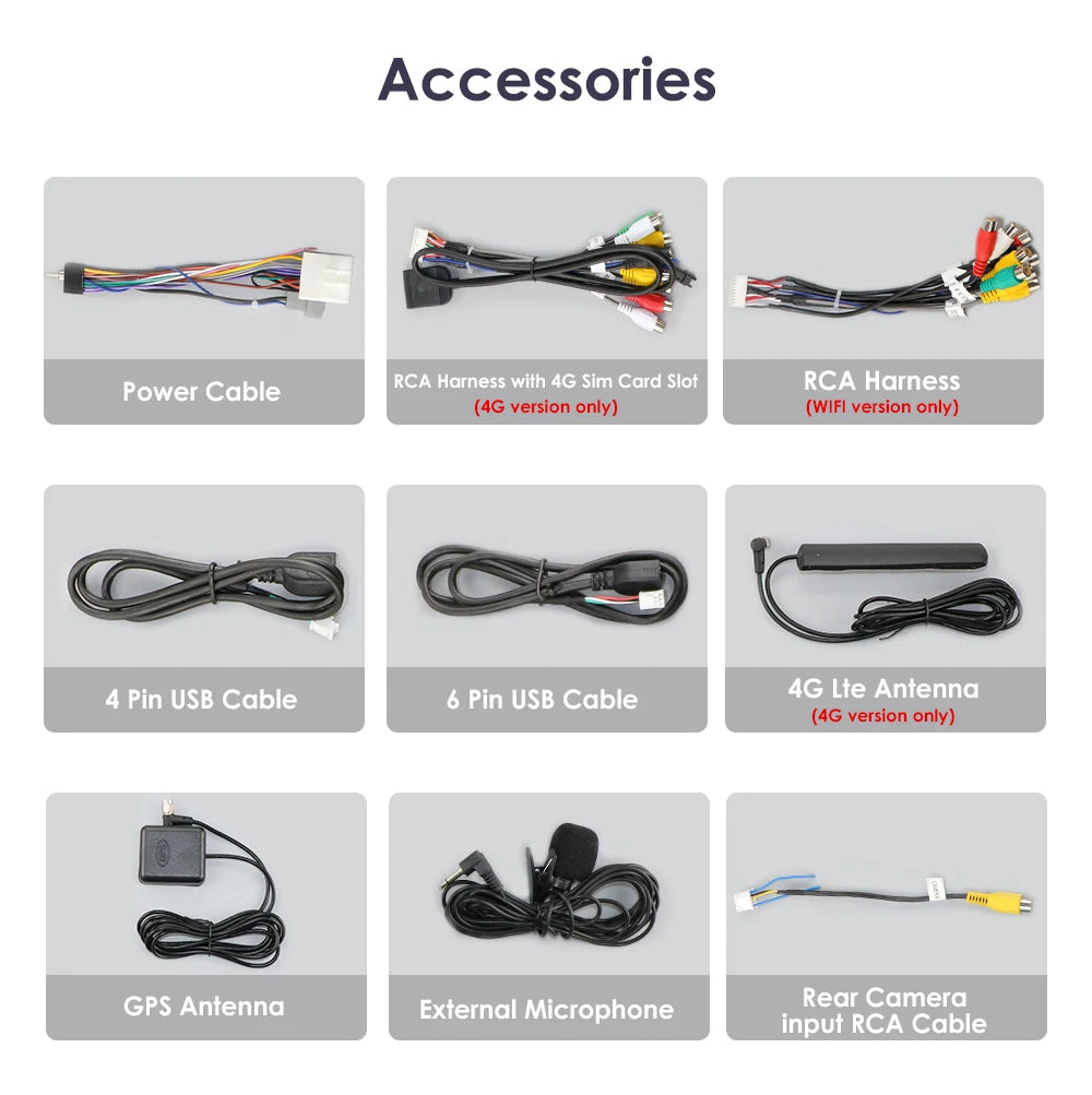 Standard Accessories: which ship with the head unit together(but please pay attension to the red words of accessory whether can get or not which depends on the item option you choose to buy it)