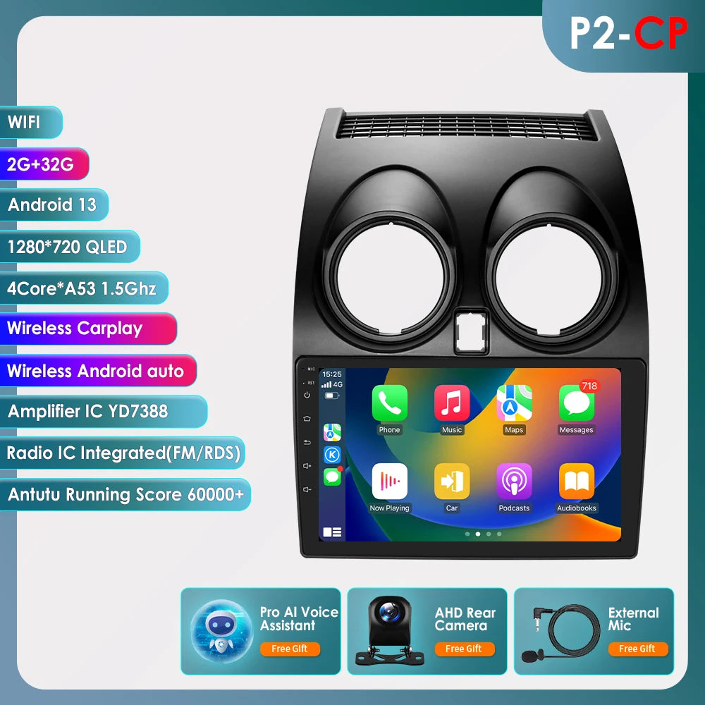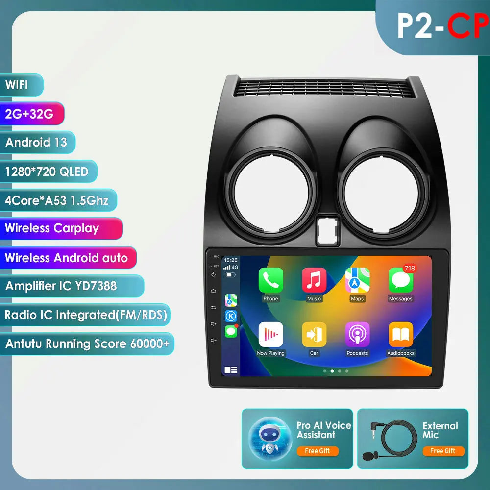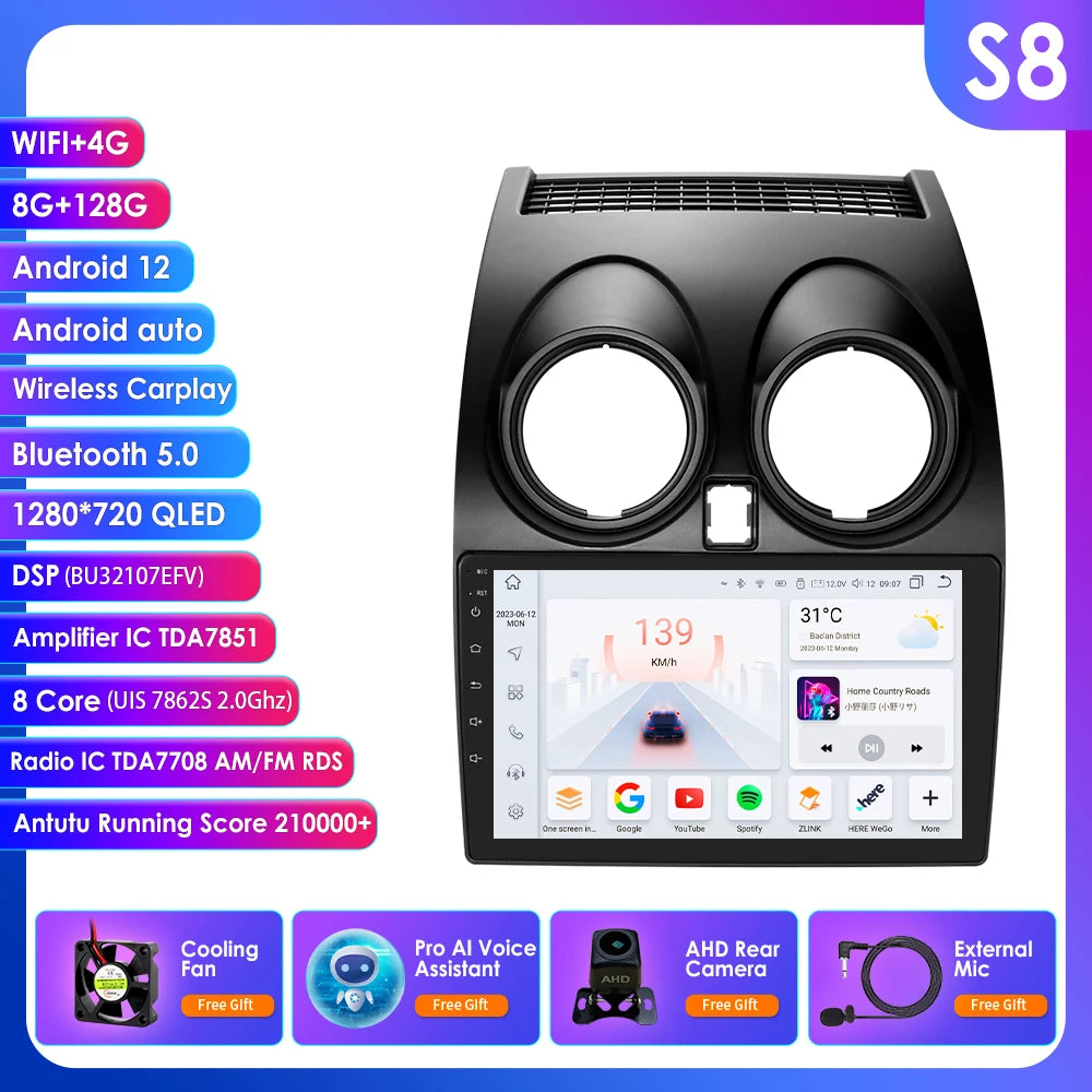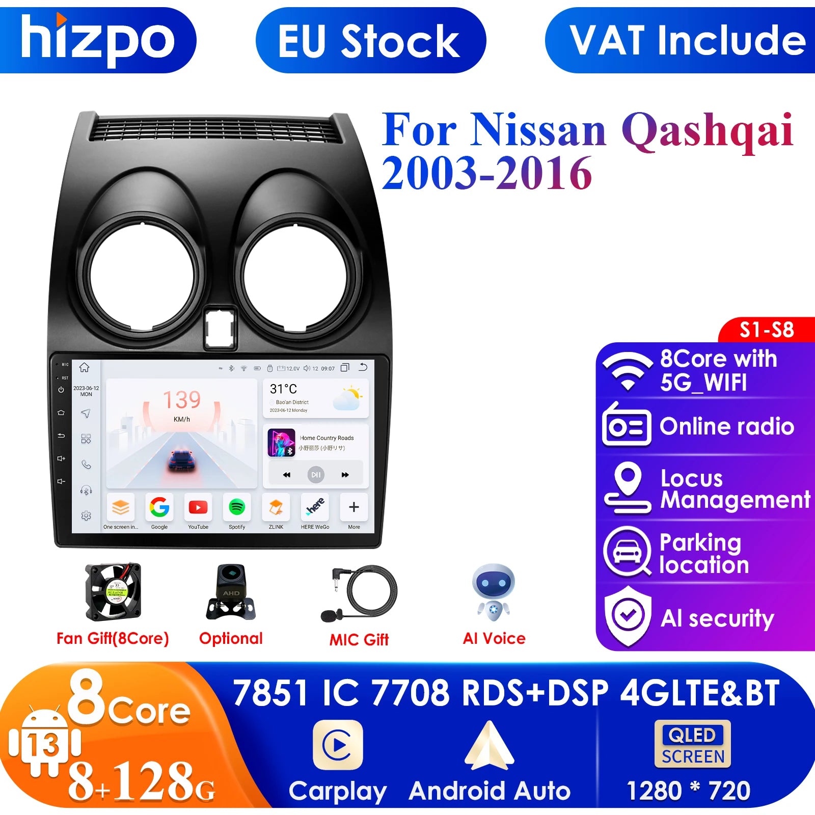 Hizpo 8G+128 AI Voice Car Radio Android Auto Multimedia For Nissan Qashqai J10 2006 2007 2008-2013 Carplay 4G 2din GPS autoradio