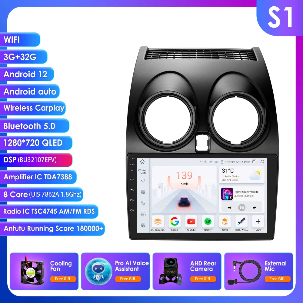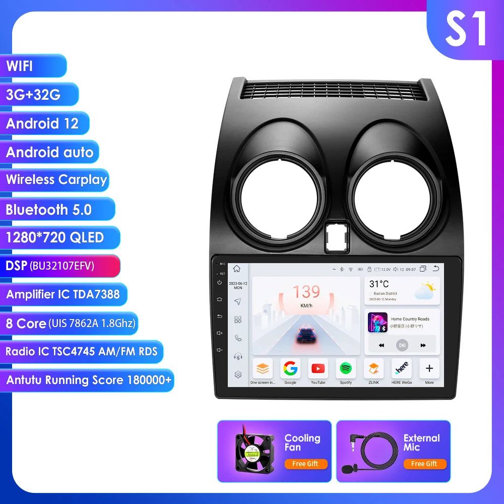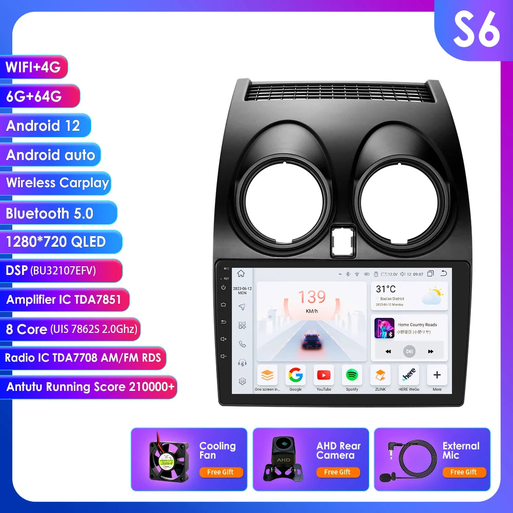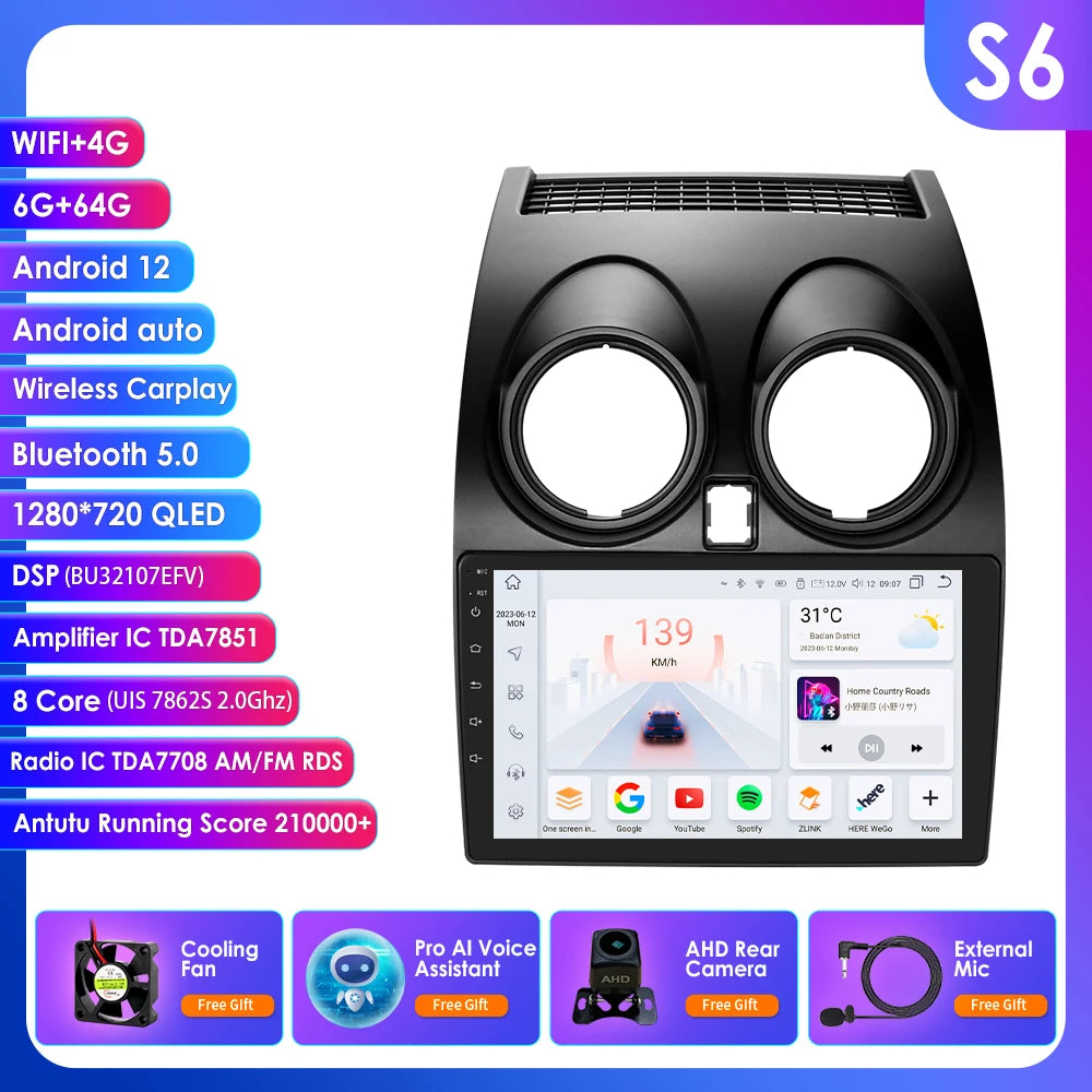 Hizpo 8G+128 AI Voice Car Radio Android Auto Multimedia For Nissan Qashqai J10 2006 2007 2008-2013 Carplay 4G 2din GPS autoradio