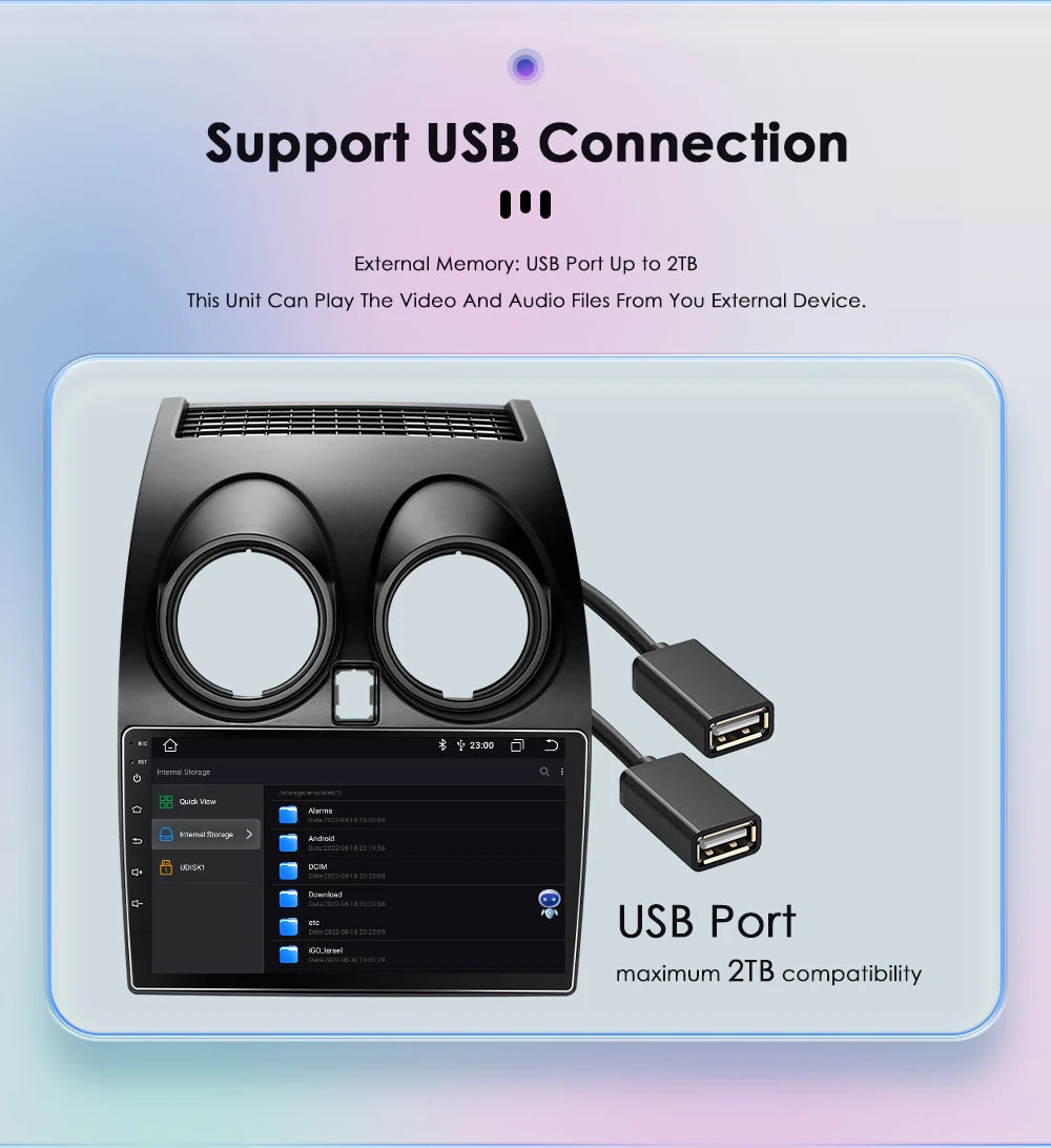 External Memory: USB port up to 2TB,this unit can play the video and audio files from your external device.