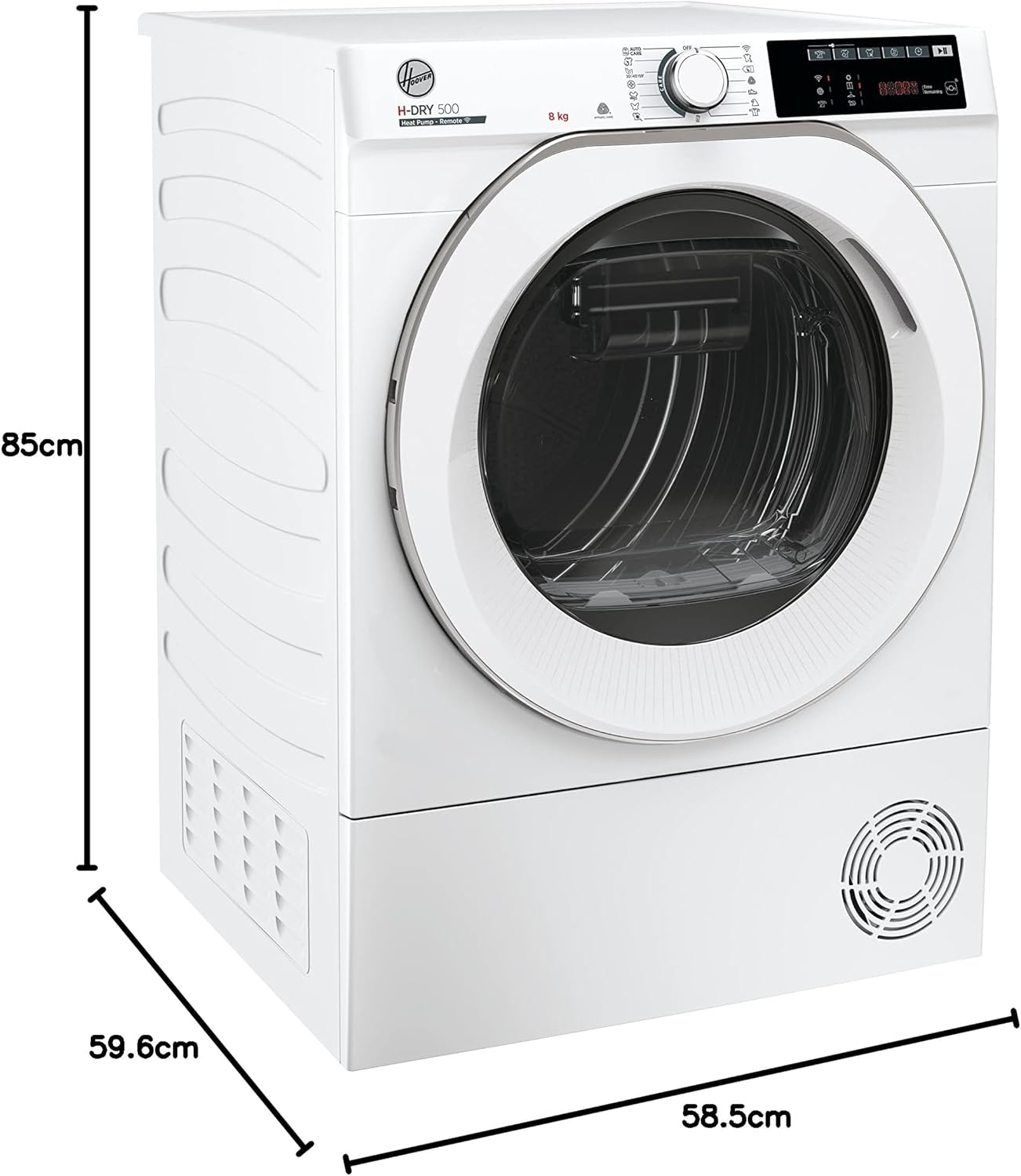 Hoover H-DRY 500 Asciugatrice 8 Kg, Pompa di Calore, Libera Installazione, Classe A++, Controllo da App hOn e Connessione Wi-Fi, Griglia per Scarpe, 59,6 x 58,5 x 85 cm, Bianca - NDE H8A2TCEXS-S
