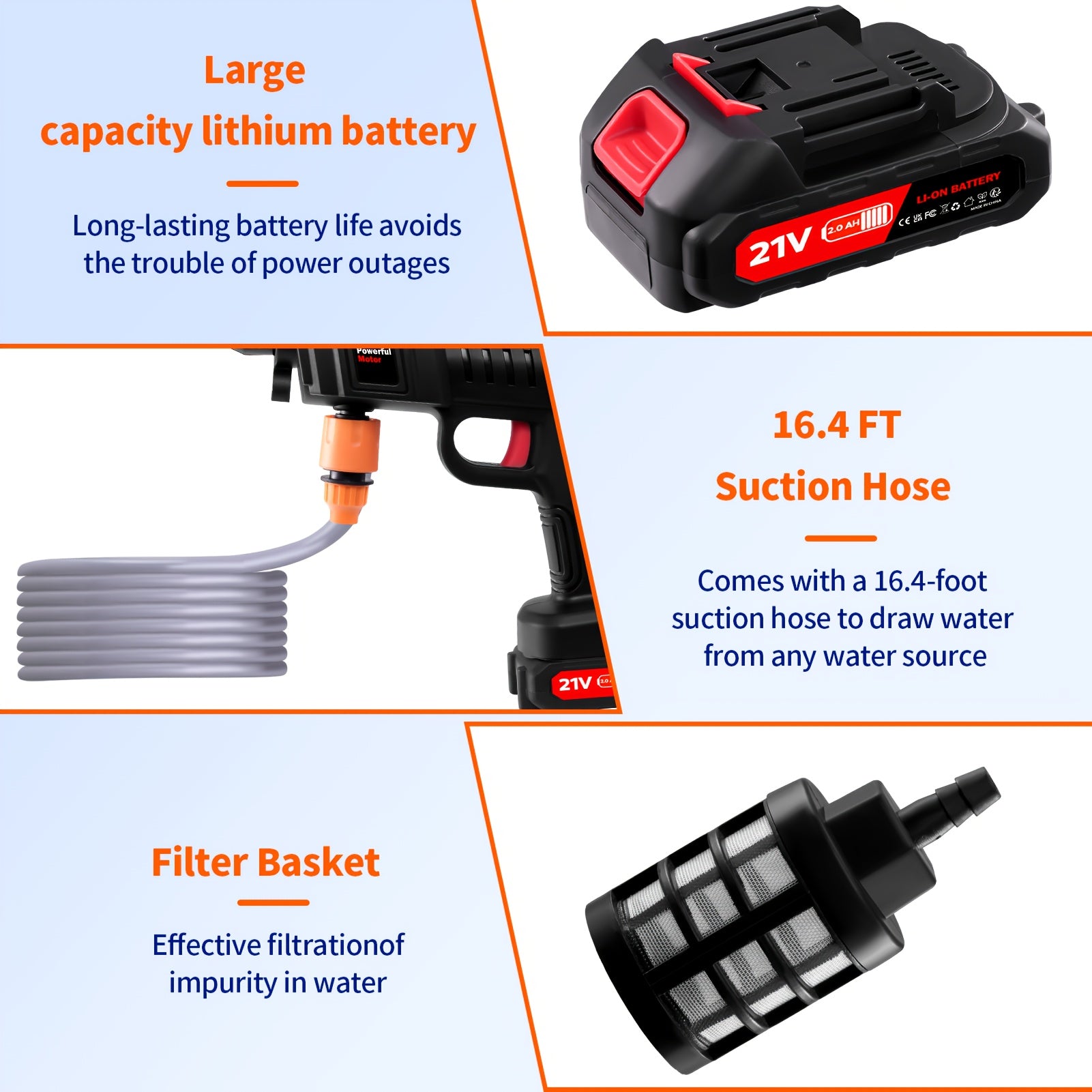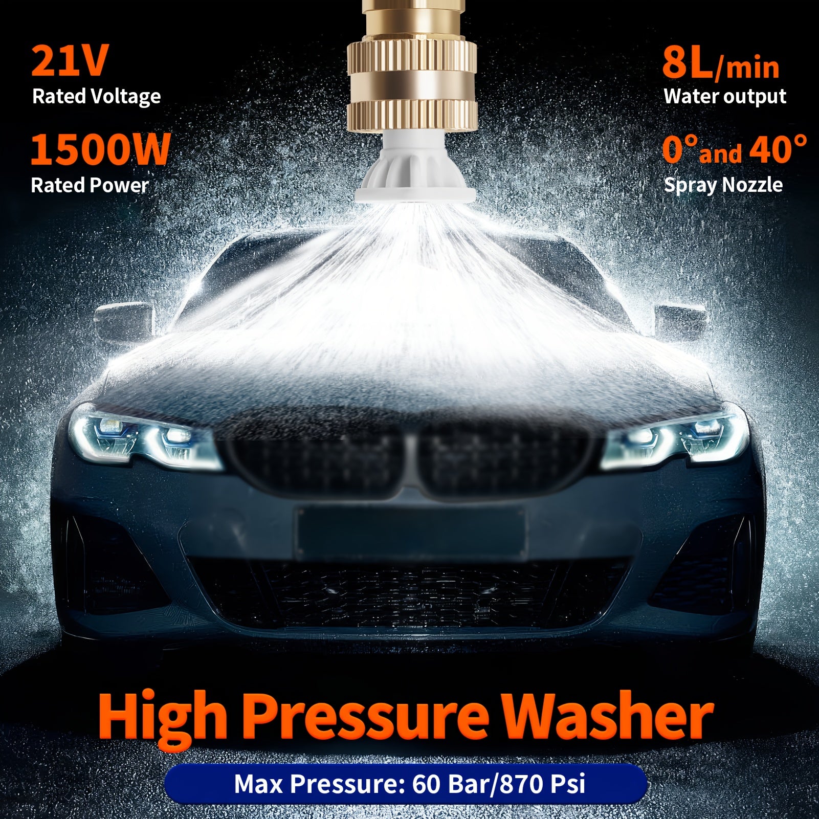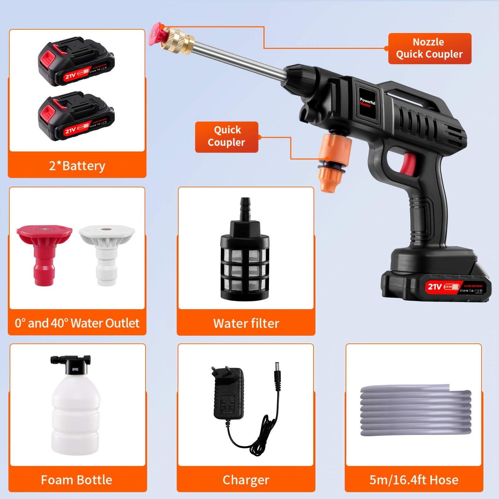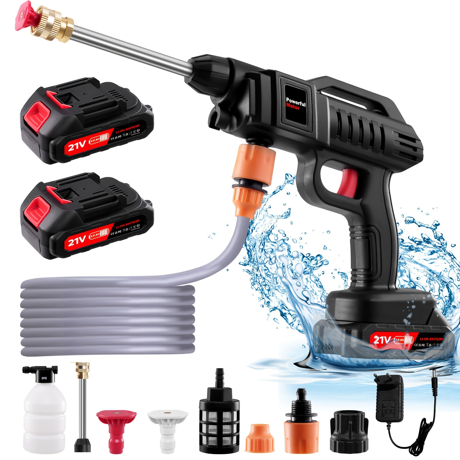 Idropulitrice Portatile ad Alta Pressione, Macchina per Pulizia ad Alta Pressione Alimentata a Batteria da 1500W con 2 Batterie e Tubo da 5m, per Auto, Giardini e Magazzini