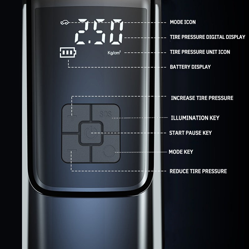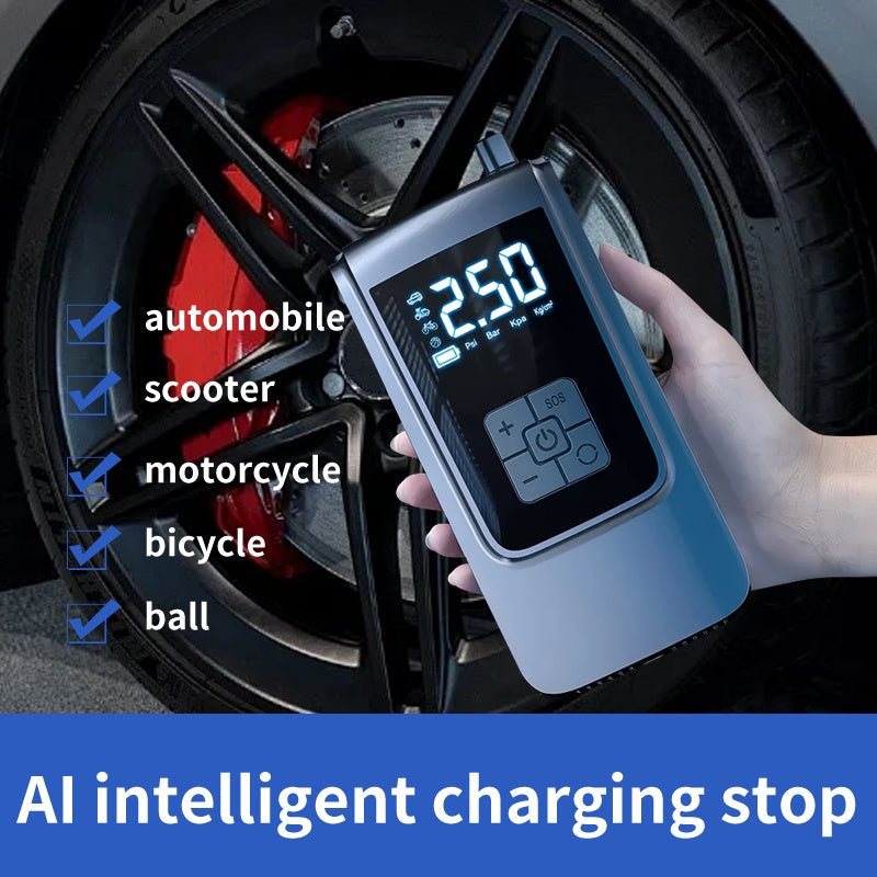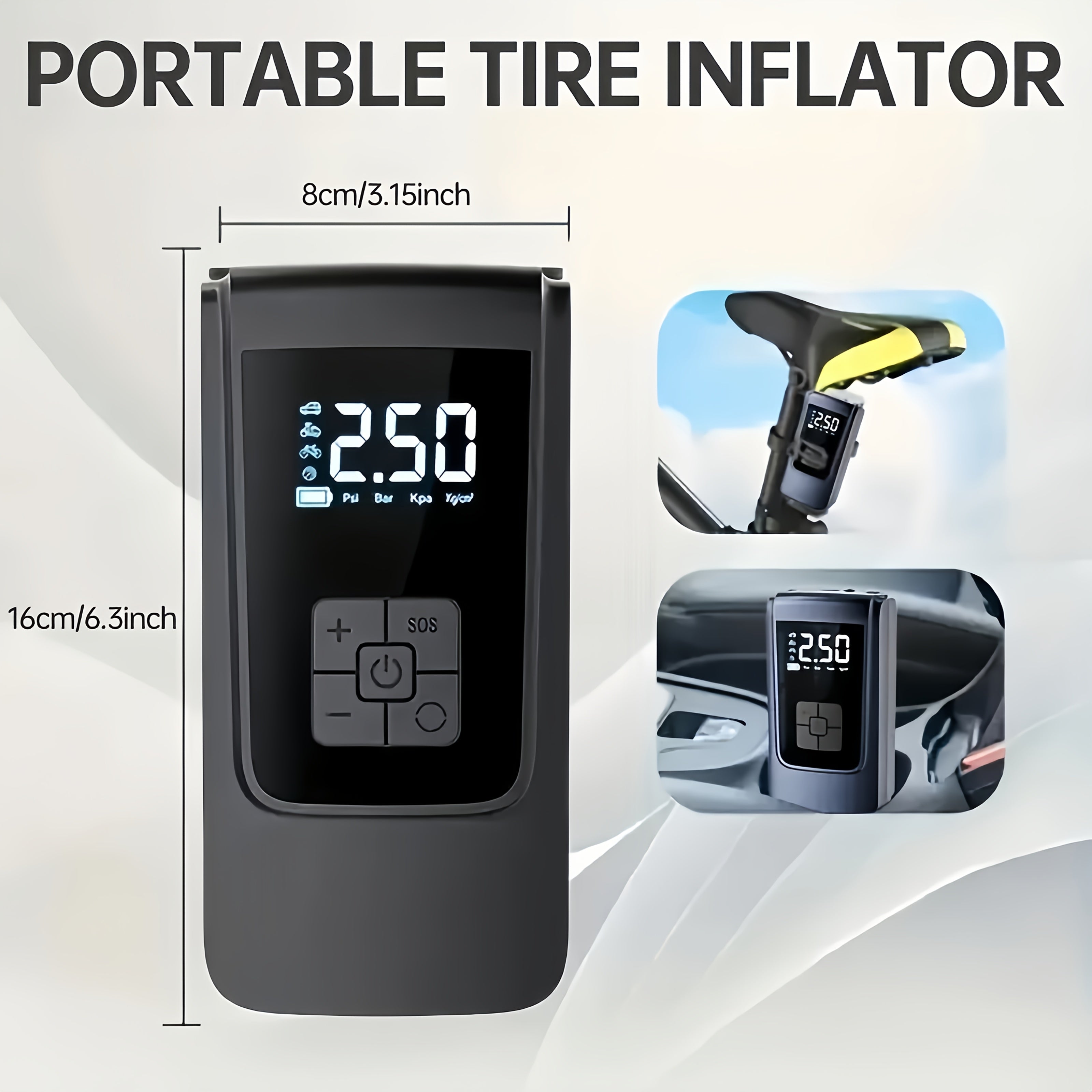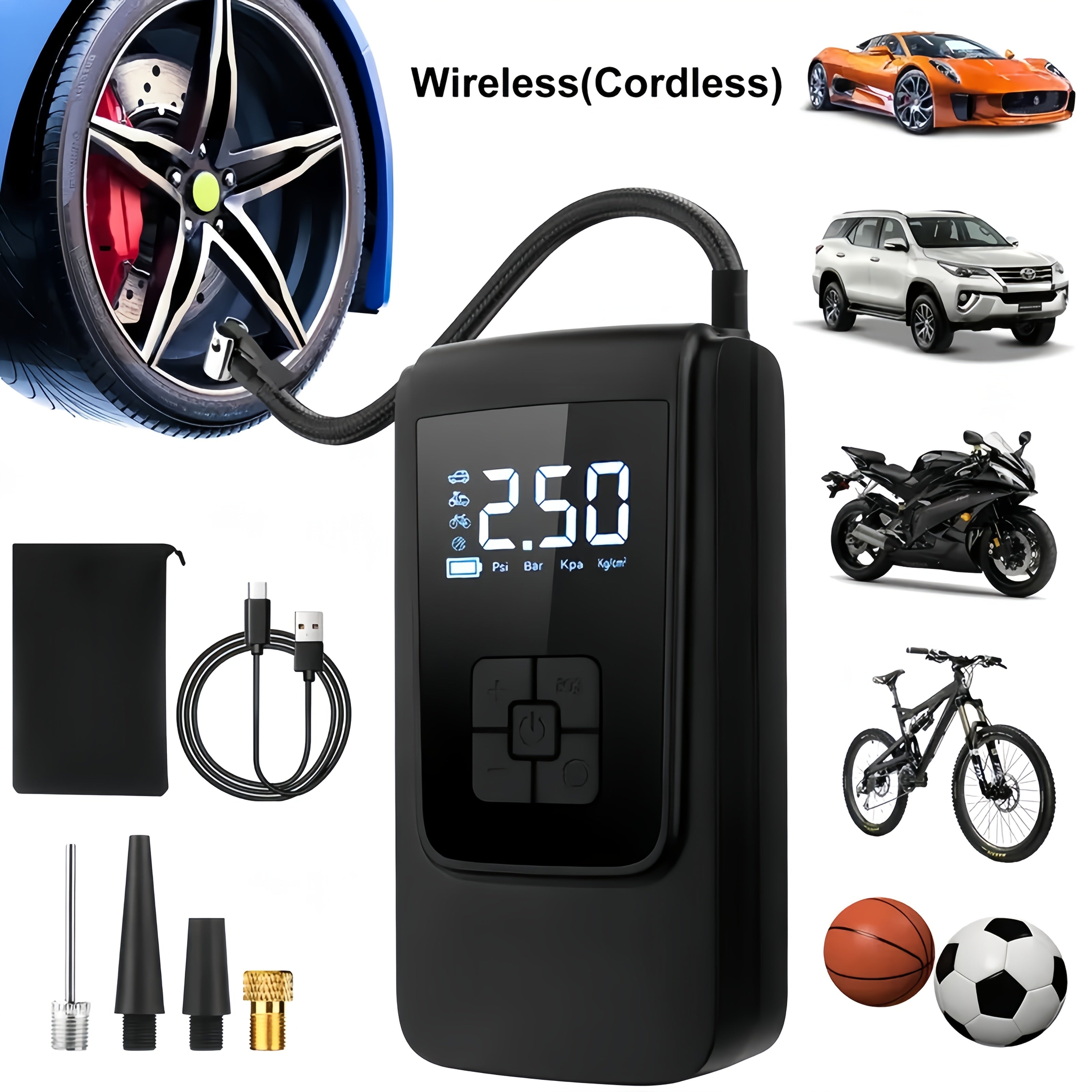 Inflatore di pneumatici portatile senza fili, 150PSI, ricarica rapida, USB-C, display LCD digitale, batteria al litio ricaricabile da 2000mAh, spegnimento automatico per auto, moto, bicicletta, pallone - Design compatto e resistente, funzione di arresto a