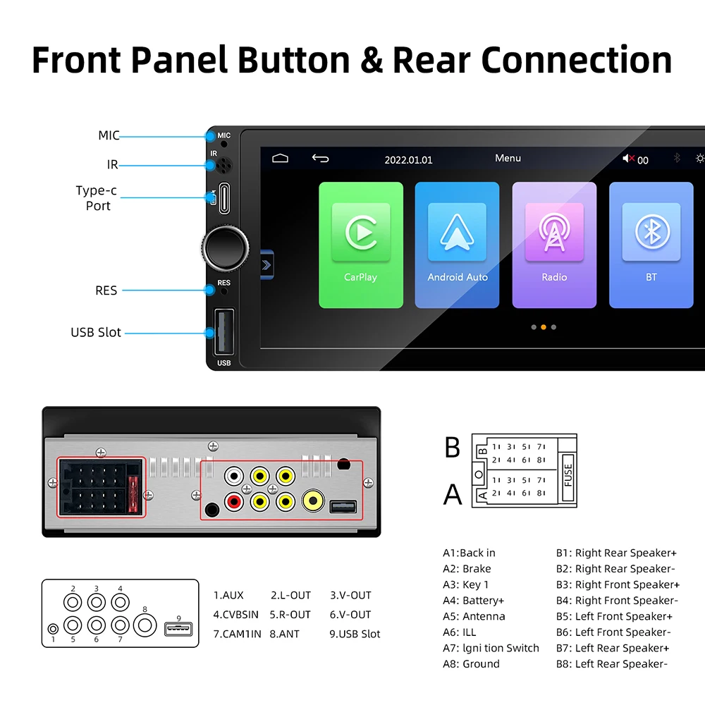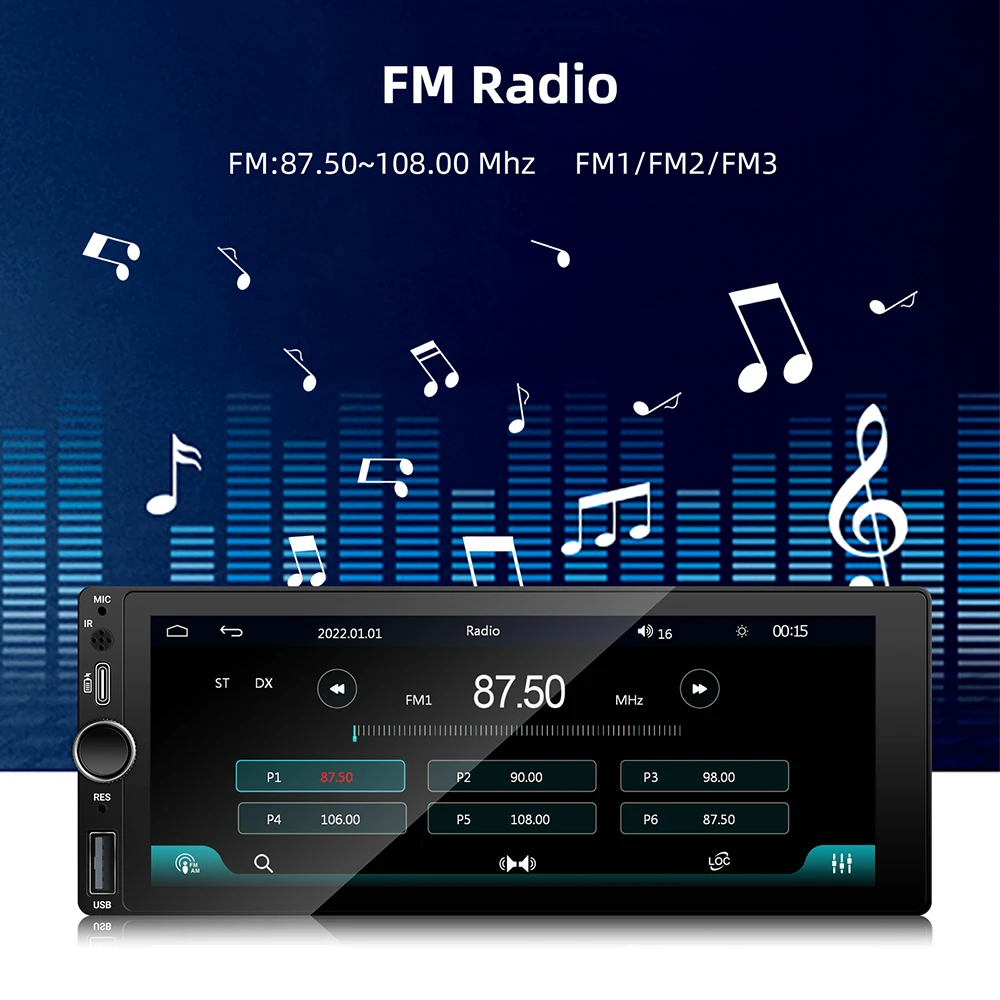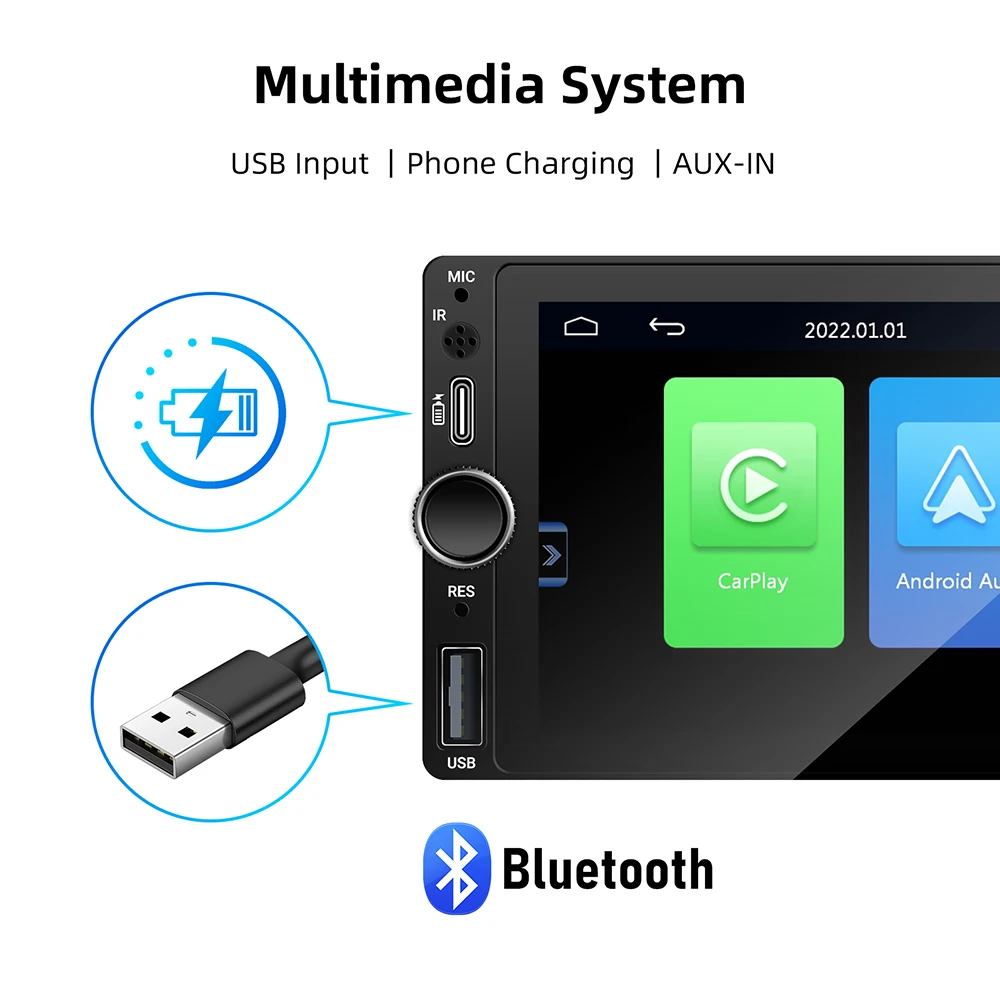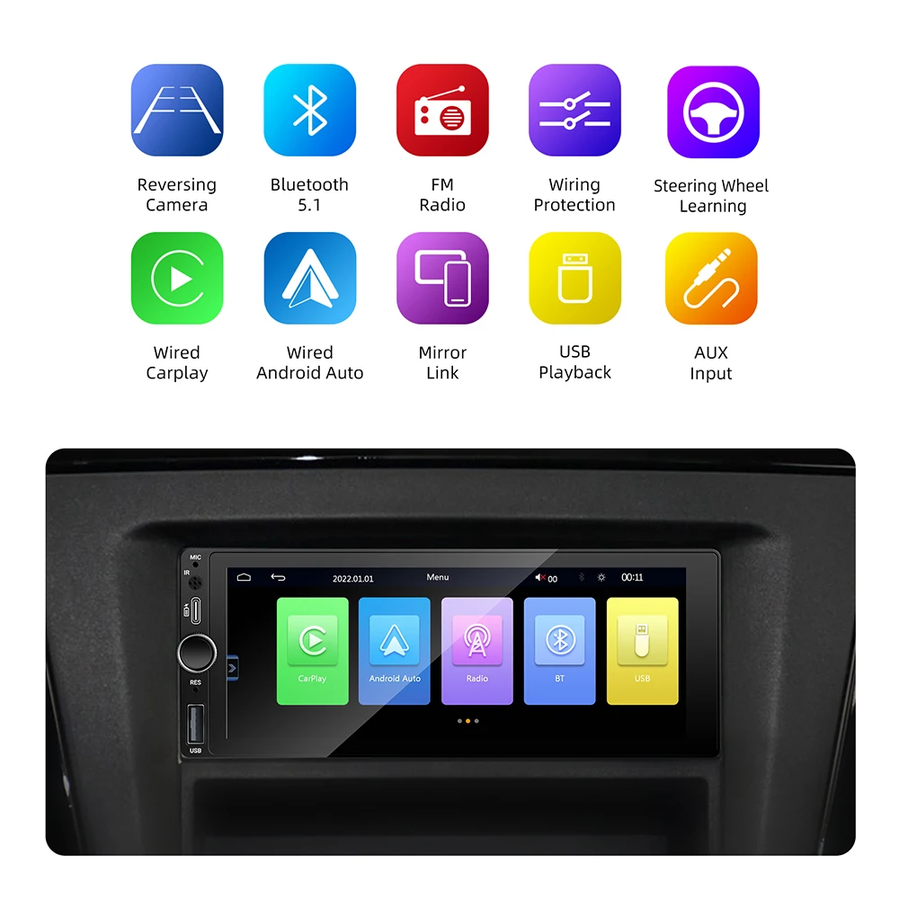 IPS 6.9 Inch 1Din Wired Carplay Android Auto Car Radio Multimedia Video MP5 Player Touch Screen Universal Autoradio Stereo