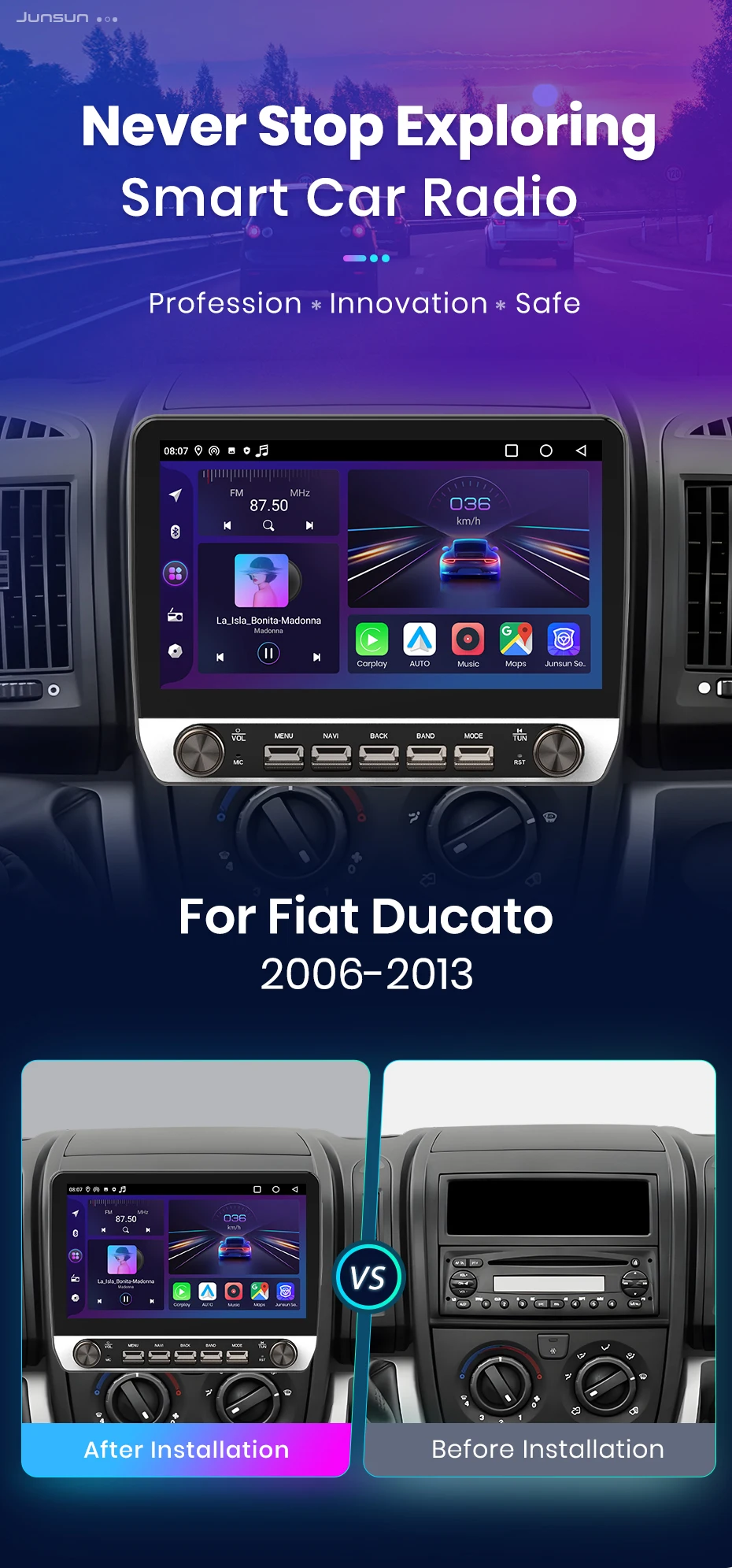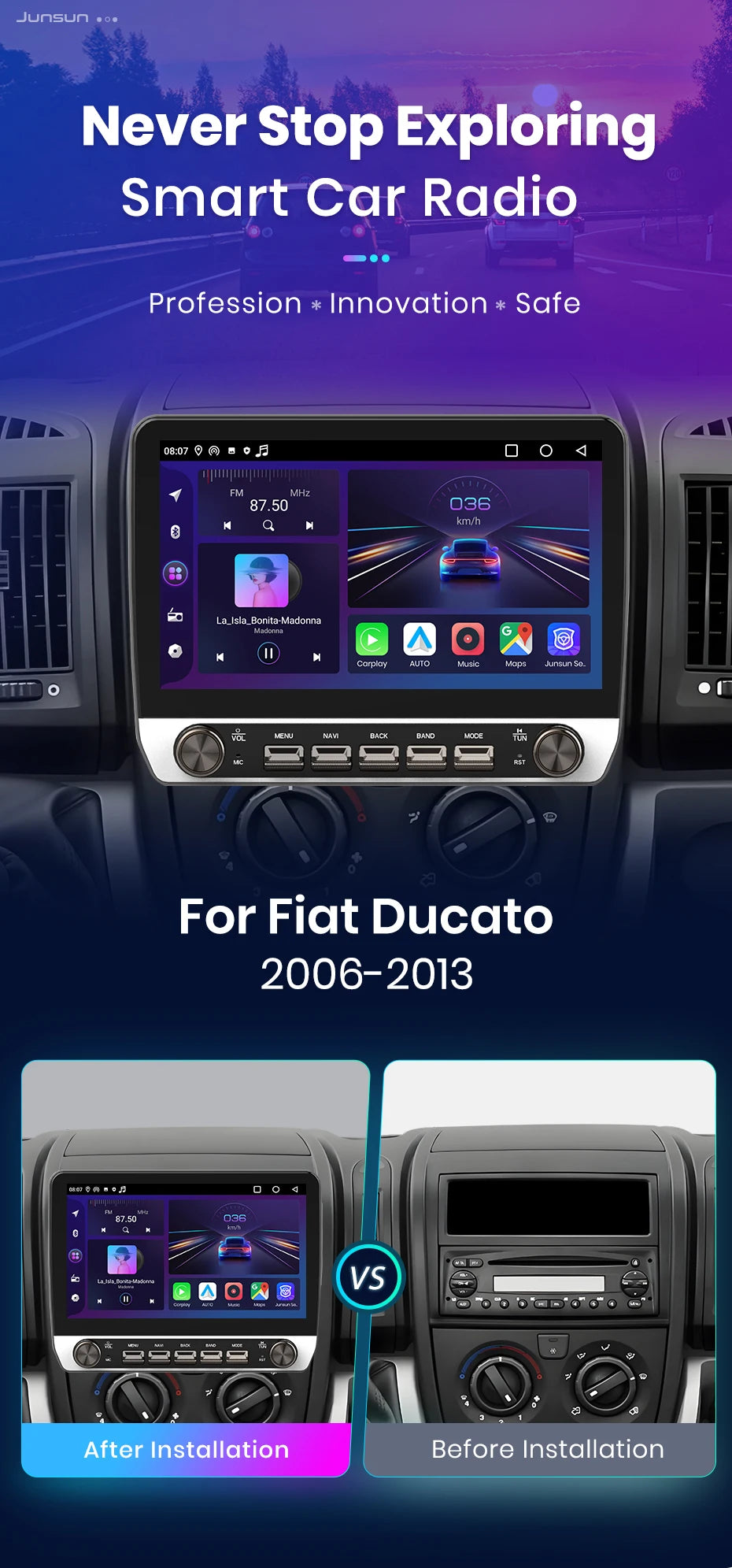 Junsun For Fiat Ducato 2006 2007 2008 -2013 Car Radio Multimedia Navigation 2 din Android 2din Autoradio CarPlay Stereo