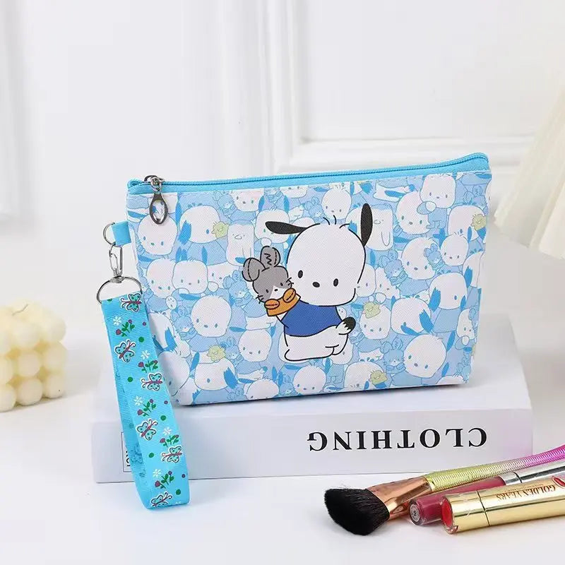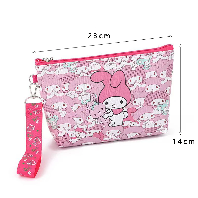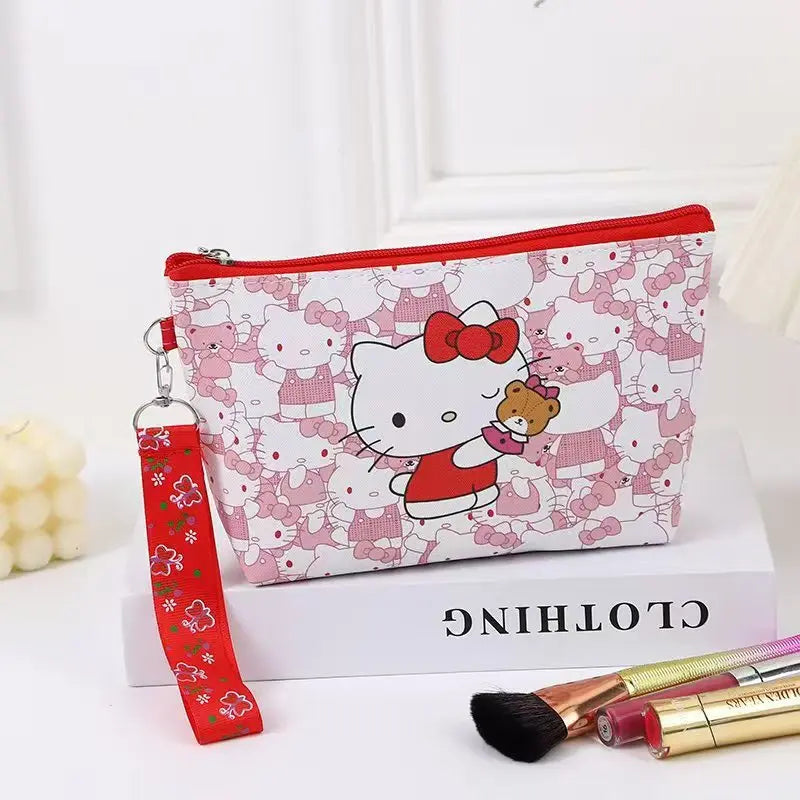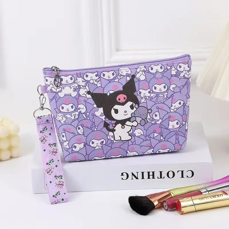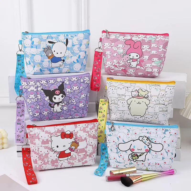 Kawaii Cartoon PU Kuromi HelloKitty Makeup Bag Cute MyMelody Cinnamoroll Large Capacity Handbag Lipstick Storage Bag Girls Gifts