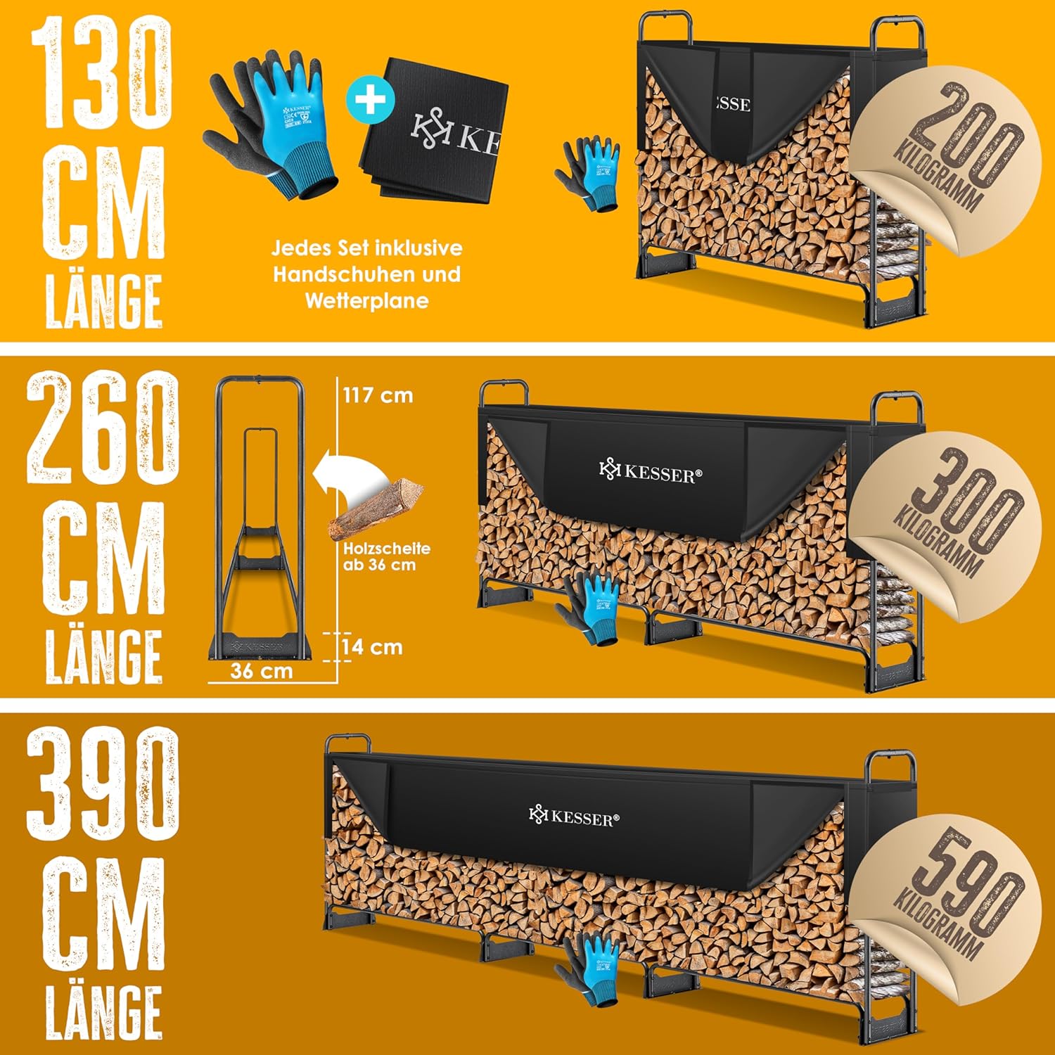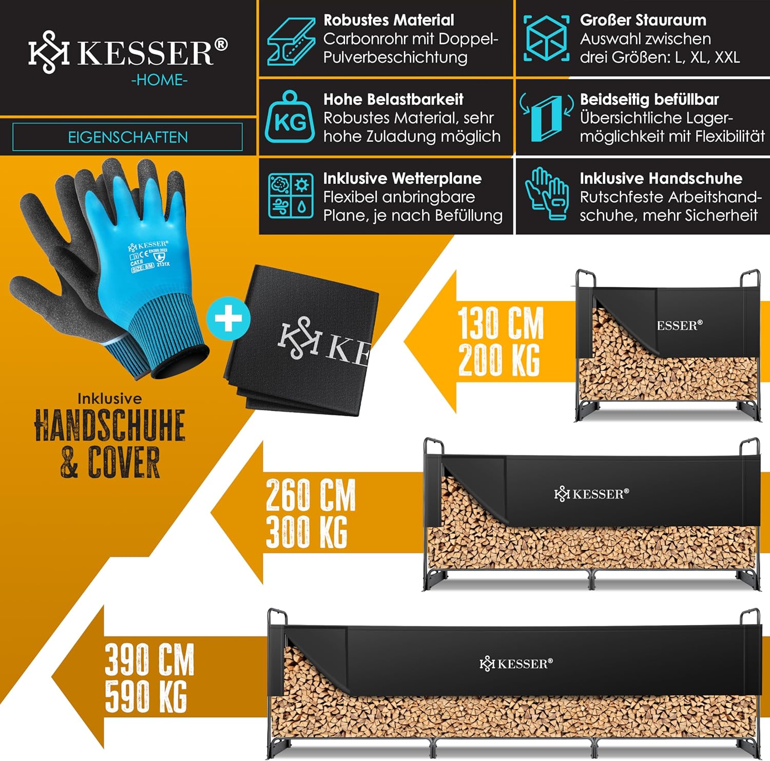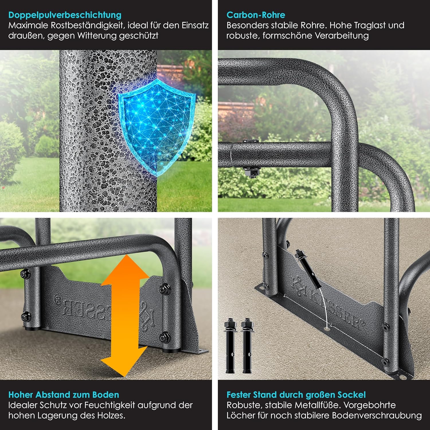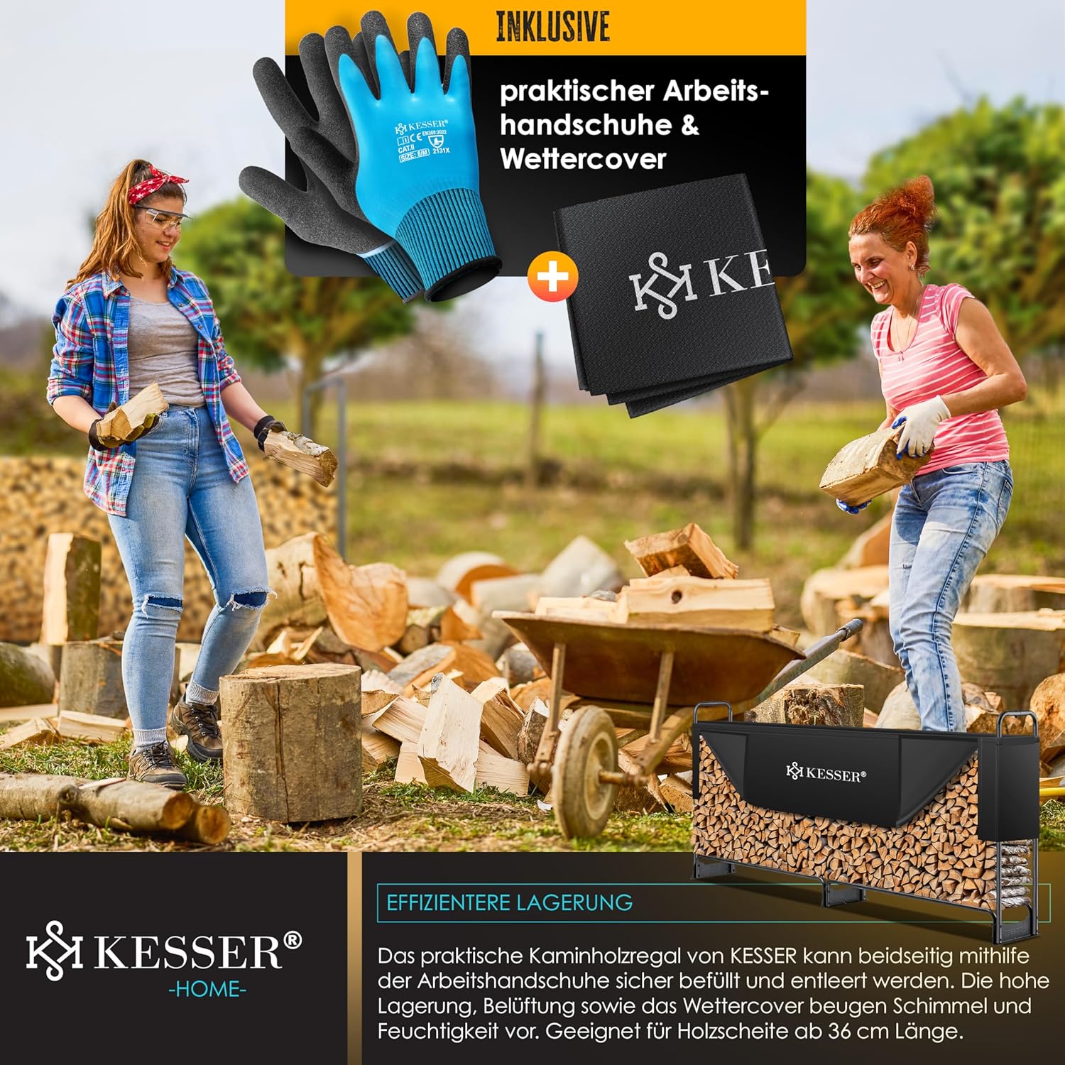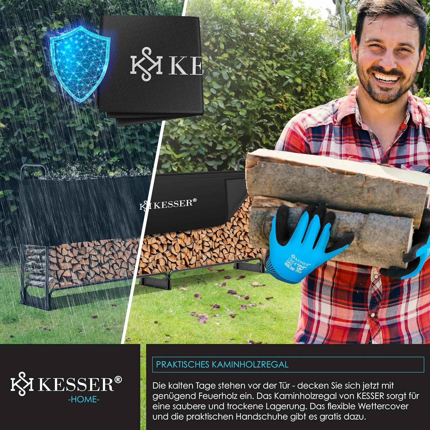 KESSER® Scaffale per legna da ardere in metallo Scaffale per legna da ardere all'esterno con struttura in acciaio + copertura e guanti Scaffale per legna da ardere - 260 x 36 x 117cm