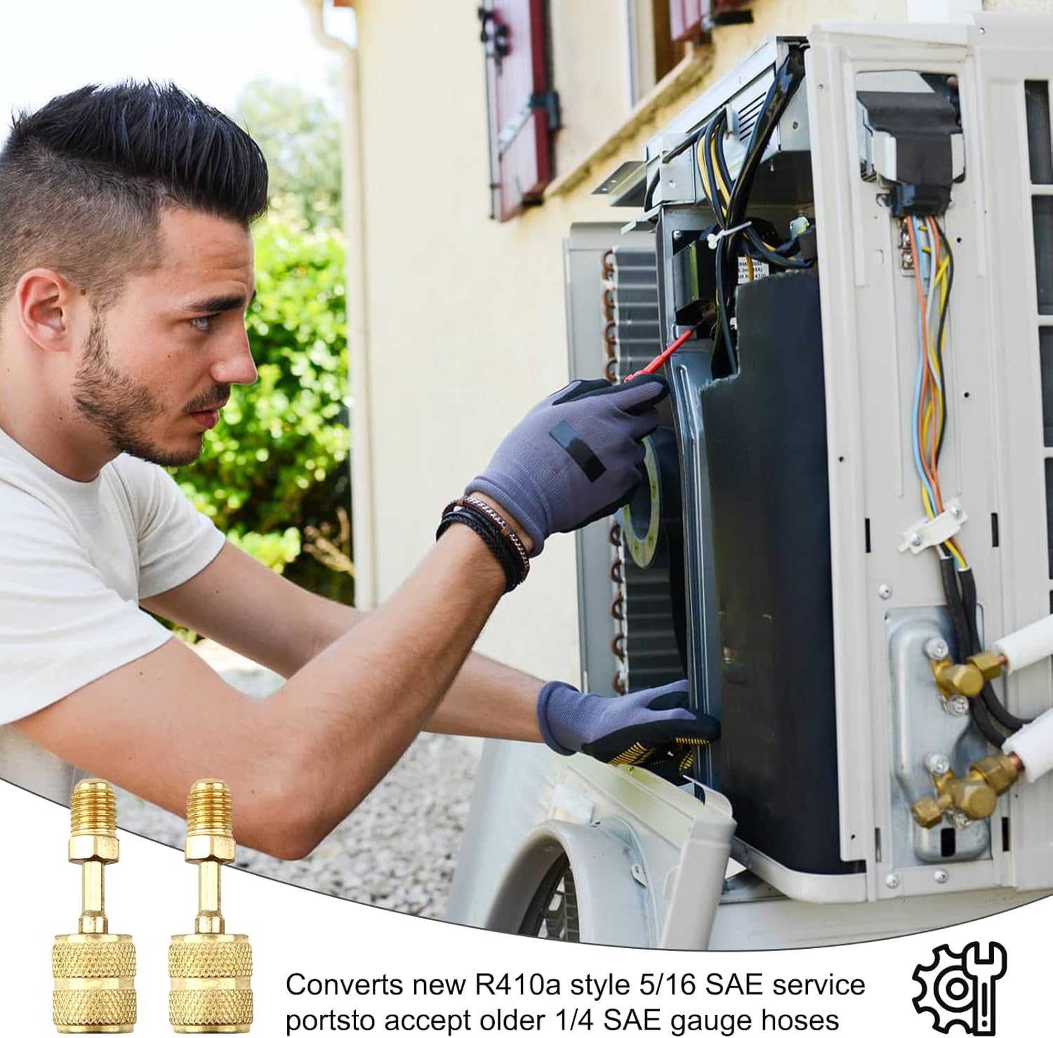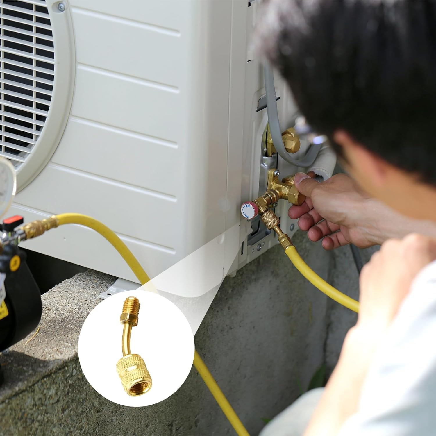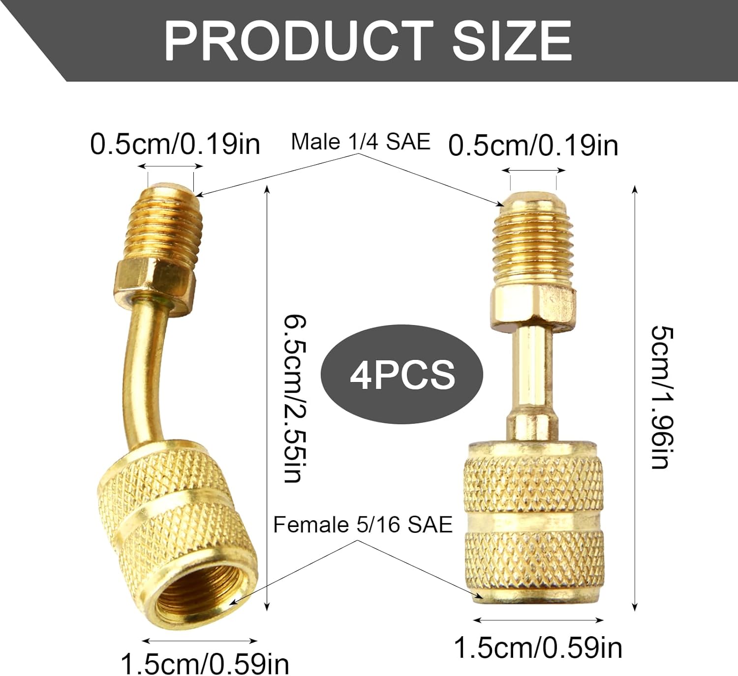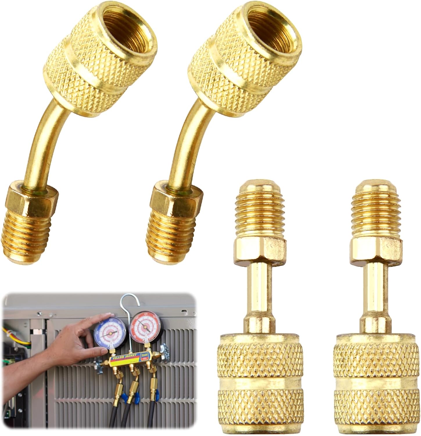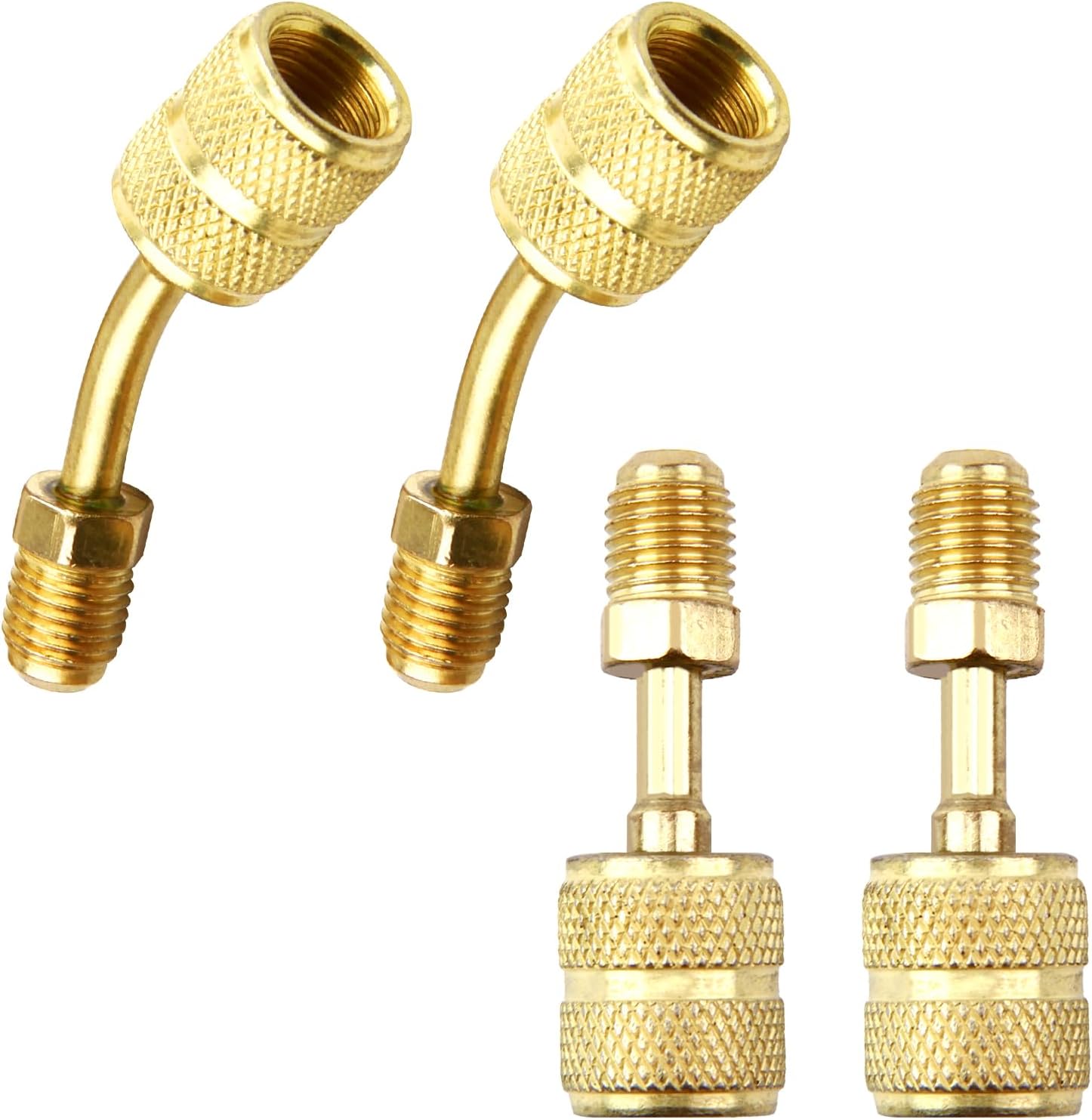 Kit Adattatori R410A 5/16" SAE Femmina a 1/4" SAE Maschio per Condizionatori d'Aria HVAC,R410A Connettore Adattatore, Adattatore R410A per condizionatori, 2 Adattatori Diritti + 2 Adattatori Angolati