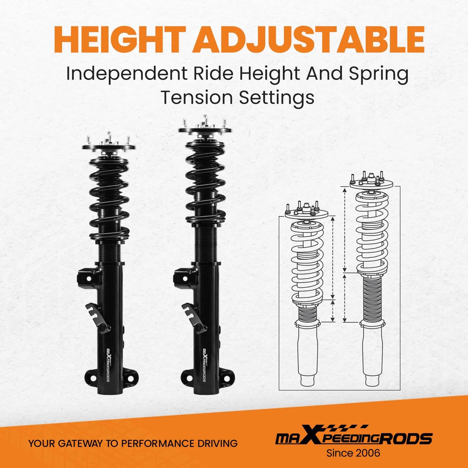 4. Separate height adjustment does not affect damper stroke