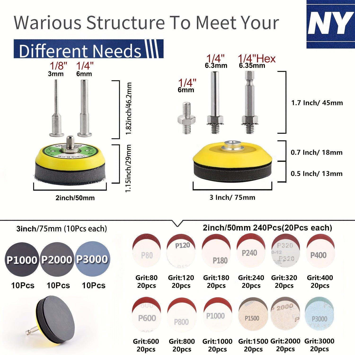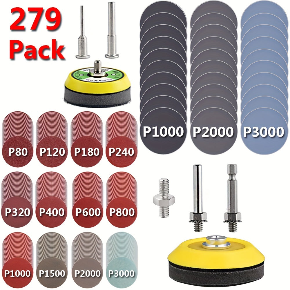 Kit di 279 pezzi di Dischi Abrasivi Versatili da 2/3 pollici per Trapano, Levigatrice e Attacchi per Utensili Rotanti con 2 Piastre di Supporto da 1/8" e 1/4", Pad Abrasivi con Grana da 80-3000