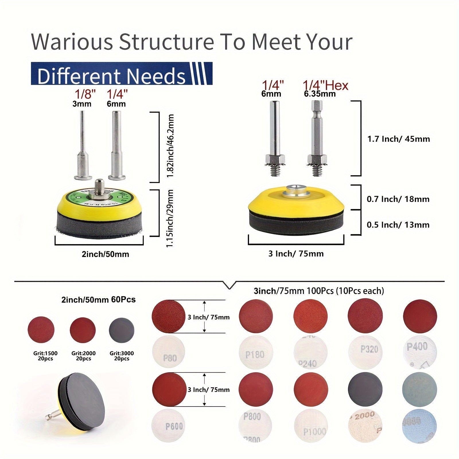 Kit di Levigatura Definitivo da 169 Pezzi - Dischi Durevoli con 2 & 3 Pastiglie di Riserva per Trapano, Smerigliatrice & Utensili Rotanti - Perfetto per Lucidatura di Stampi, Lavorazione del Legno & Metallo - Gamma di Grana da P80 a 3000; Kit Varietà di D