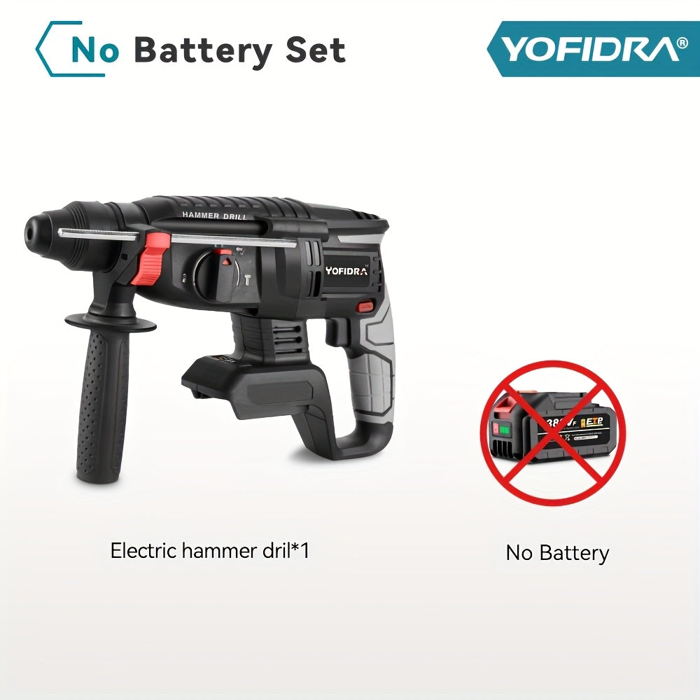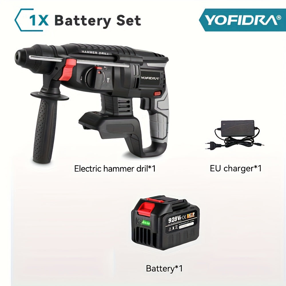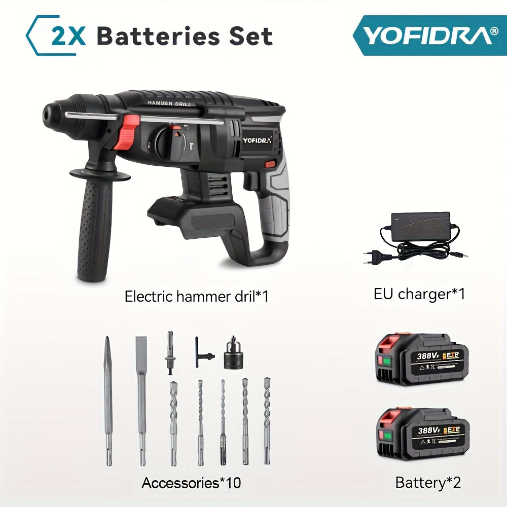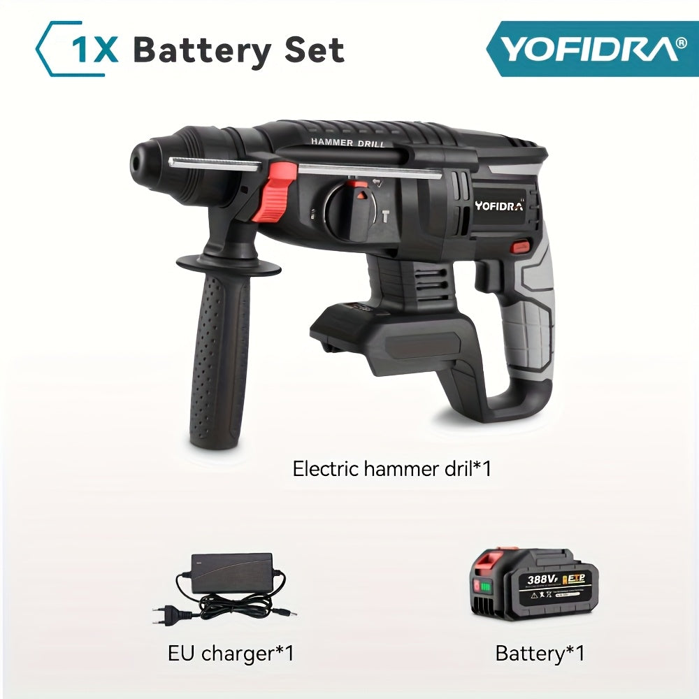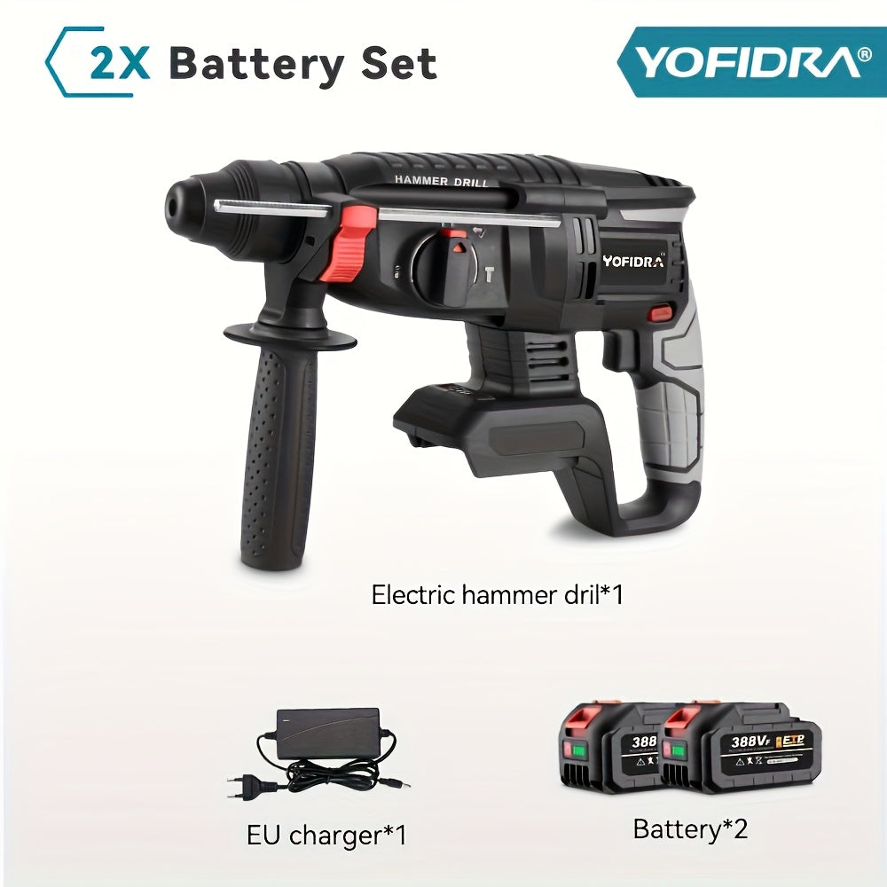 Kit Martello Senza Spazzole, Trapano a Percussione Senza Filo con Ricarica 4 Velocità, Adatto per Calcestruzzo, Acciaio e Legno, Batteria YOFIDRA