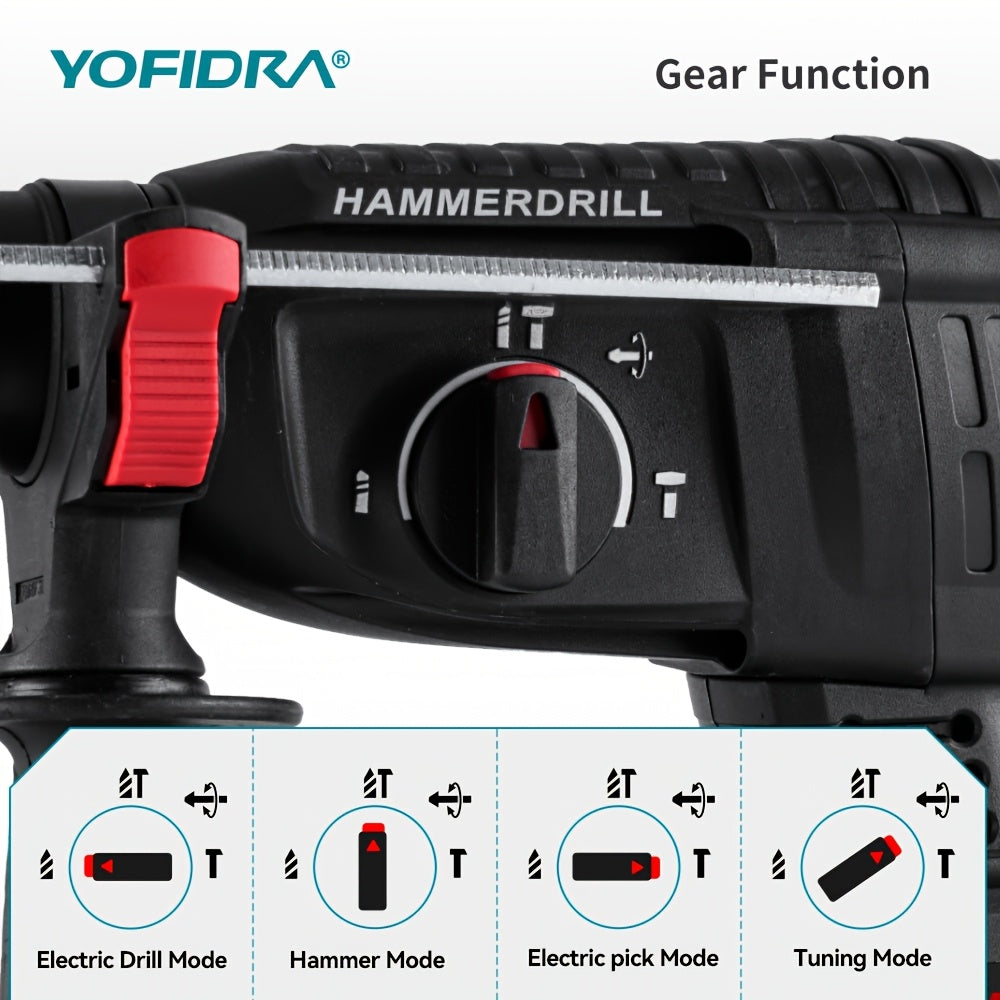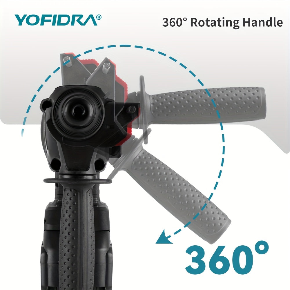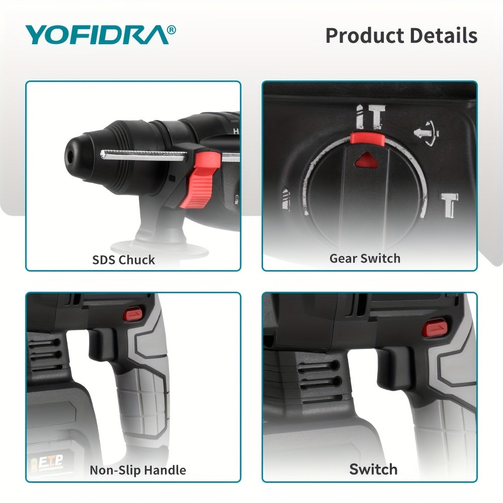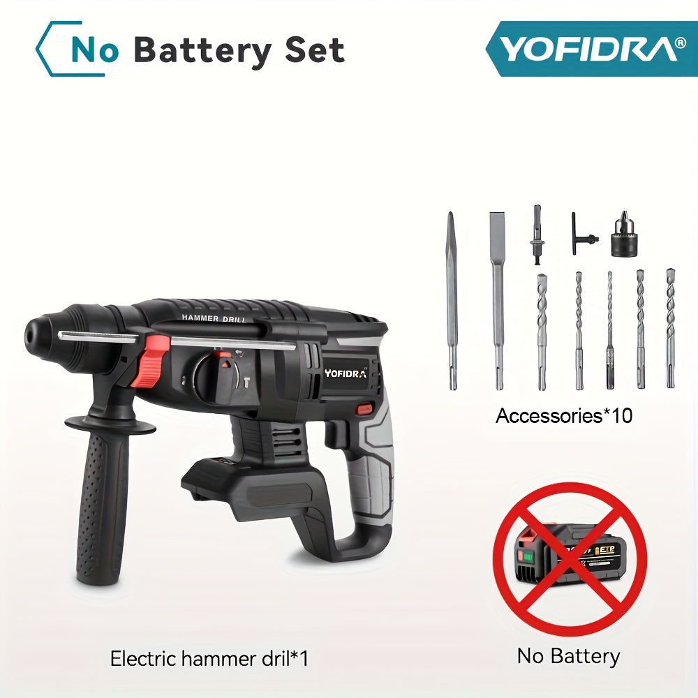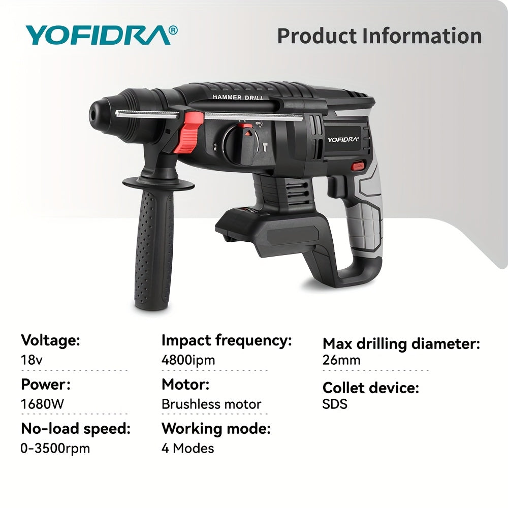 Kit Martello Senza Spazzole, Trapano a Percussione Senza Filo con Ricarica 4 Velocità, Adatto per Calcestruzzo, Acciaio e Legno, Batteria YOFIDRA
