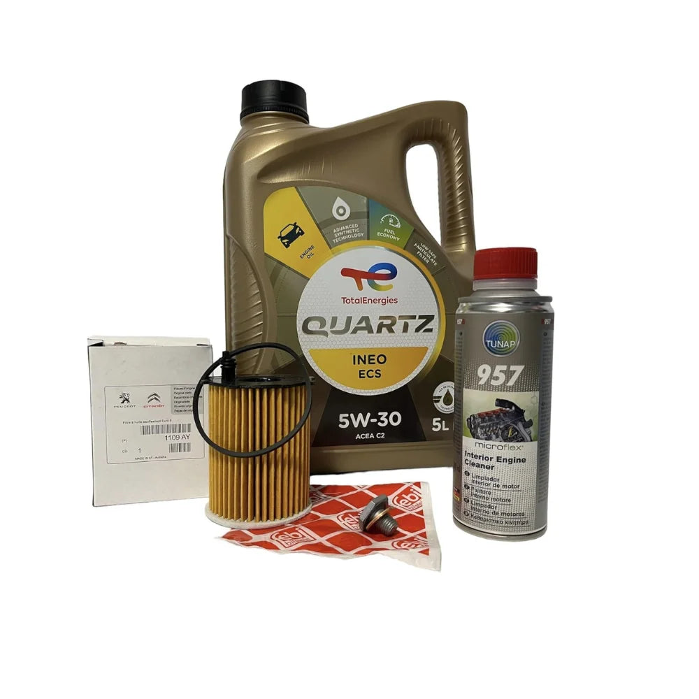 Kit olio per auto al quarzo Ineo ECS 5 w30 con filtro originale per motore 1.6HDi e detergente motore Tunap 957