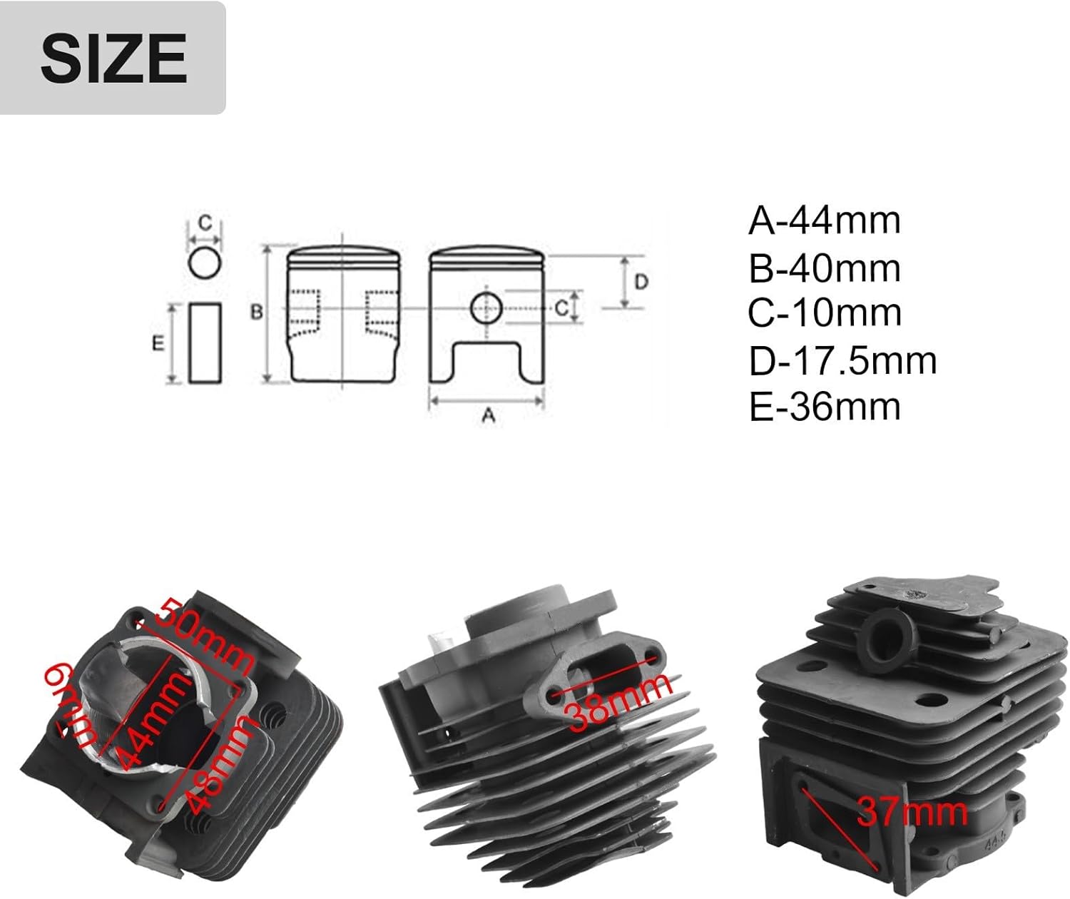 Kit pistone cilindro 2 pezzi, parti di ricambio per falciatrice, con perno ad anelli, per decespugliatore MFS52/MS2TL52, 44MM 1E44F-5 44F-5 44-5 BG520 CG520