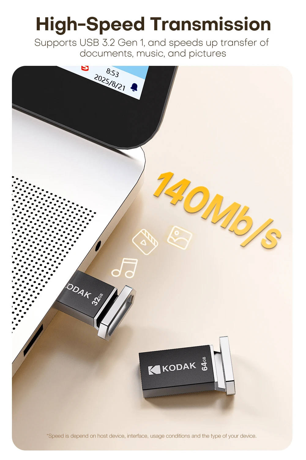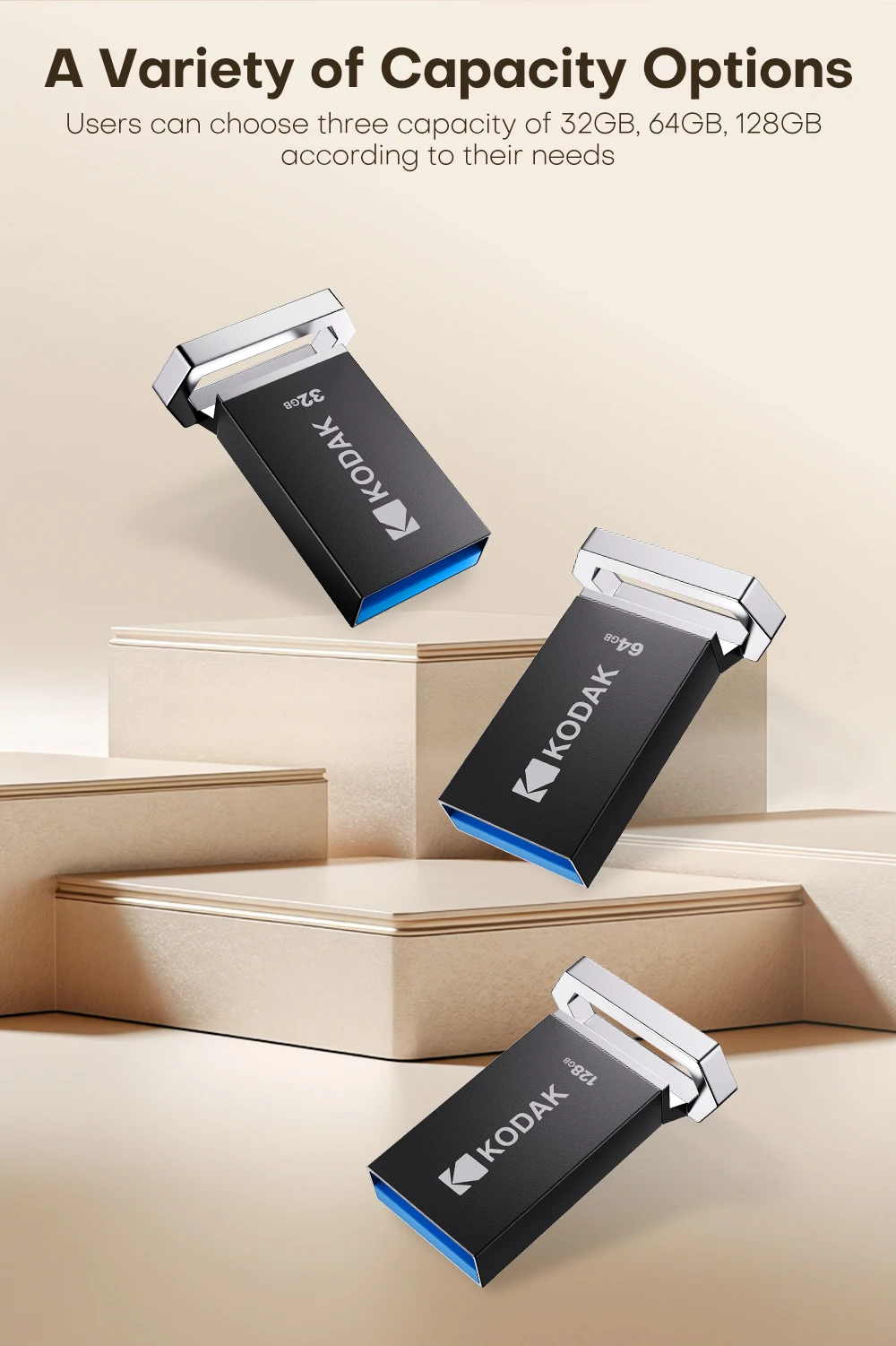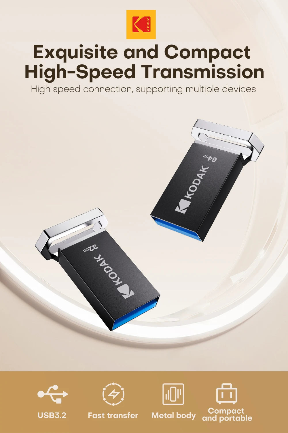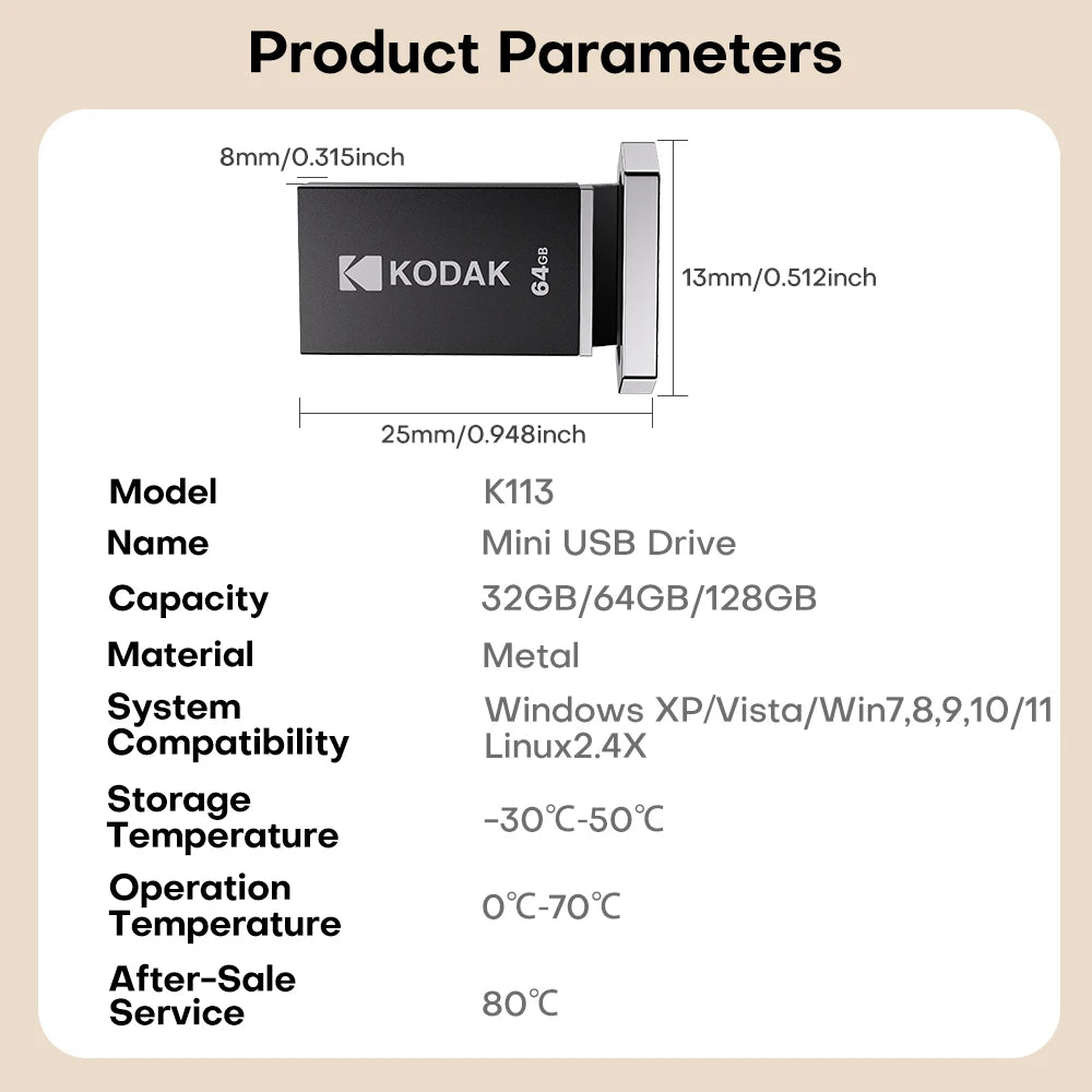 KODAK 128GB Mini USB Flash Drive USB3.2 Pen Memory Drive ad alta velocità 140MB/s 32GB 64GB UDisk Memoria portatile per PC per auto