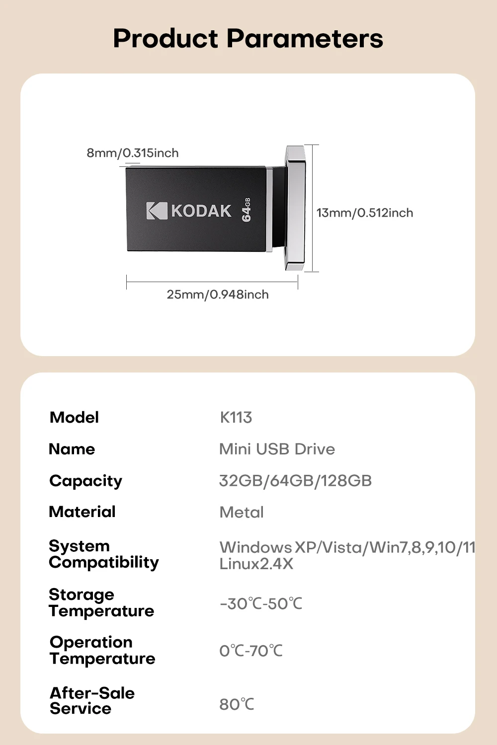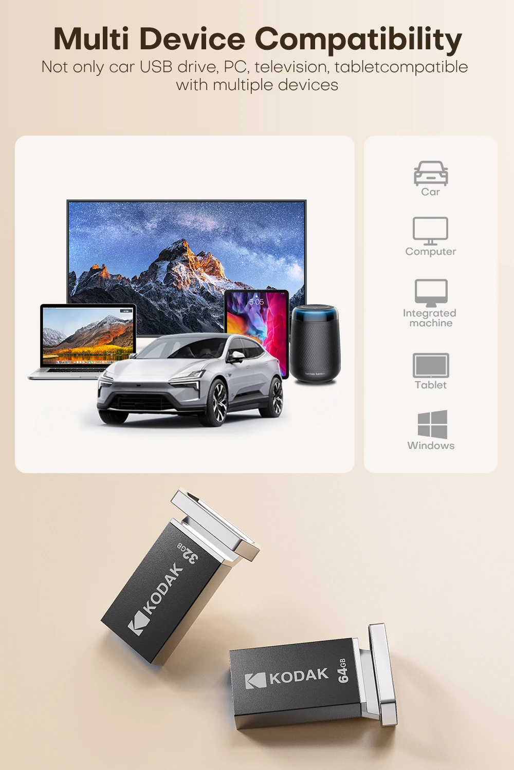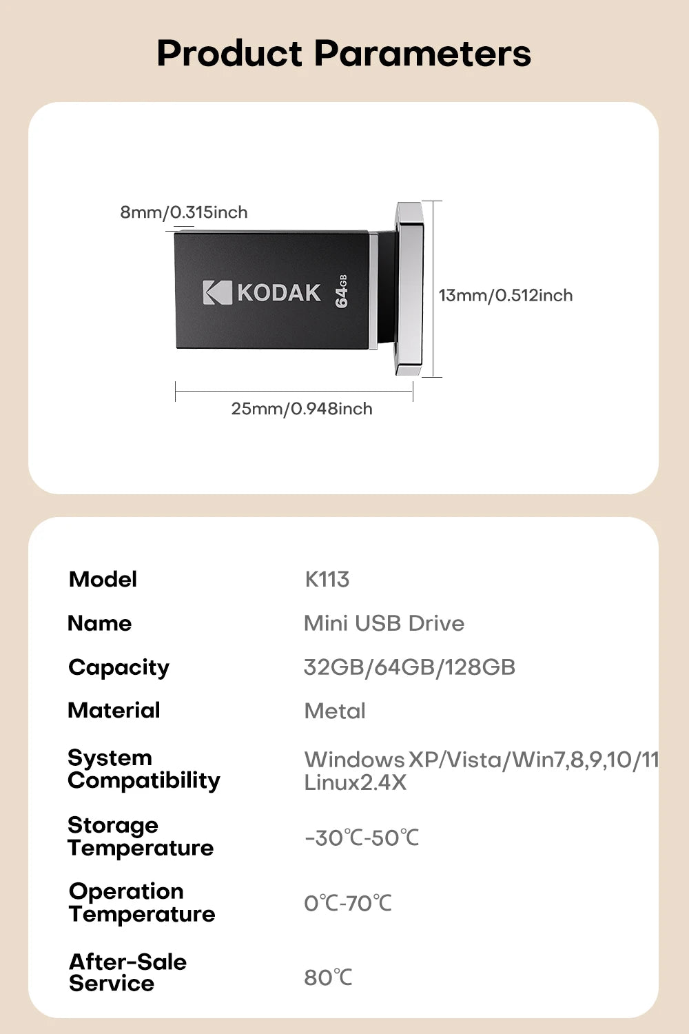 KODAK 128GB Mini USB Flash Drive USB3.2 Pen Memory Drive ad alta velocità 140MB/s 32GB 64GB UDisk Memoria portatile per PC per auto