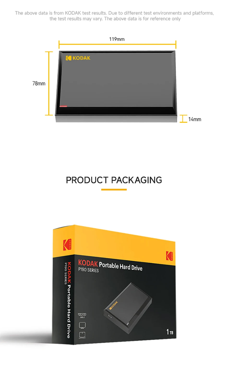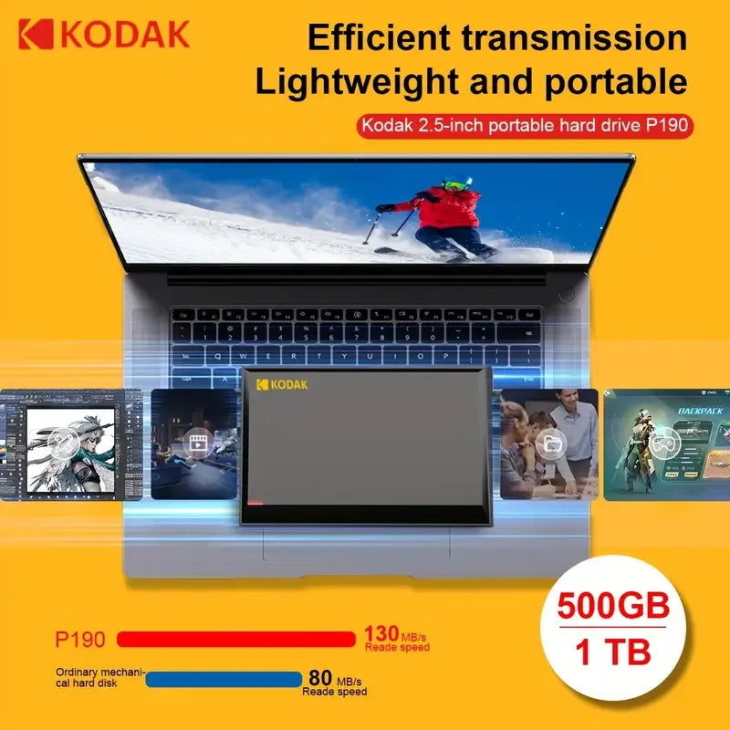 KODAK 2.5 "HDD 2TB SSD esterno portatile 1TB 500GB disco rigido 5Gbps USB3.0 HDD ad alta velocità per negozio di file di grandi dimensioni laptop desktop