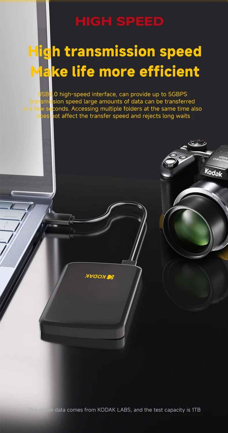 Kodak Disco rigido esterno portatile da 2,5 pollici PHDD 500 GB/1 TB USB 3.0 per PS5 Xbox PC Mac Desktop MacBook