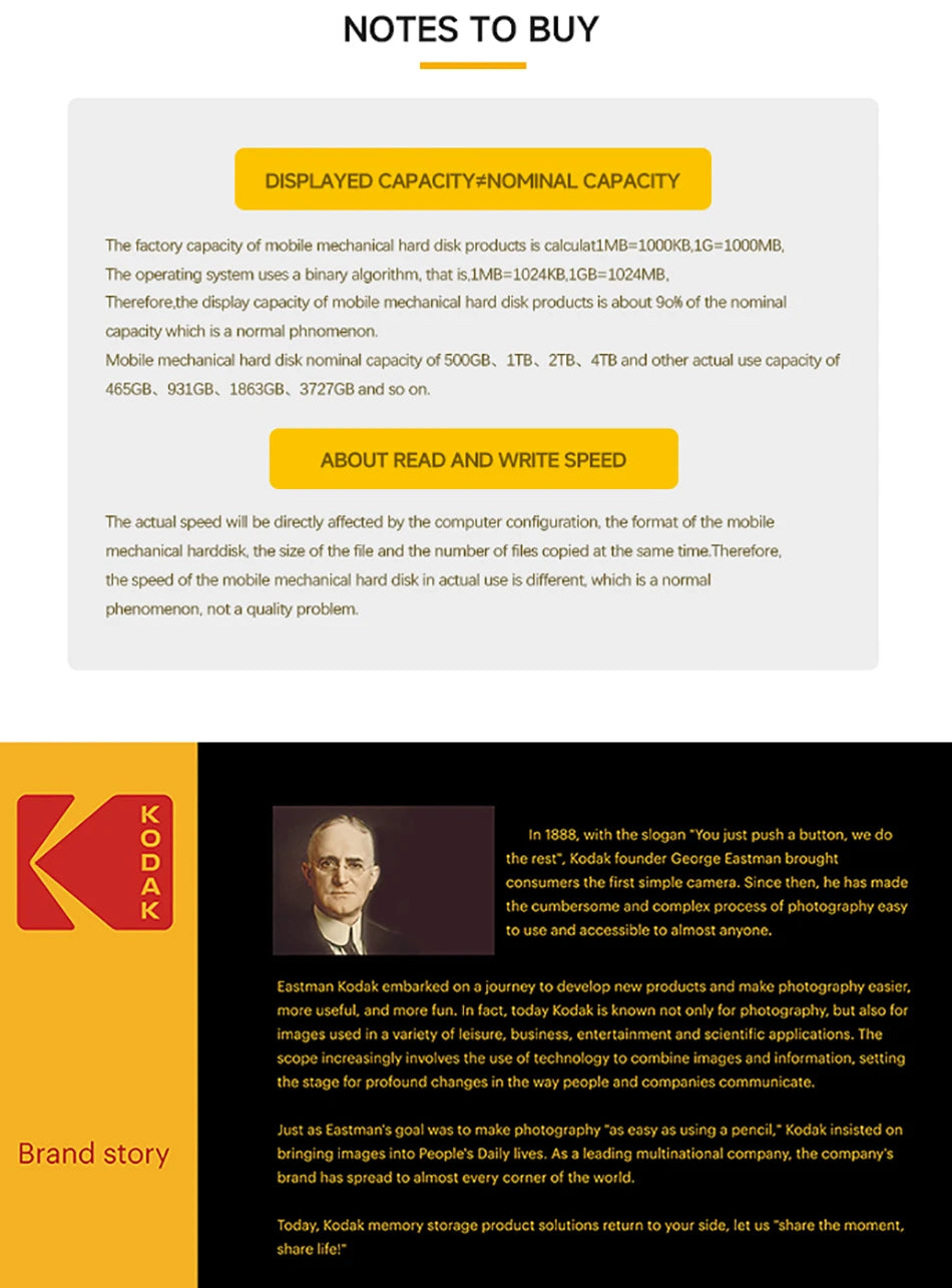 KODAK HDD portatile Disco rigido esterno da 1 TB 5 Gbps HDD da gioco portatile ad alta velocità 120 MB/s 2 TB per PS4/PS3/PS2/PS1/Switch