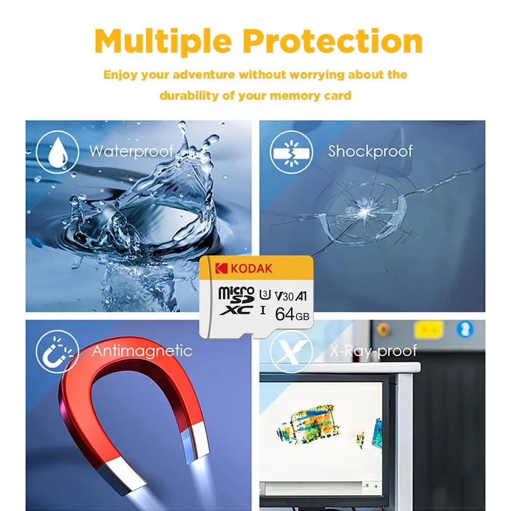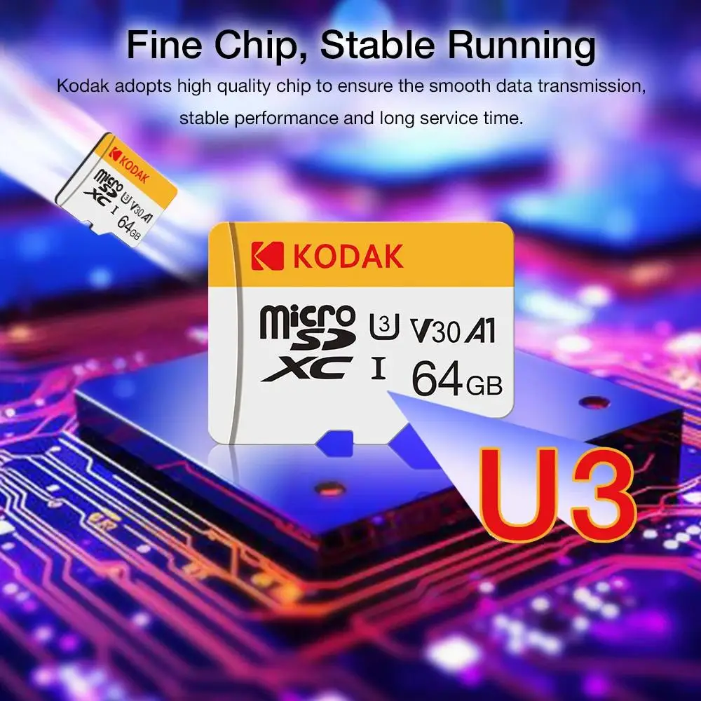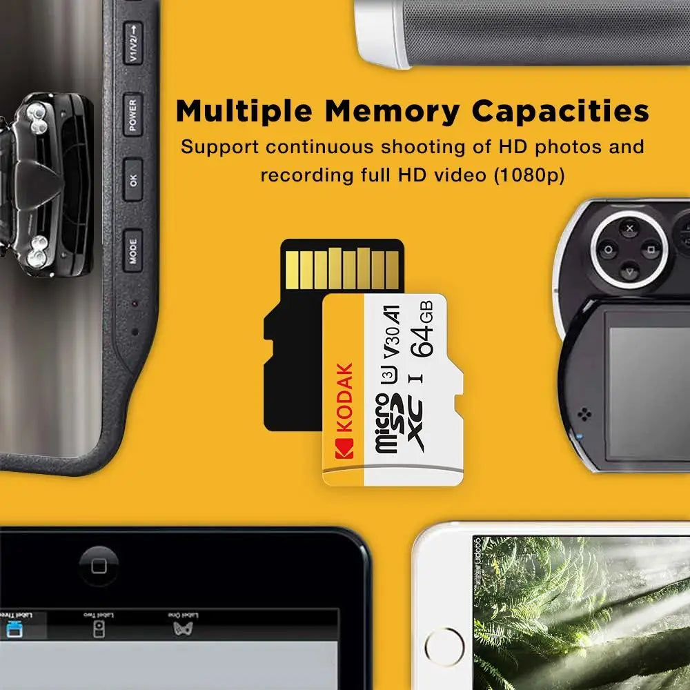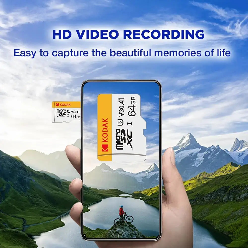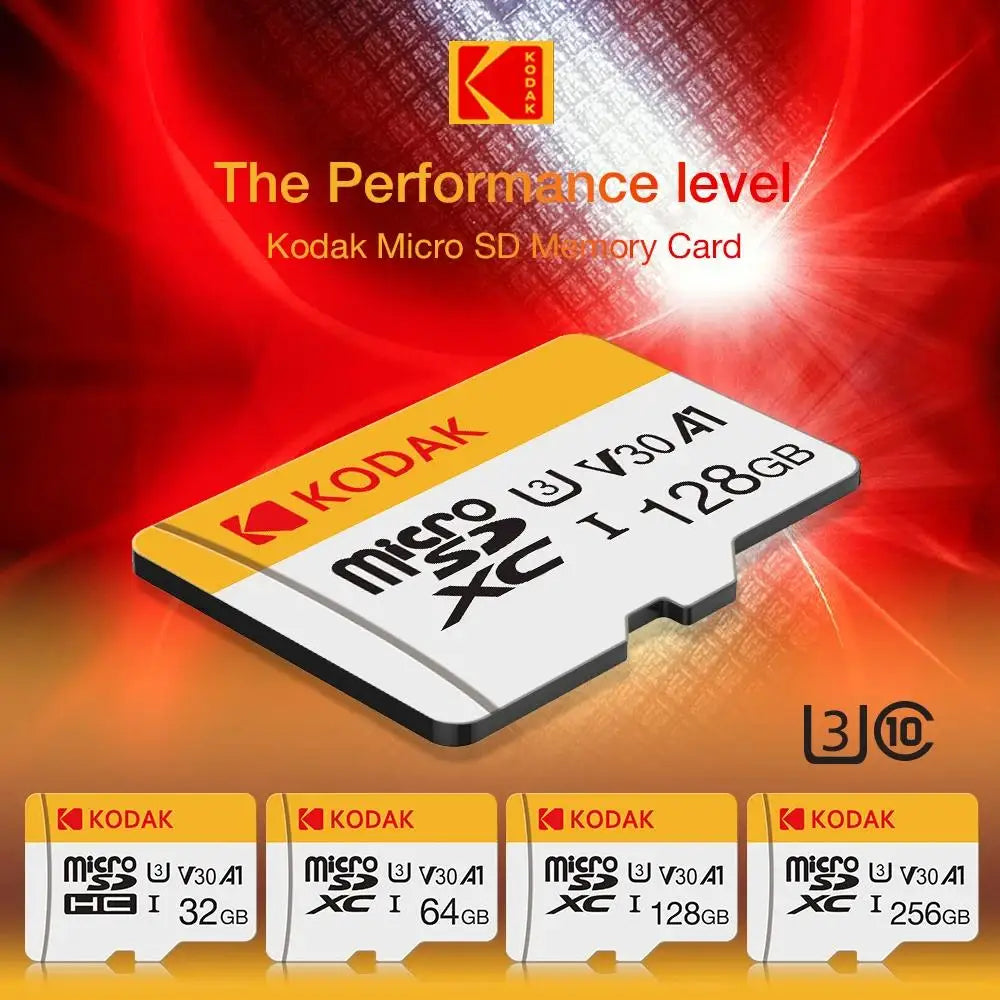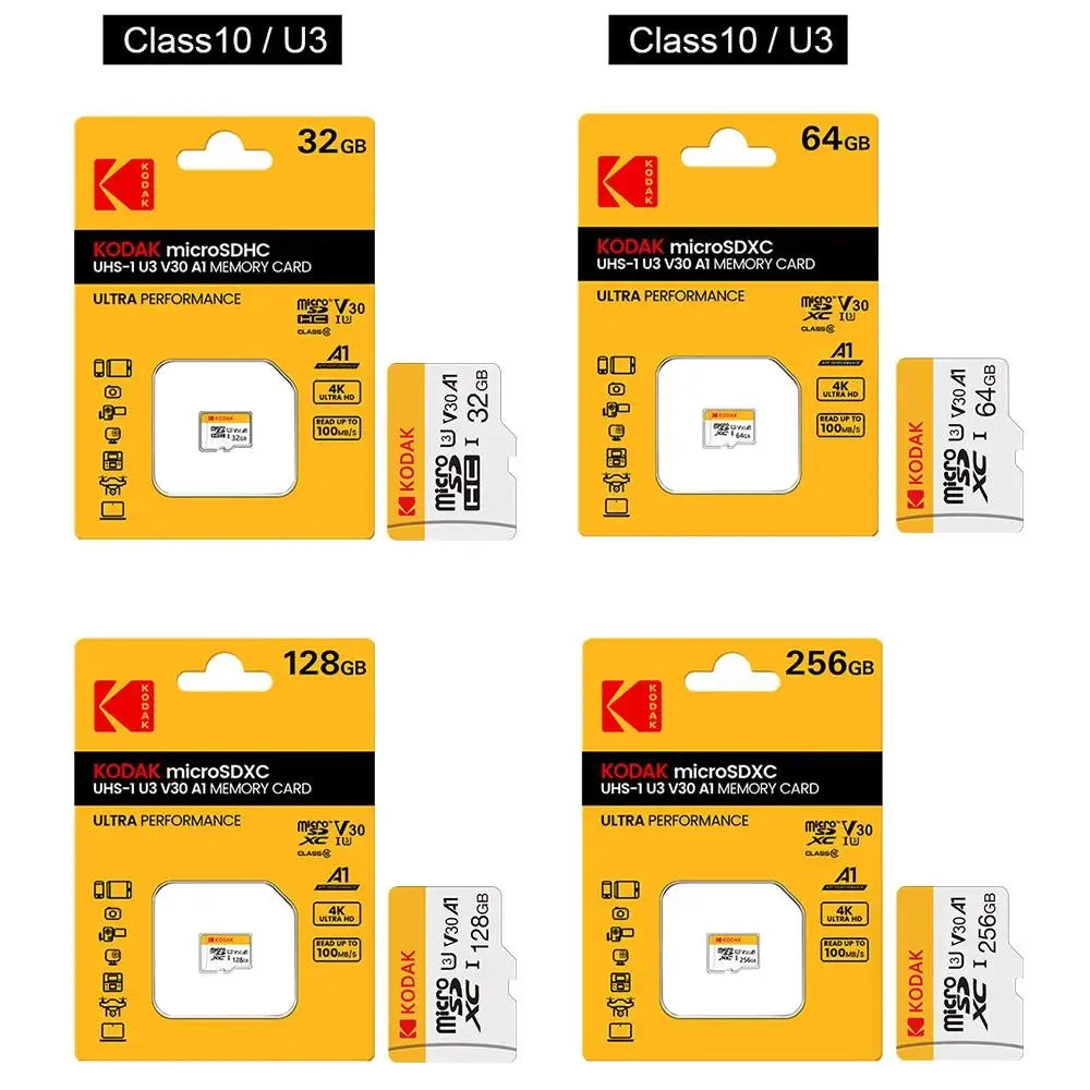KODAK Micro SD TFcard 256GB 64GB 32GB Scheda di memoria 128GB Classe 10 Scheda SD Microsd 100MB/S UHS-I Scheda A1 per telefono/PC
