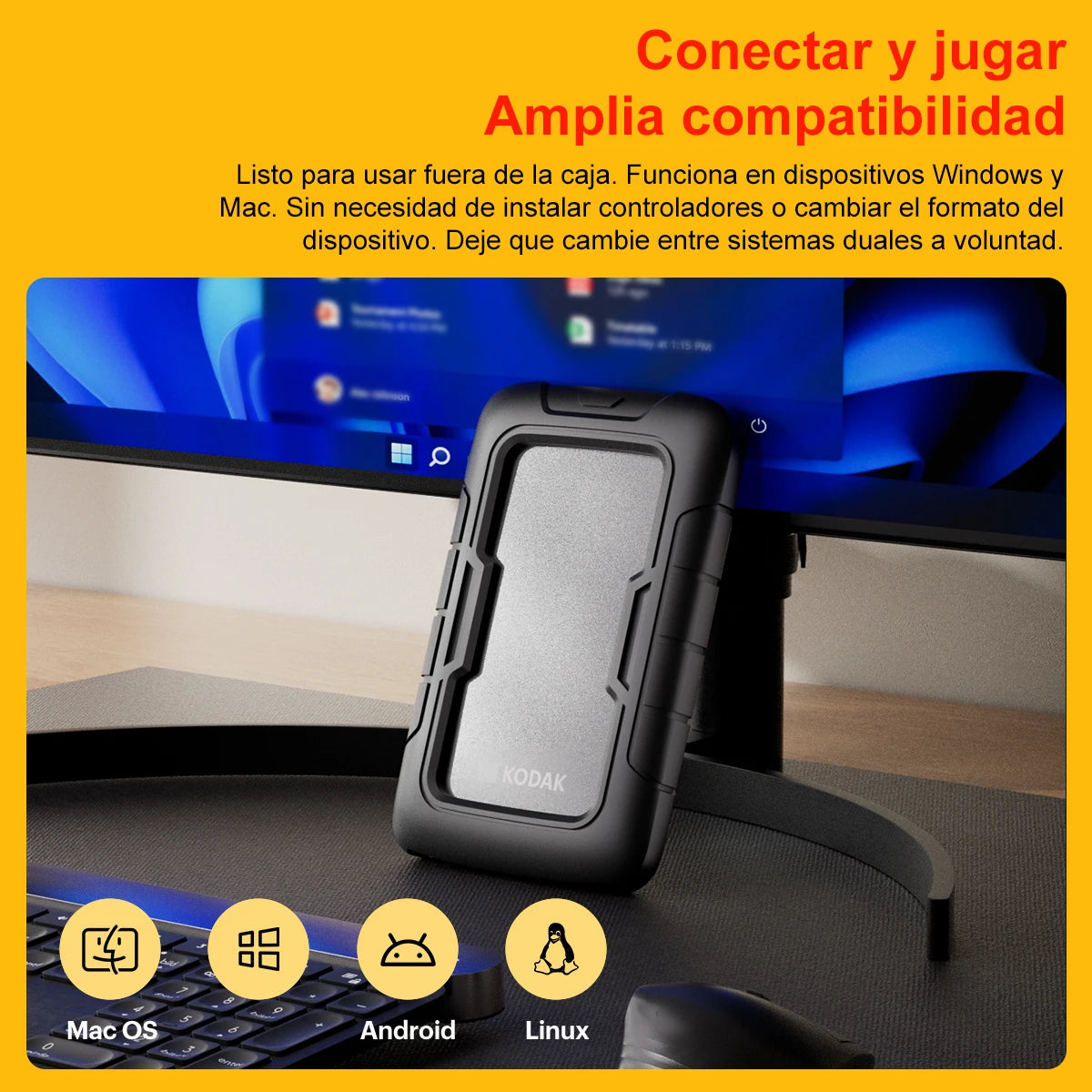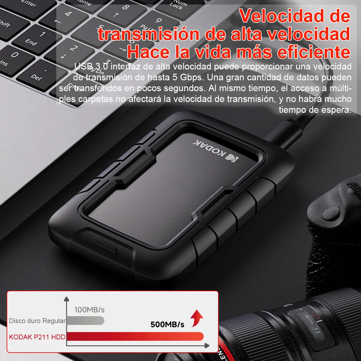 KODAK P110 Disco rigido da 2,5" PHDD 2TB/500GB/1TB Viene fornito con una custodia protettiva in silicone spesso HDD USB3.0 compatibile con PS5 PS4
