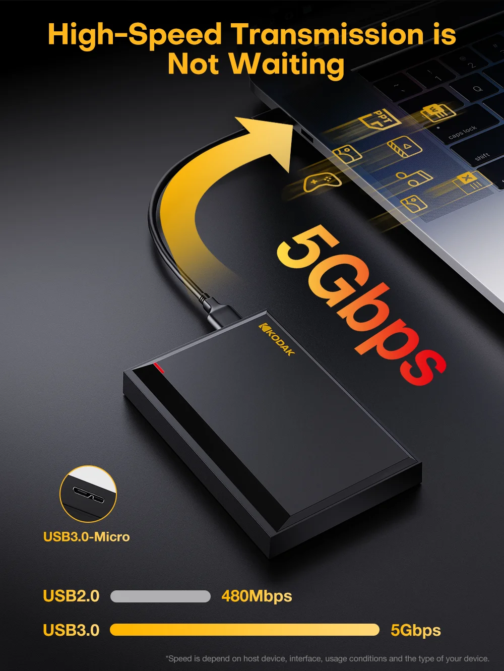 L'interfaccia USB 3.0 ad alta velocità può fornire una velocità di trasferimento fino a 5 Gbps