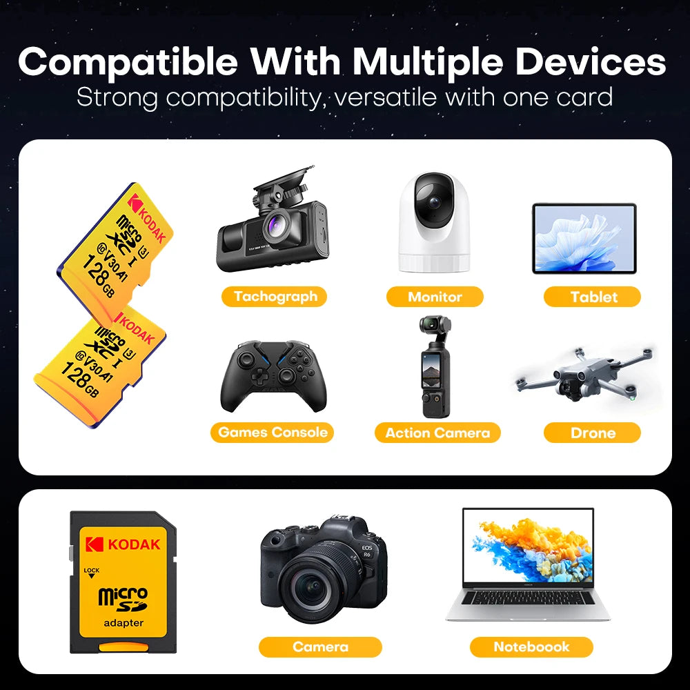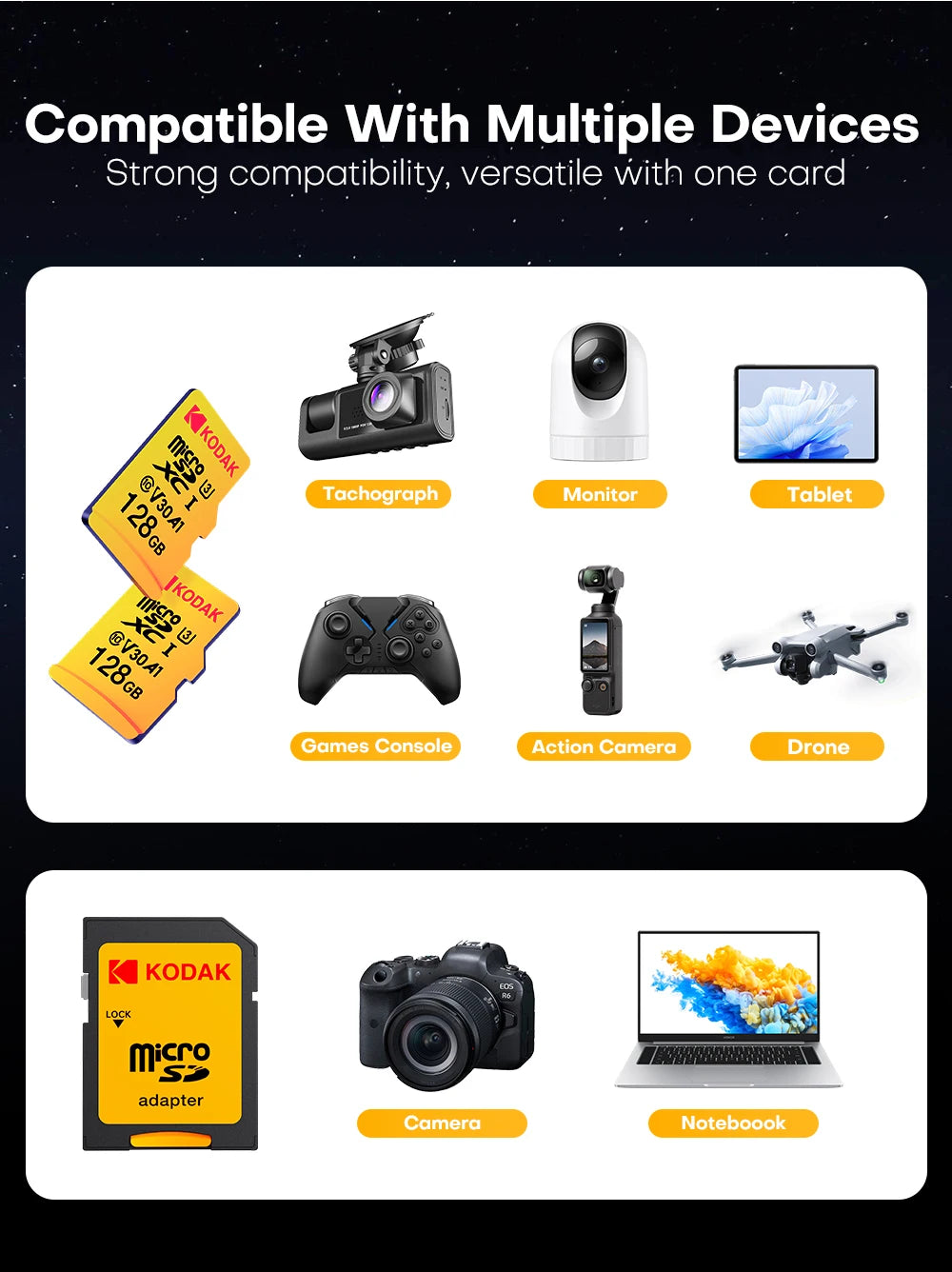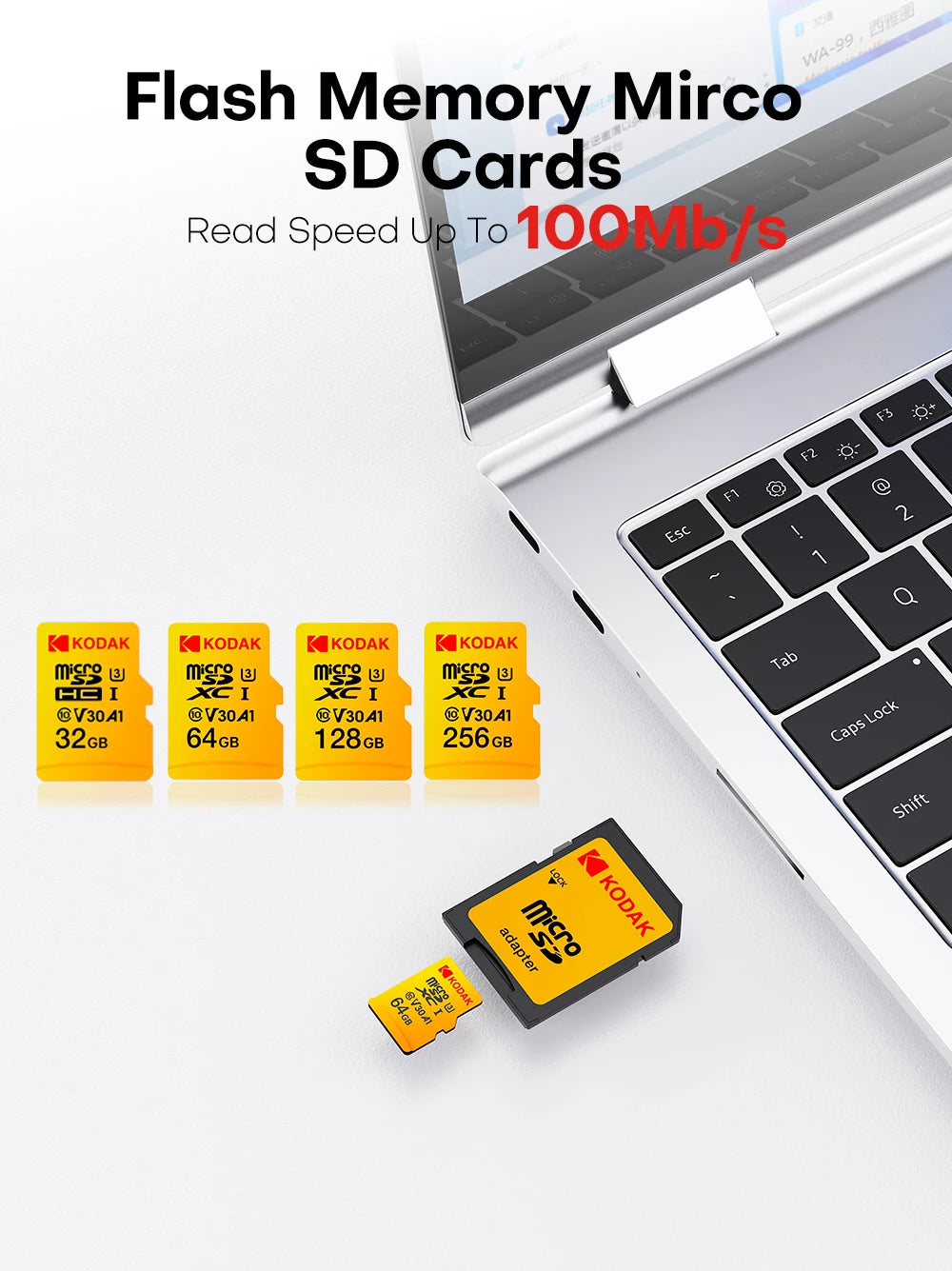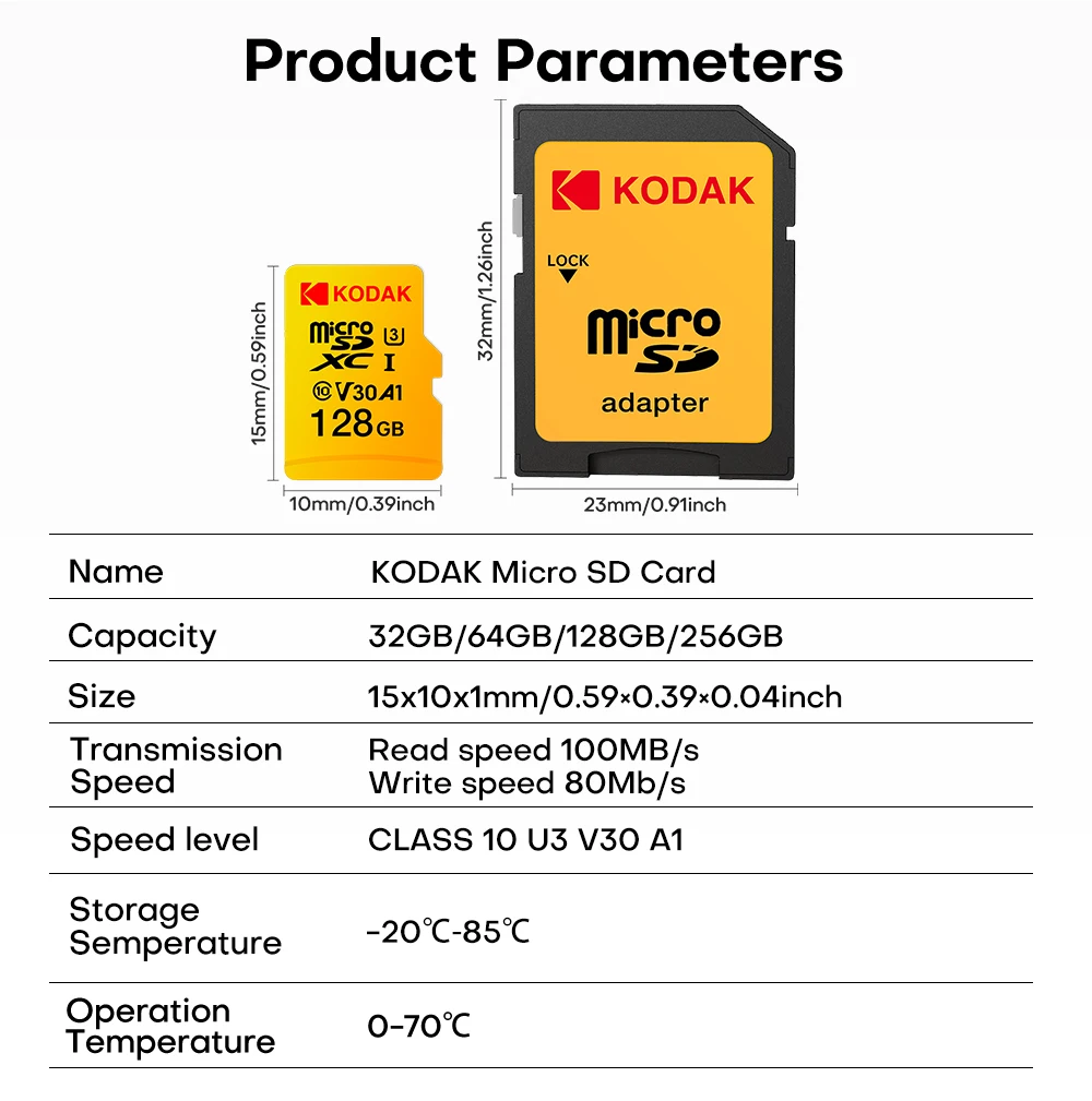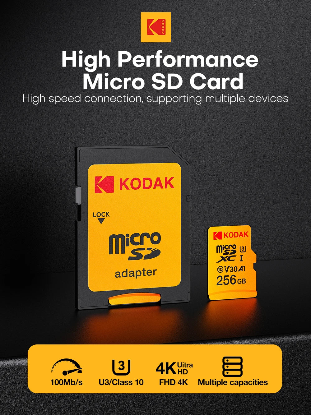 ● 32 GB/64 GB/128 GB/256 GB Velocità di lettura U3: 70-100 MB/s, Velocità di scrittura: 15 - 30 MB/s