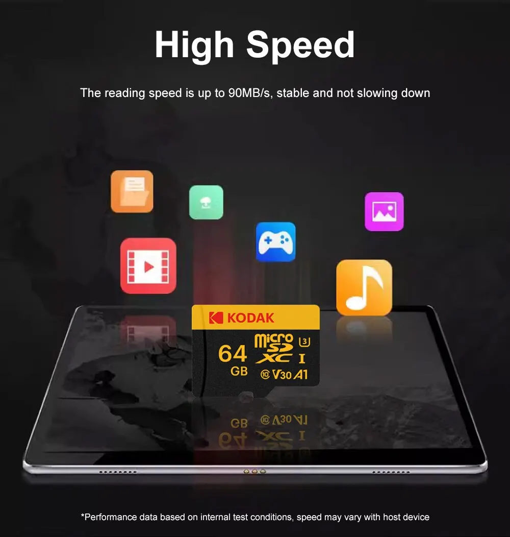 KODAK Scheda di memoria Registratore di guida 32GB 64GB Scheda di memoria Micro SD per telefono cellulare PC Auricolare Altoparlante Telecamera HD Interruttore di gioco