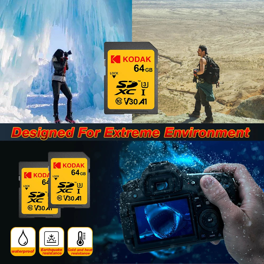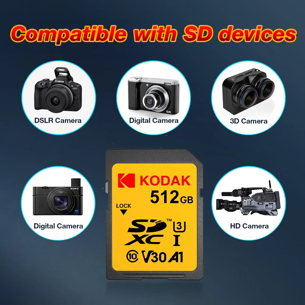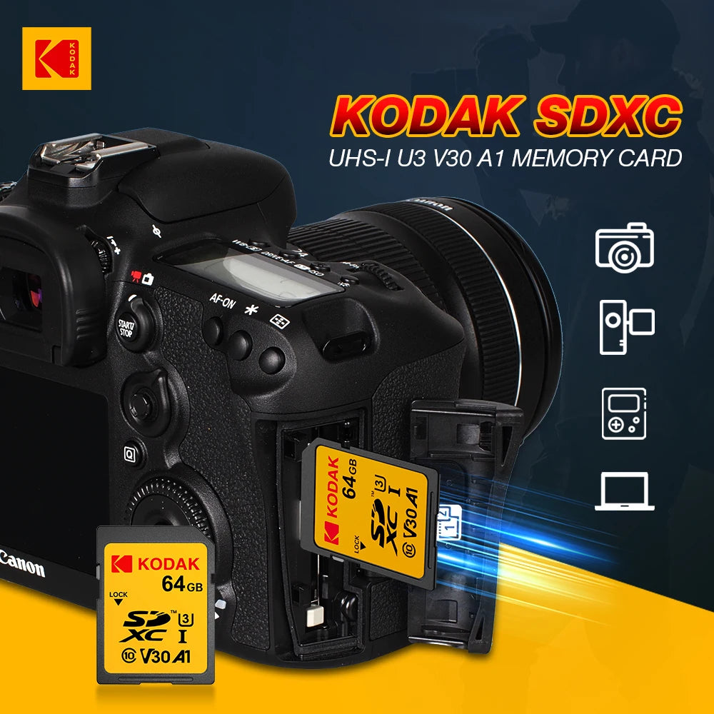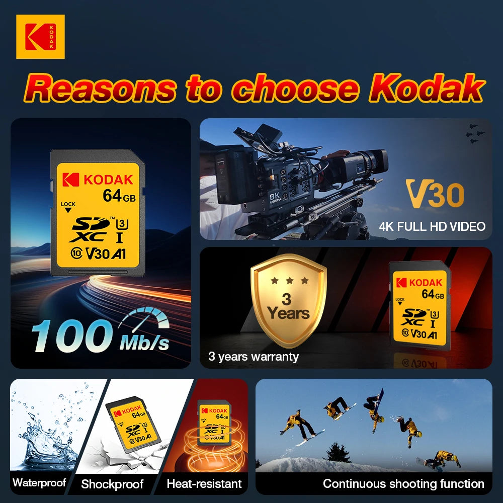 KODAK Scheda SD originale ad alta velocità 256G 128G 64G 32G Scheda di memoria SD SDXC V30 per fotocamera 4K HD per auto DV SLR