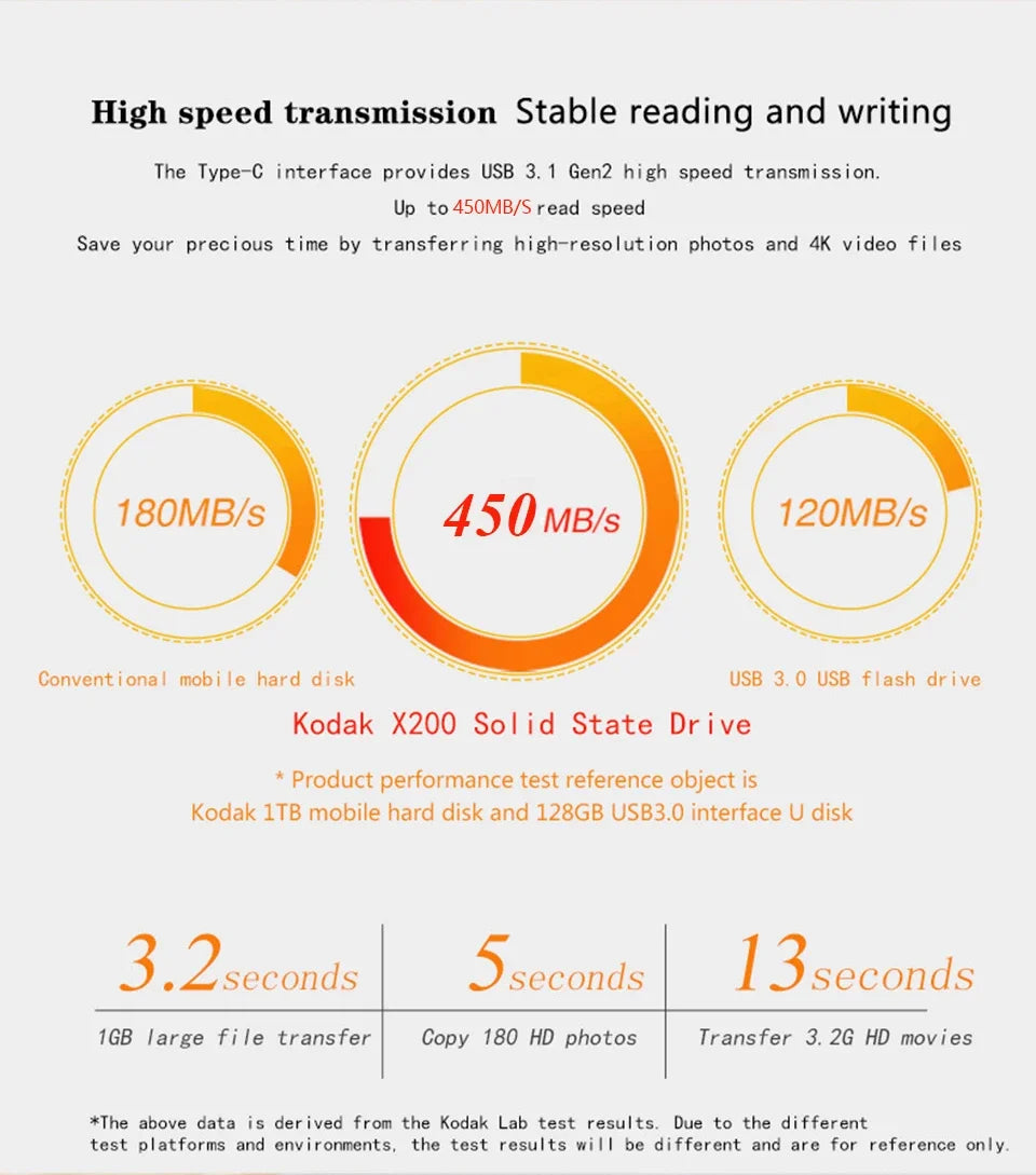 Kodak SSD 1TB X200 SSD portatile USB 3.1 Tipo C Disco rigido esterno 512GB 256GB Unità a stato solido per PS4 Laptop MacBook PC