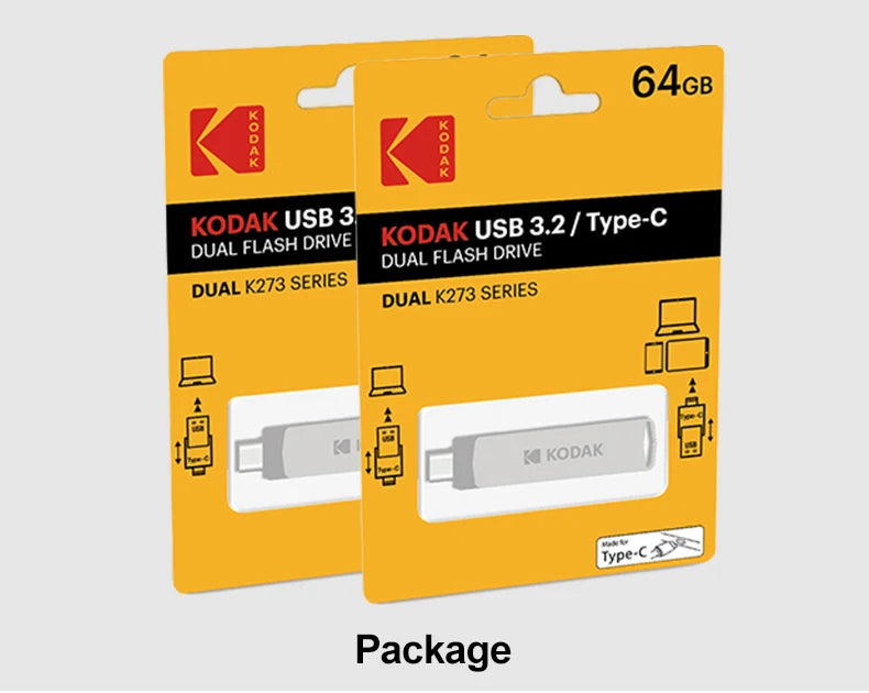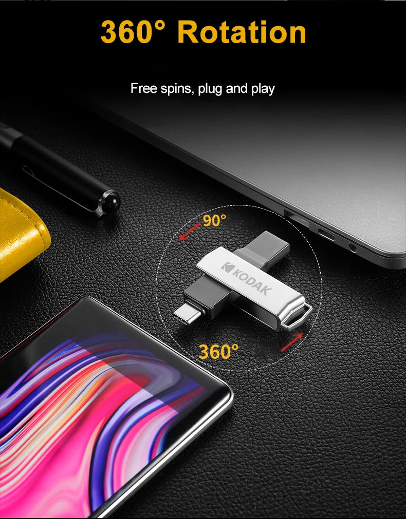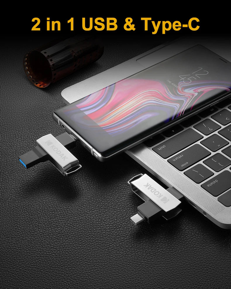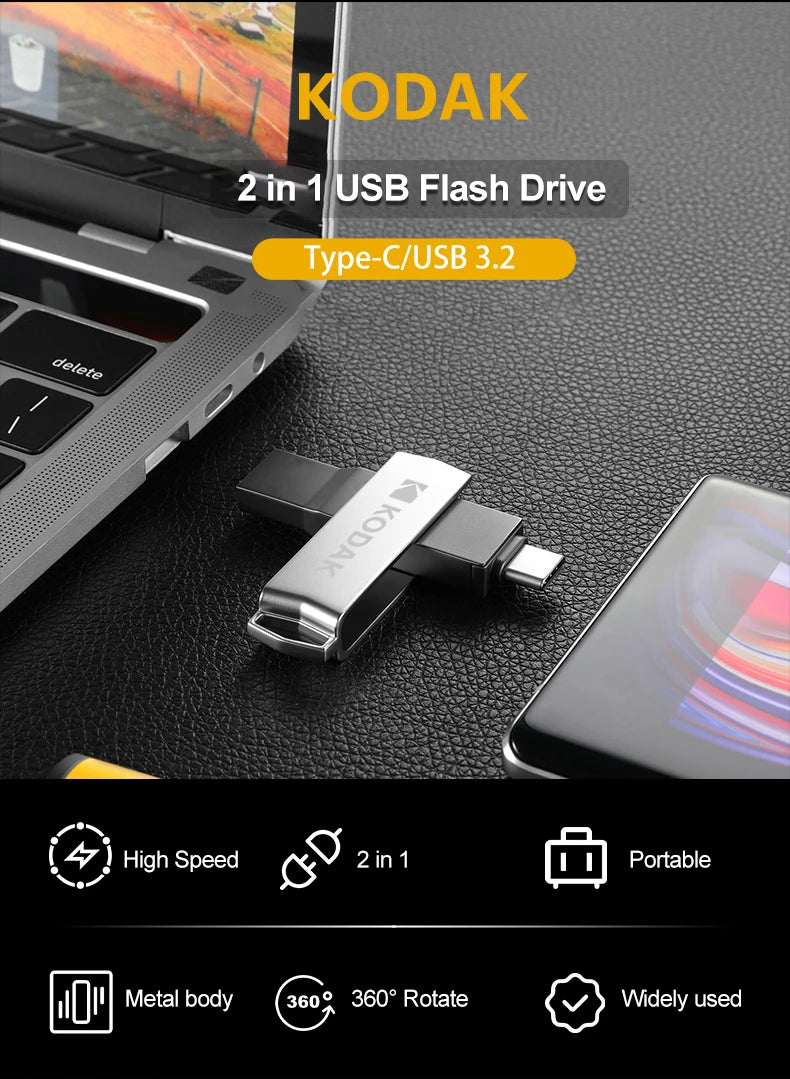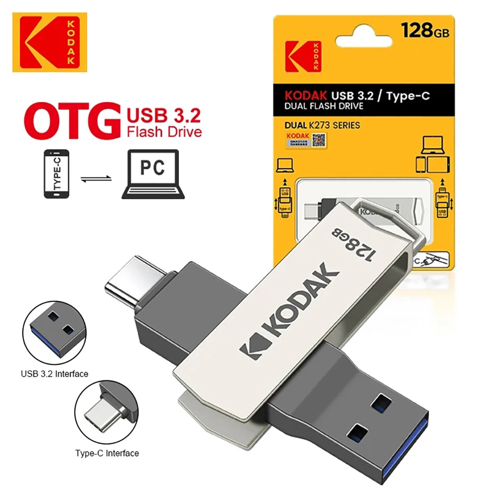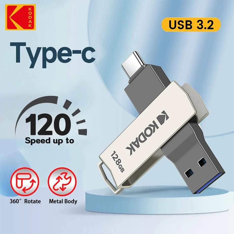 Kodak Type C Pendrive USB 3.2 Chiavetta USB in metallo 128 GB 64 GB 32 GB 256 GB HDD 2 in 1 U-disk per chiavi Smartphone Laptop Desktop