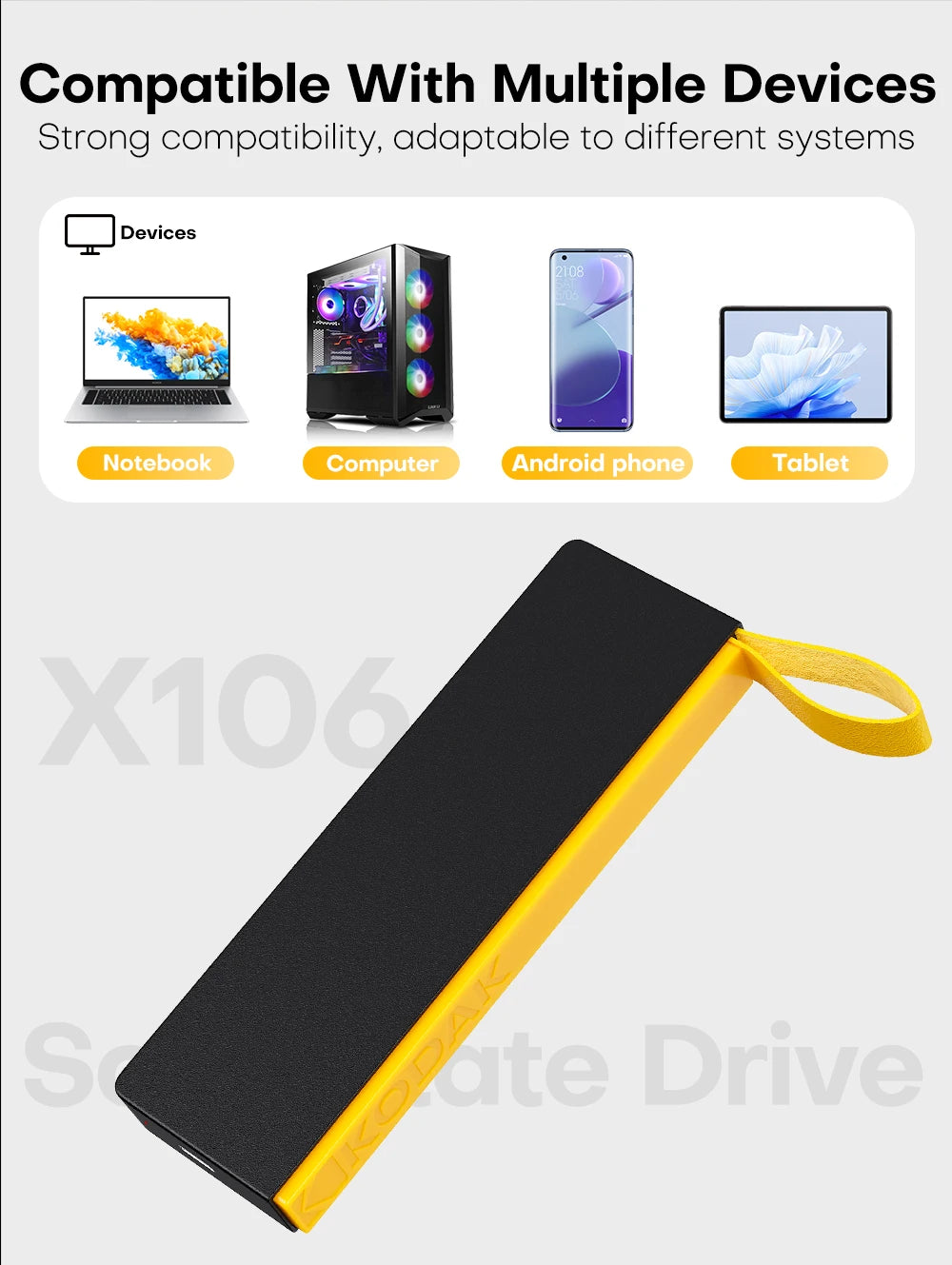 KODAK X106 SSD 1TB ssd unità esterna Disco rigido 2TB USB3.1 SSD esterno portatile 256B 512GB 1TB per laptop Smartphone PS4