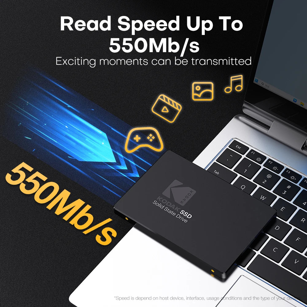 • Tipo di flash TLC NAND:Il disco rigido SSD Kodak X120 PRO HDD 2.5 SSD disco rigido 120 GB 1 TB 512 GB 128 GB 256 GB disco rigido interno HD SATA per computer portatile utilizza il tipo flash TLC Nand, che garantisce prestazioni elevate e affidabilità.