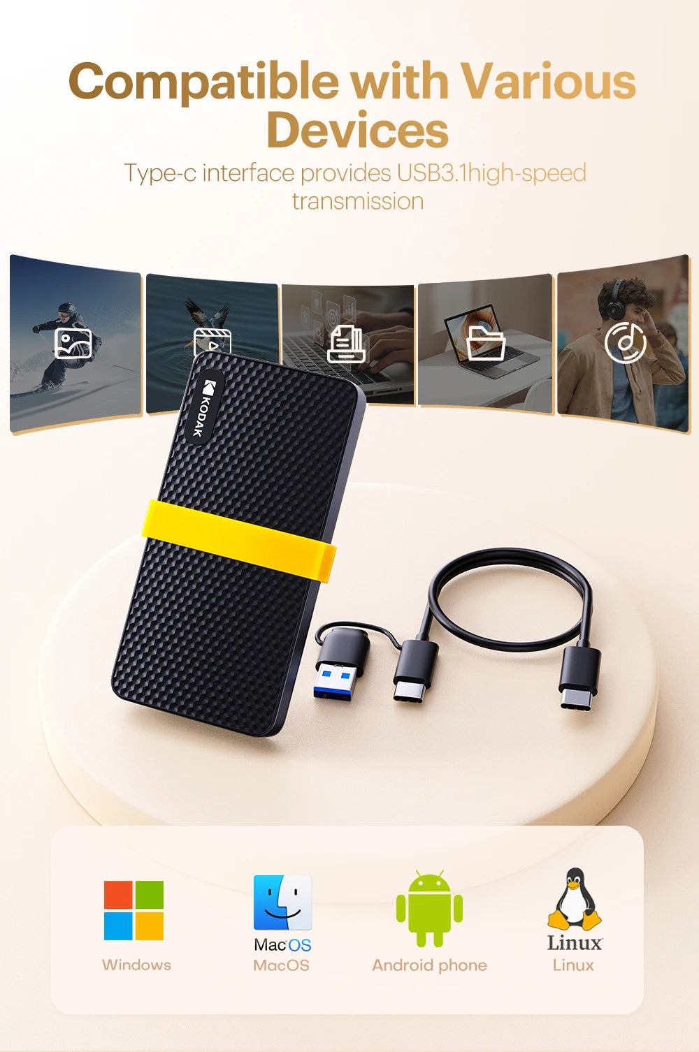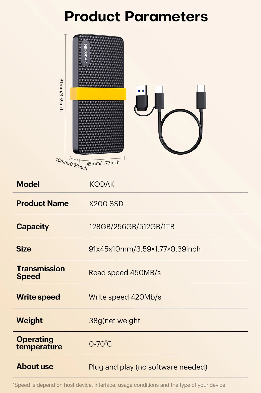 KODAK X200 Disco rigido SSD esterno USB3.1 Type-C Mini SSD portatile 256B 512GB 1TB per laptop Smartphone PS4 PC TV