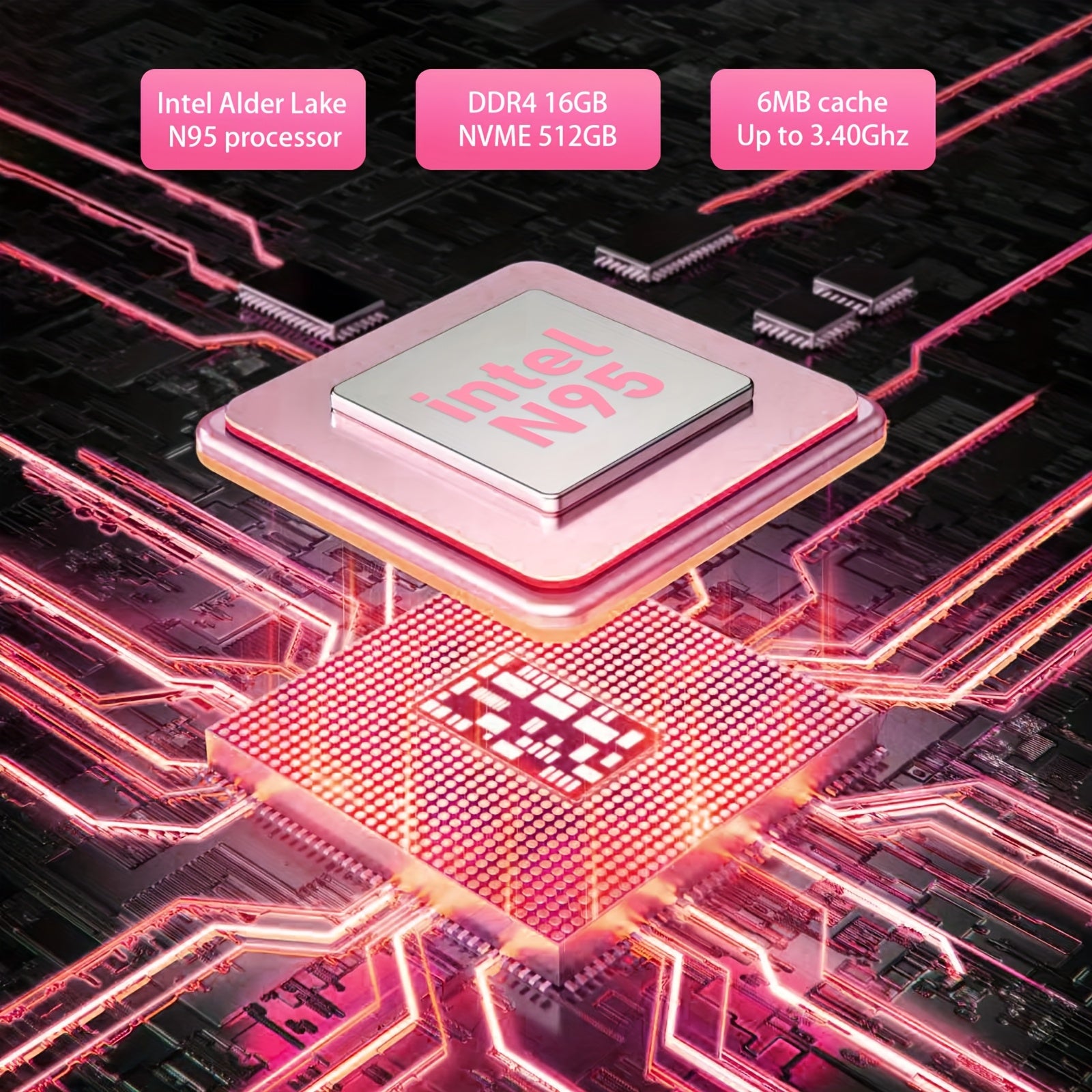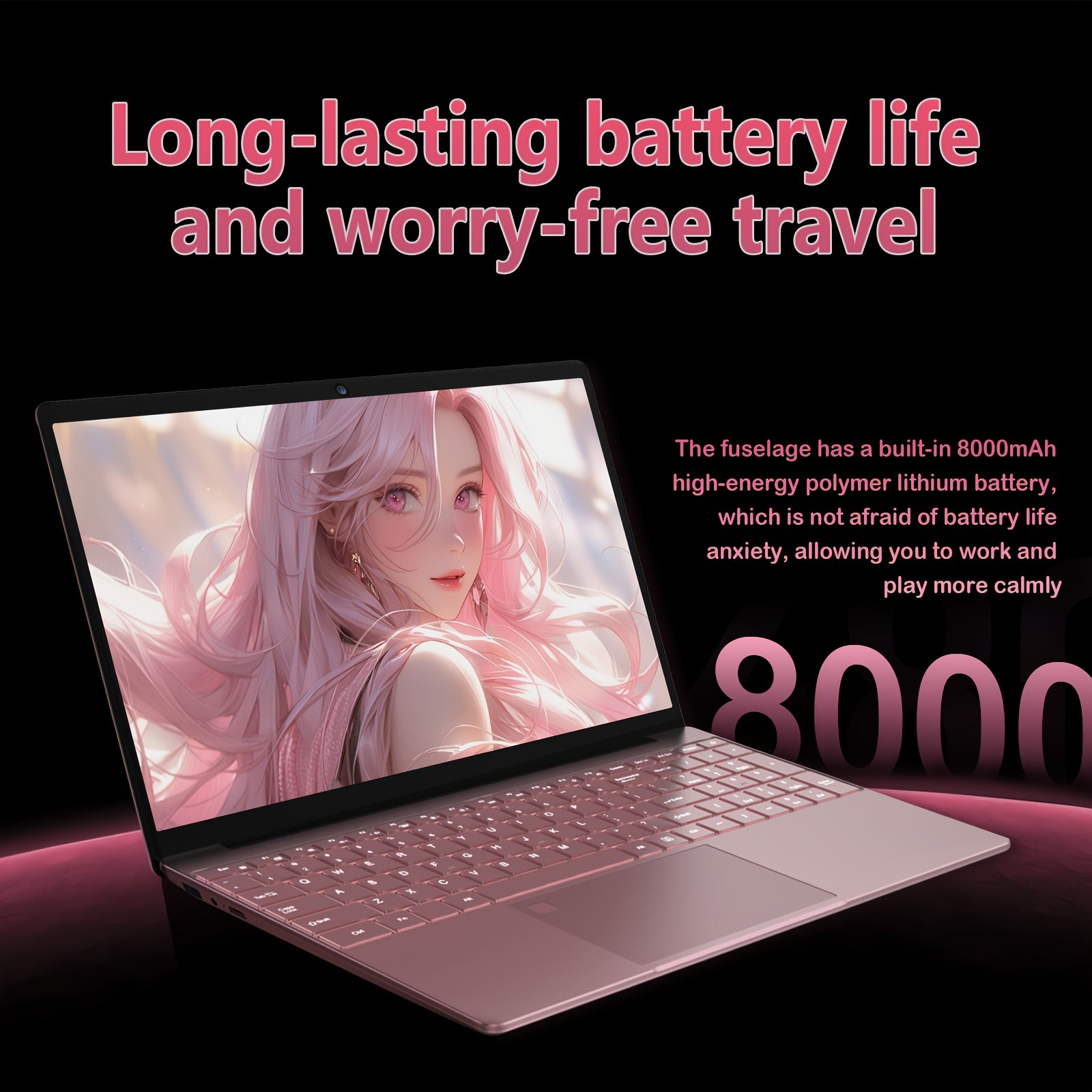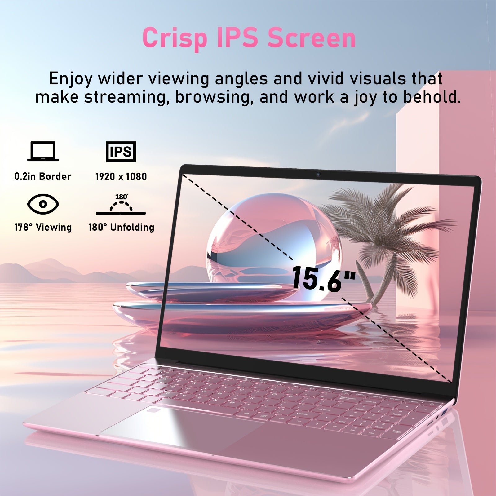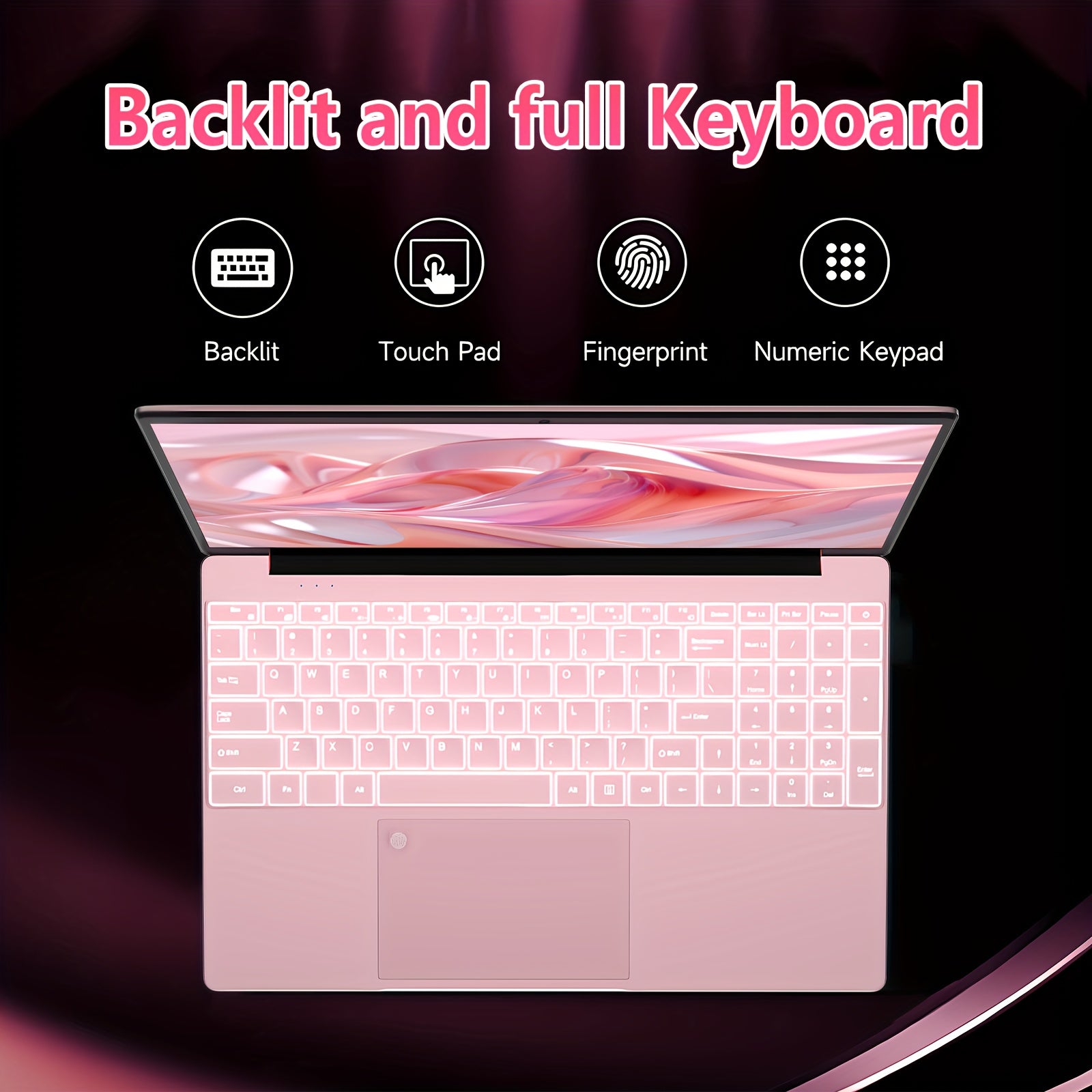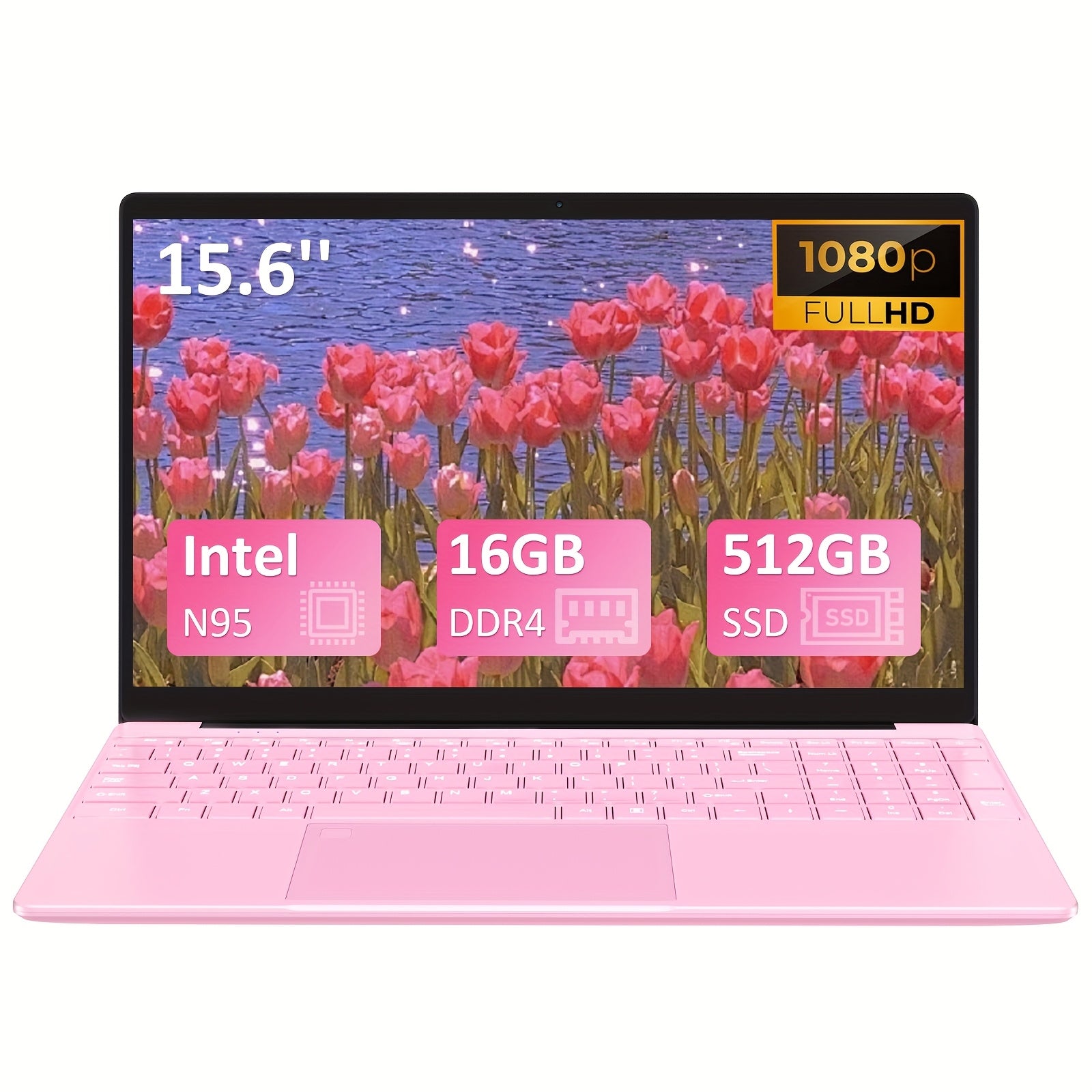 Laptop Auusda T152A 15.6" Rosa - Processore Intel N95, RAM da 16 GB, SSD da 512 GB, Display FHD IPS con Videocamera Frontale HDTV, Tastiera Retroilluminata, Hub Multiporta (HDTV/Porta Audio da 3.5 mm/USB/Lettore di Schede TF), Batteria a Lunga Durata, Sot